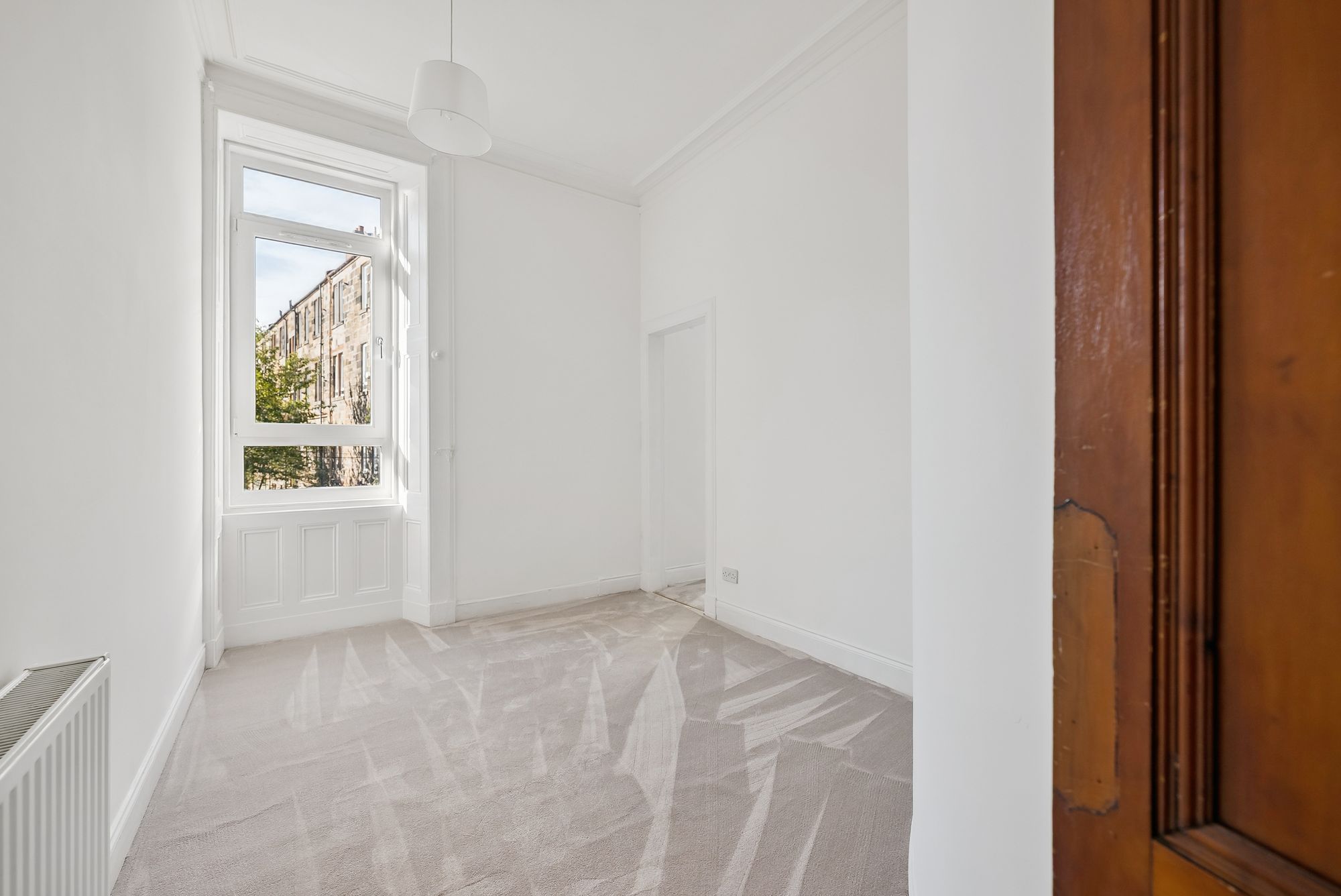 The home for sale has a central location in the popular Glasgow district of Battlefield, on the Southside of the city. This area is best known for its fantastic location, a mere 5 minutes' walk to the side entrance of Queen's Park and on the doorstep of the South Side's vibrant café scene which is home to the likes of 'Big Bear Bakery' and 'Kothel'. A variety of public transport services are also readily available with multiple bus routes running along Battlefield Road.