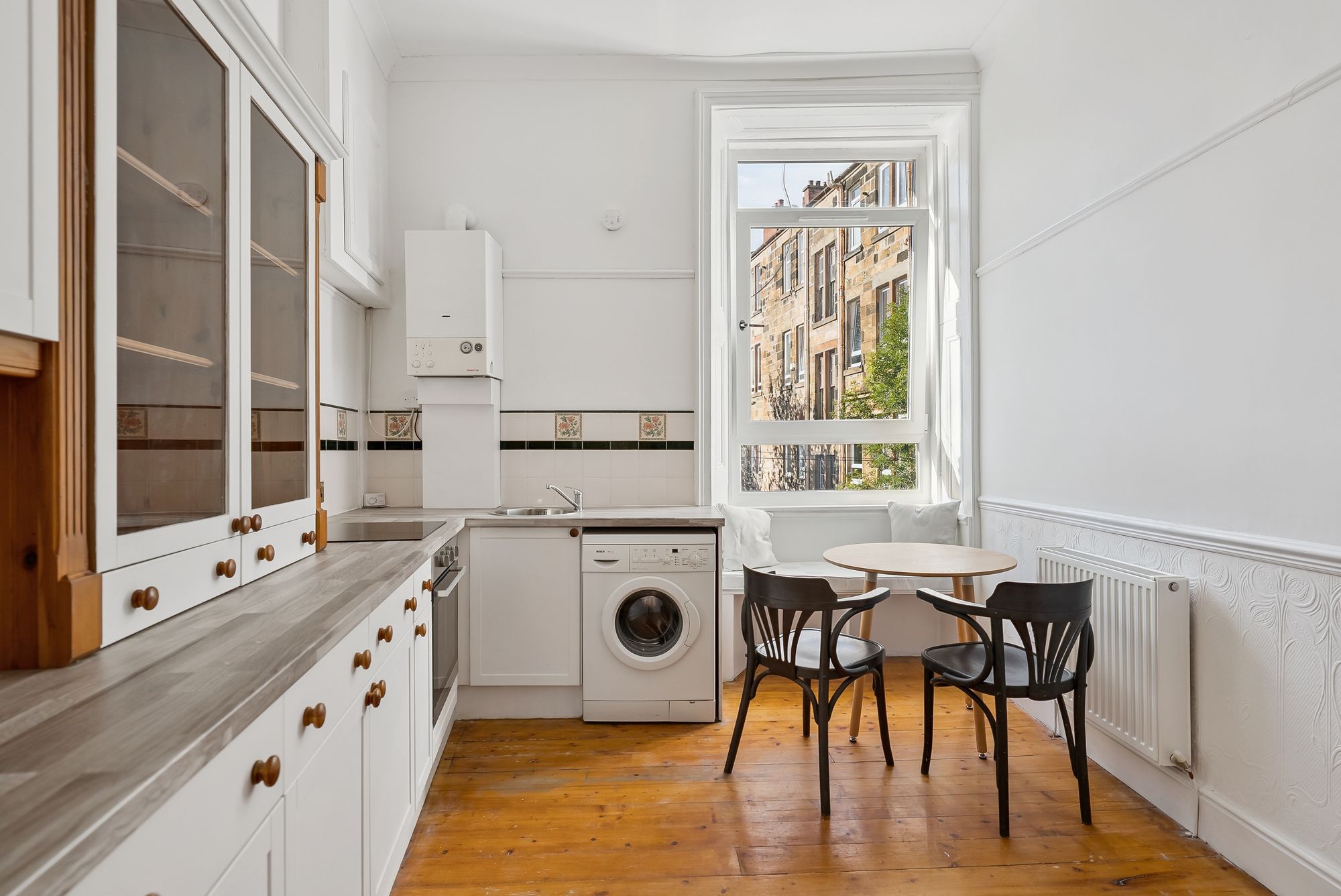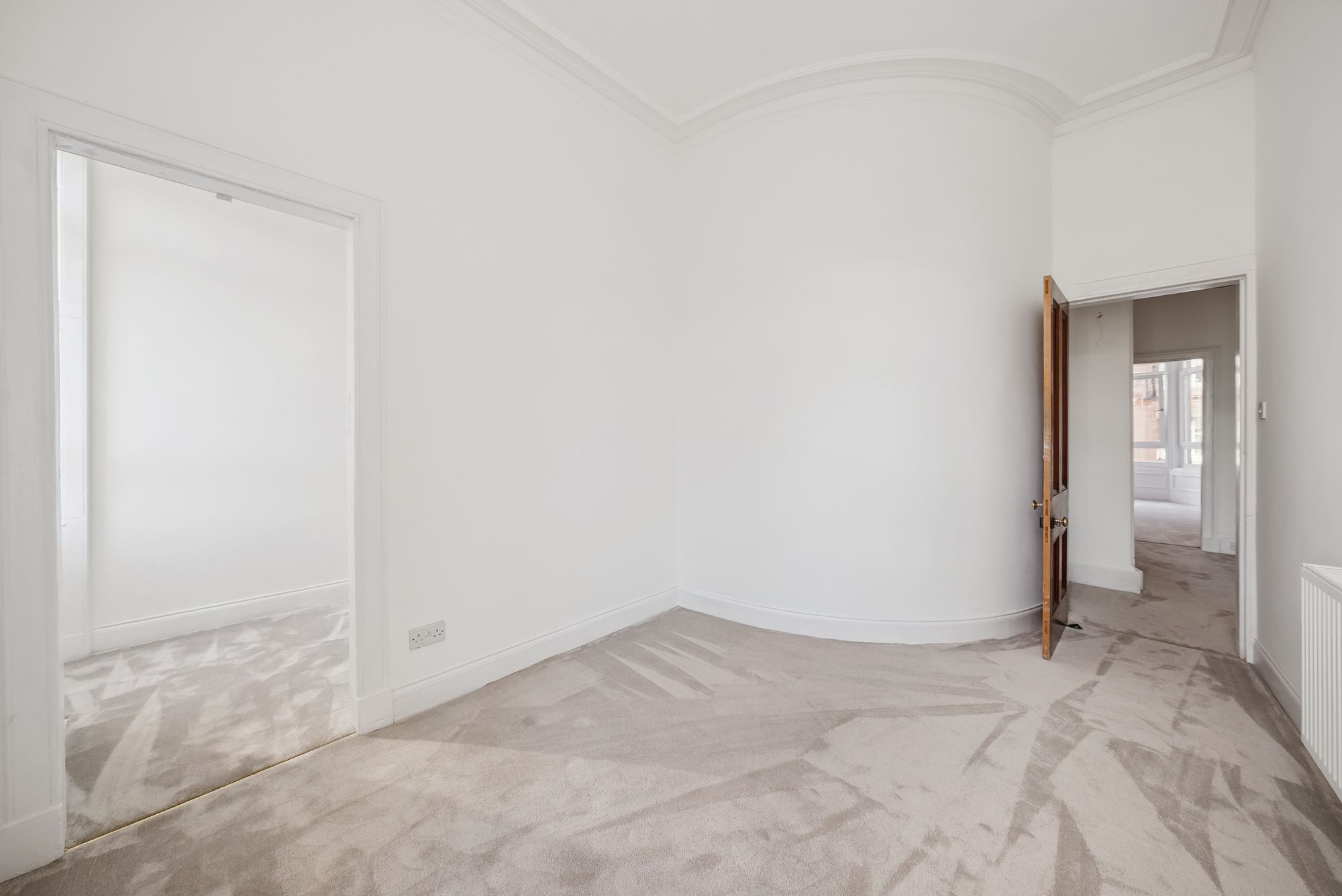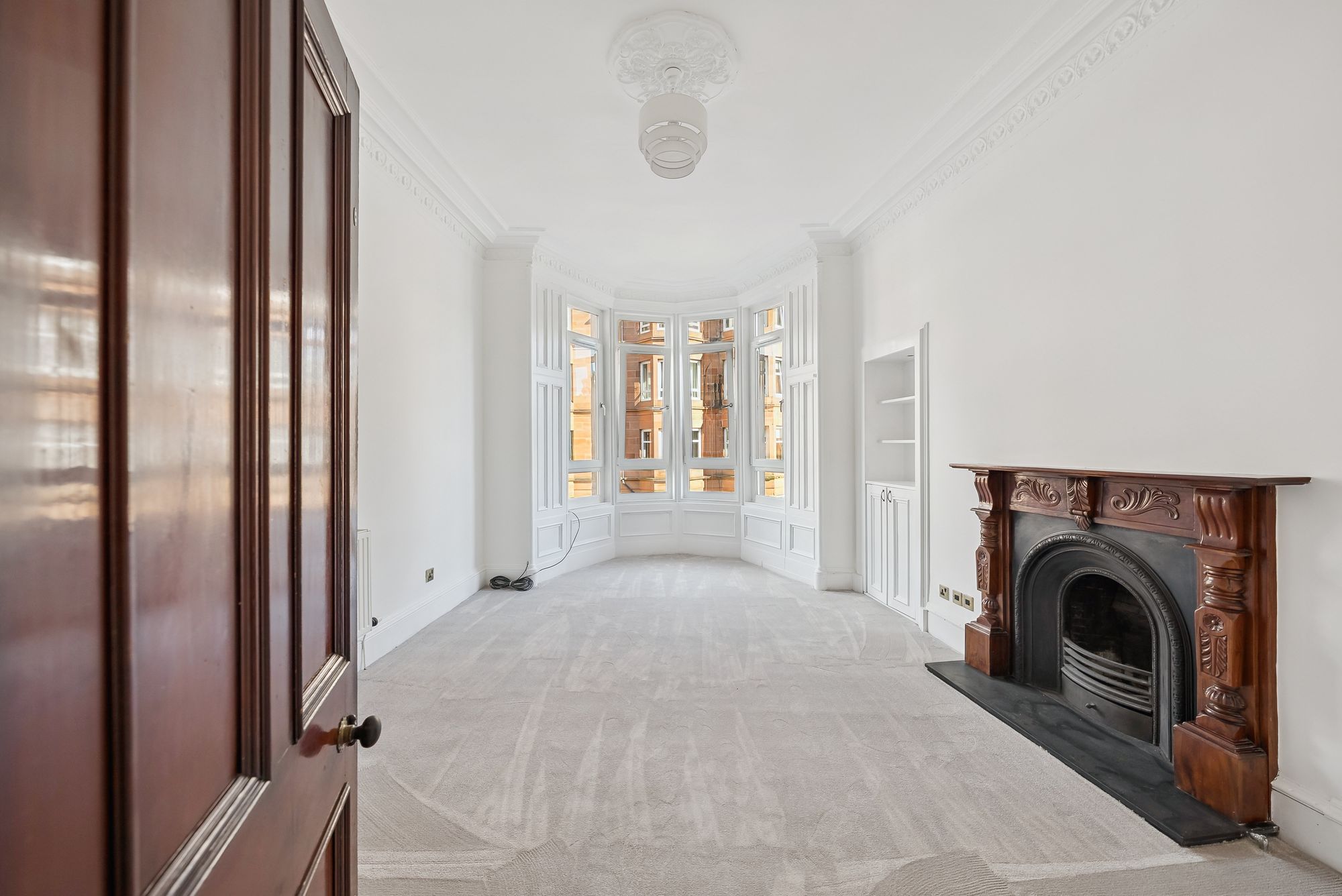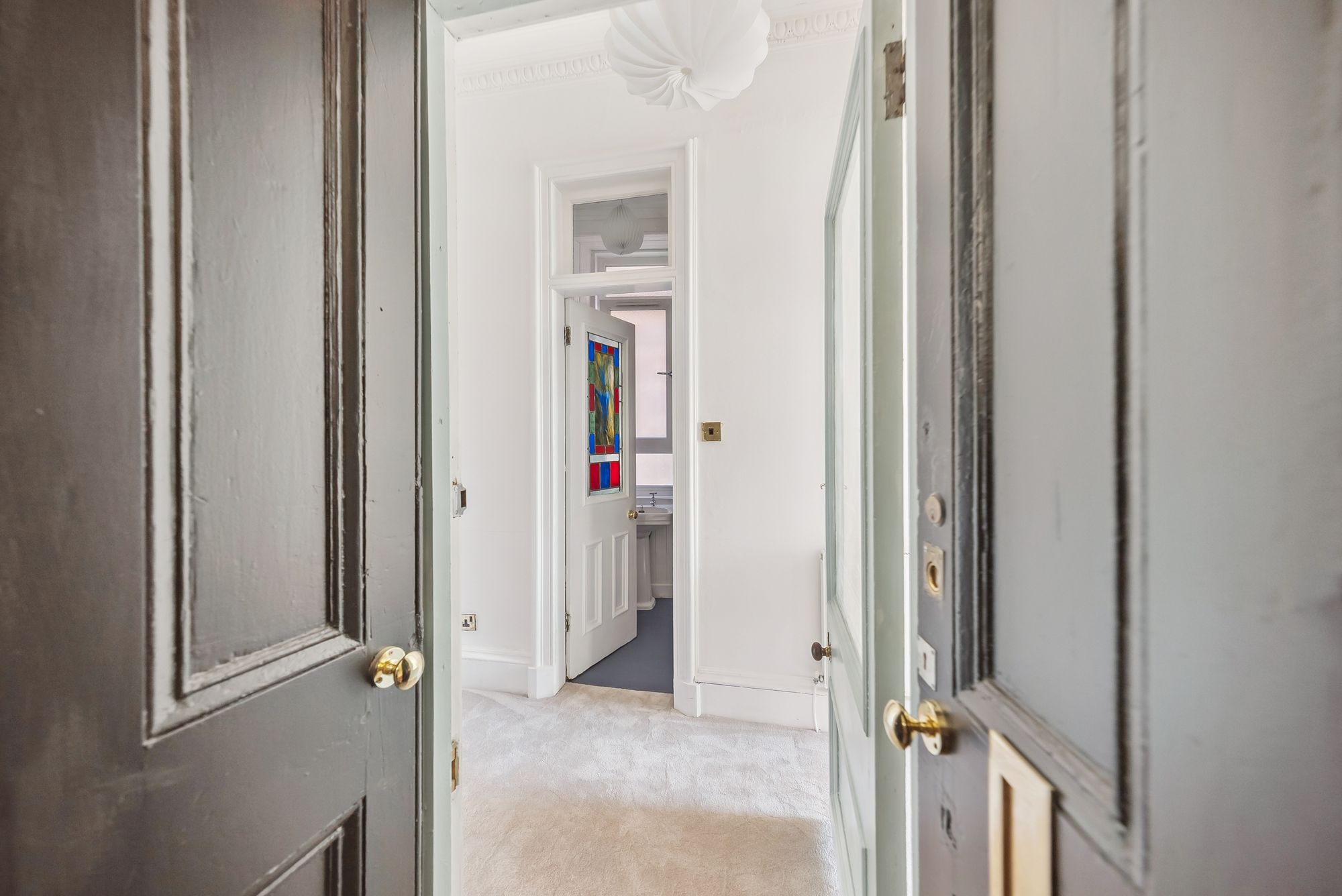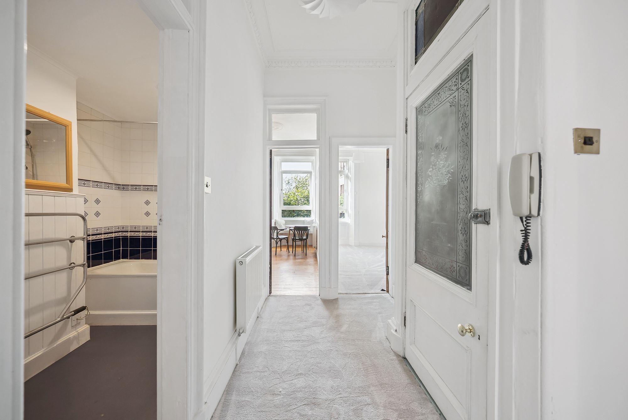 This superb flat is held on the first floor of a handsome blonde sandstone tenement positioned towards the bottom of Battlefield Avenue, adjacent to Spean Street and the lovely White Cart River. The building is understood to have been constructed around the 1900's and is maintained by the appointed factor. The owners have gone to extensive lengths to preserve many traditional features with some of the highlights being beautiful stained glass, feature fireplace and ornate ceiling cornicing. Access into number 22 is via a secure door with buzzer entry system.