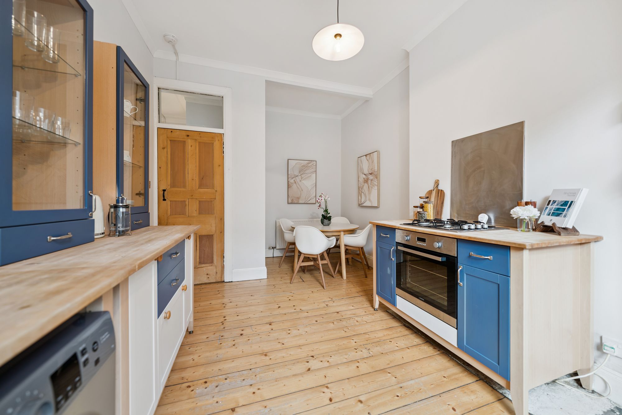 The dining-sized kitchen is thoughtfully positioned separate from the living area and features a range of floor and wall-mounted units, complemented by integrated appliances and excellent workspace. Completing the internal accommodation is a stunning modern bathroom, finished to a high standard and fitted with a shower over the bath.