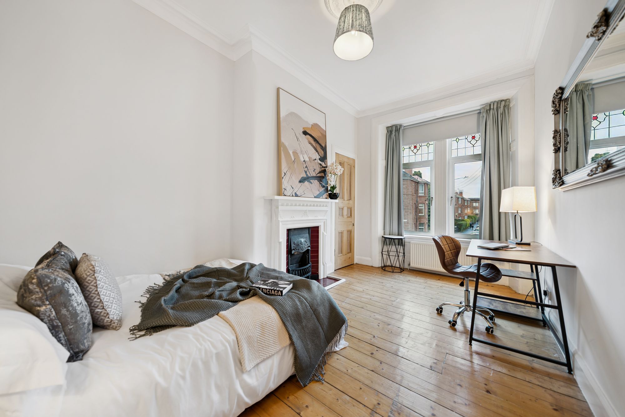 This bright and exceptionally spacious one-bedroom traditional tenement flat occupies a preferred first-floor position within the highly sought-after Shawlands district in Glasgow’s vibrant Southside. Offering beautifully proportioned and well-appointed accommodation throughout, this superb apartment combines classic character with modern comfort, all just moments from Shawlands’ renowned bars, cafés and independent boutiques.