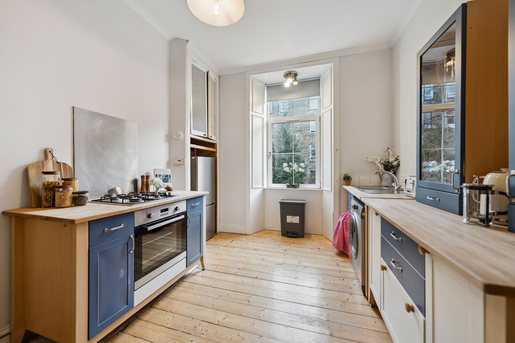 Further benefits include gas central heating, double glazing throughout, original floorboards, secure door entry system, and access to a well-maintained communal rear garden. Uniquely, the property also enjoys a private, enclosed garden to the front—an increasingly rare feature for traditional tenement flats.