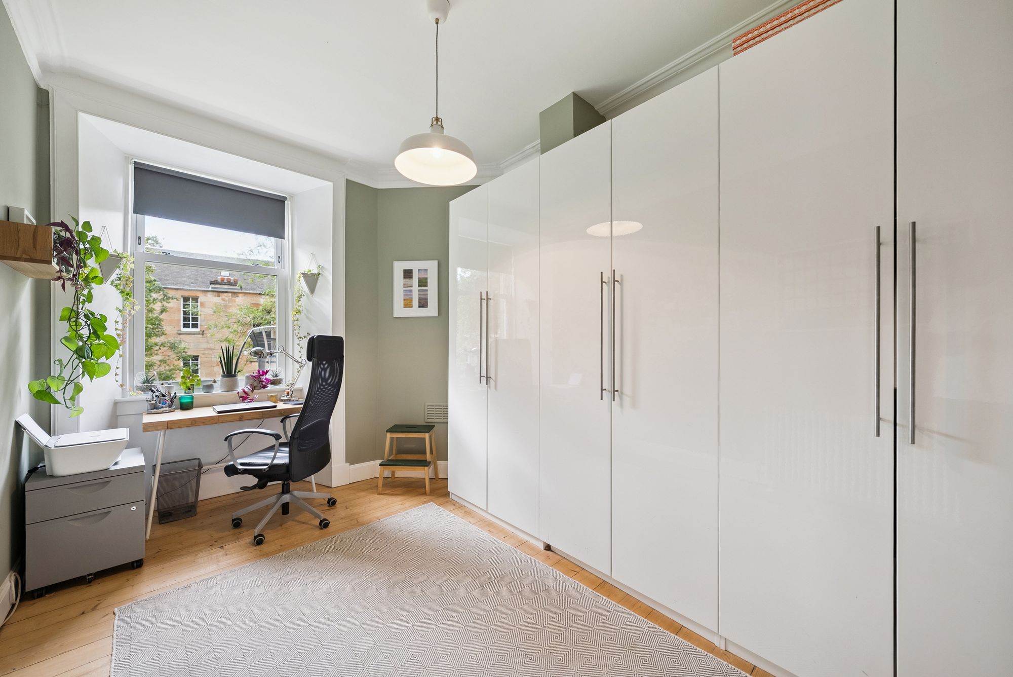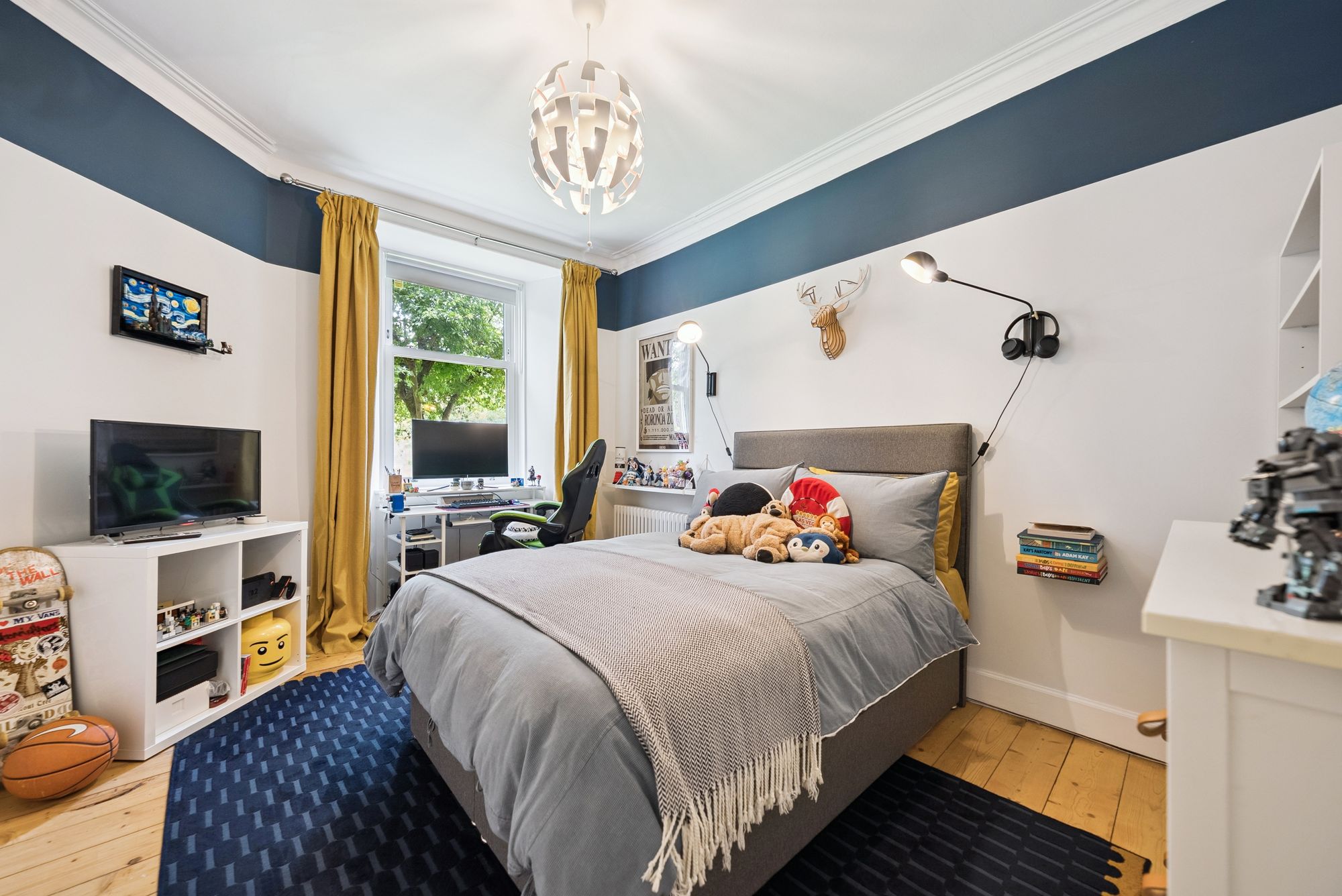Tucked away at the end of a leafy cul-de-sac, this stunning four bedroom, main door flat offers bright and spacious accommodation that is presented in wonderful condition throughout.