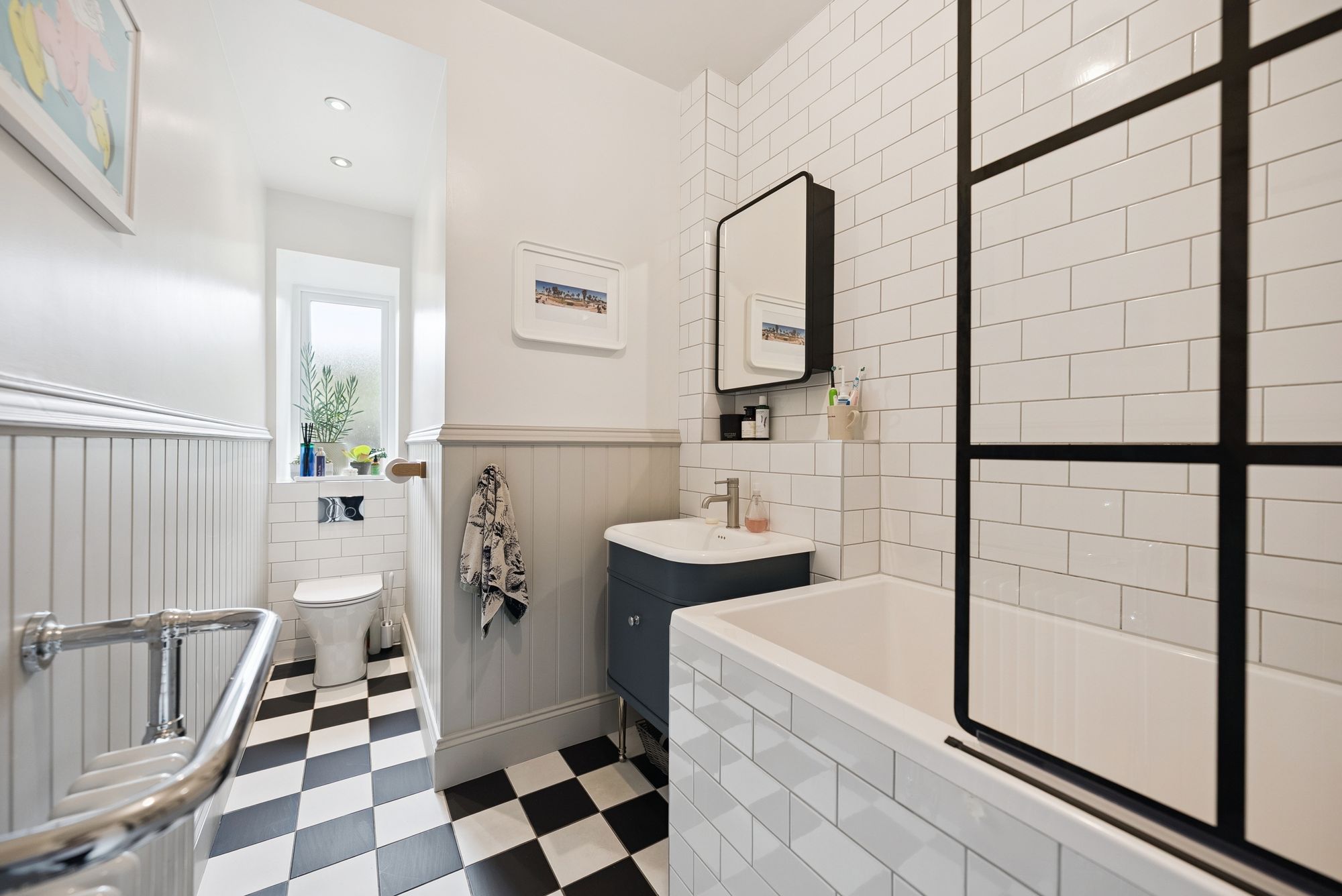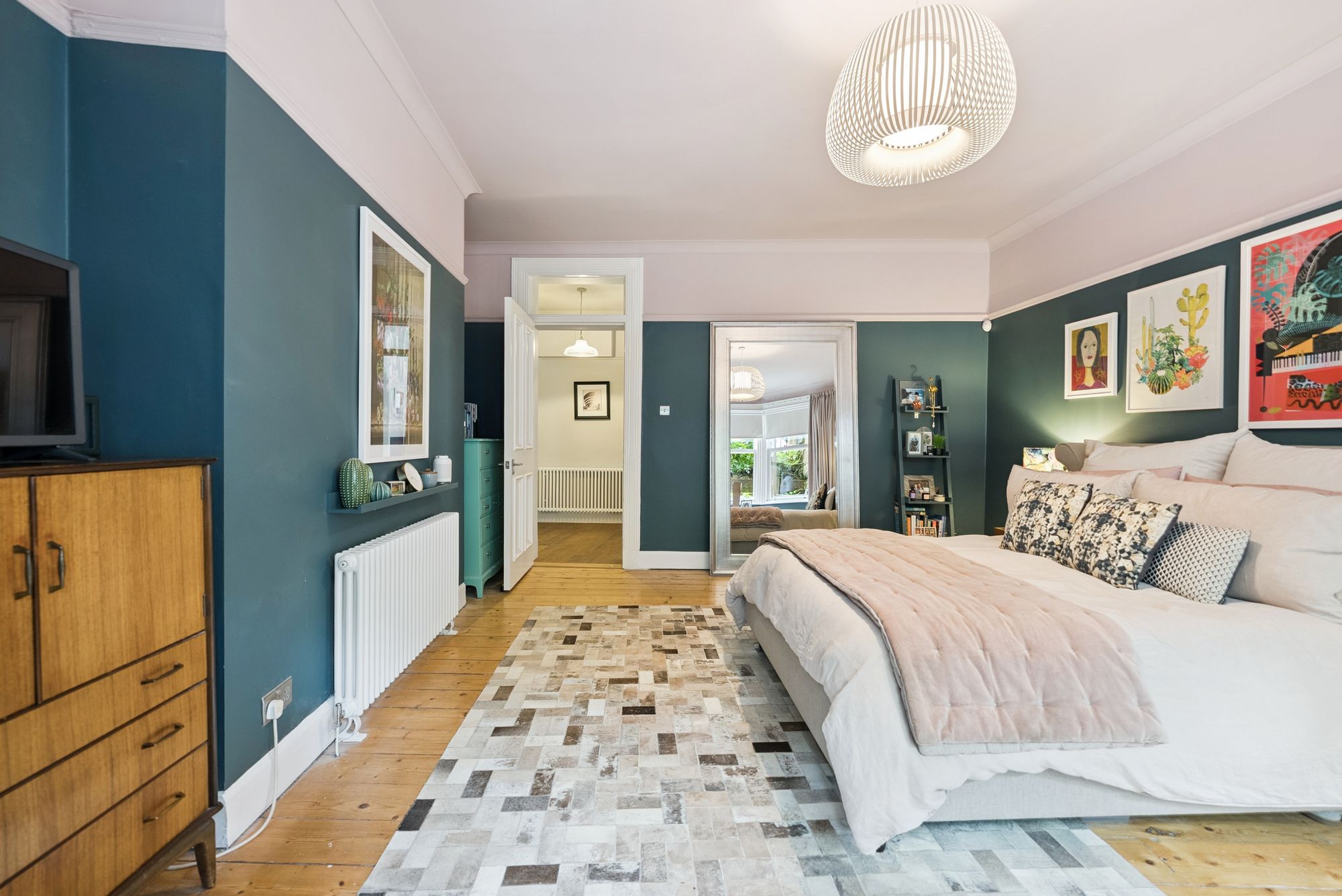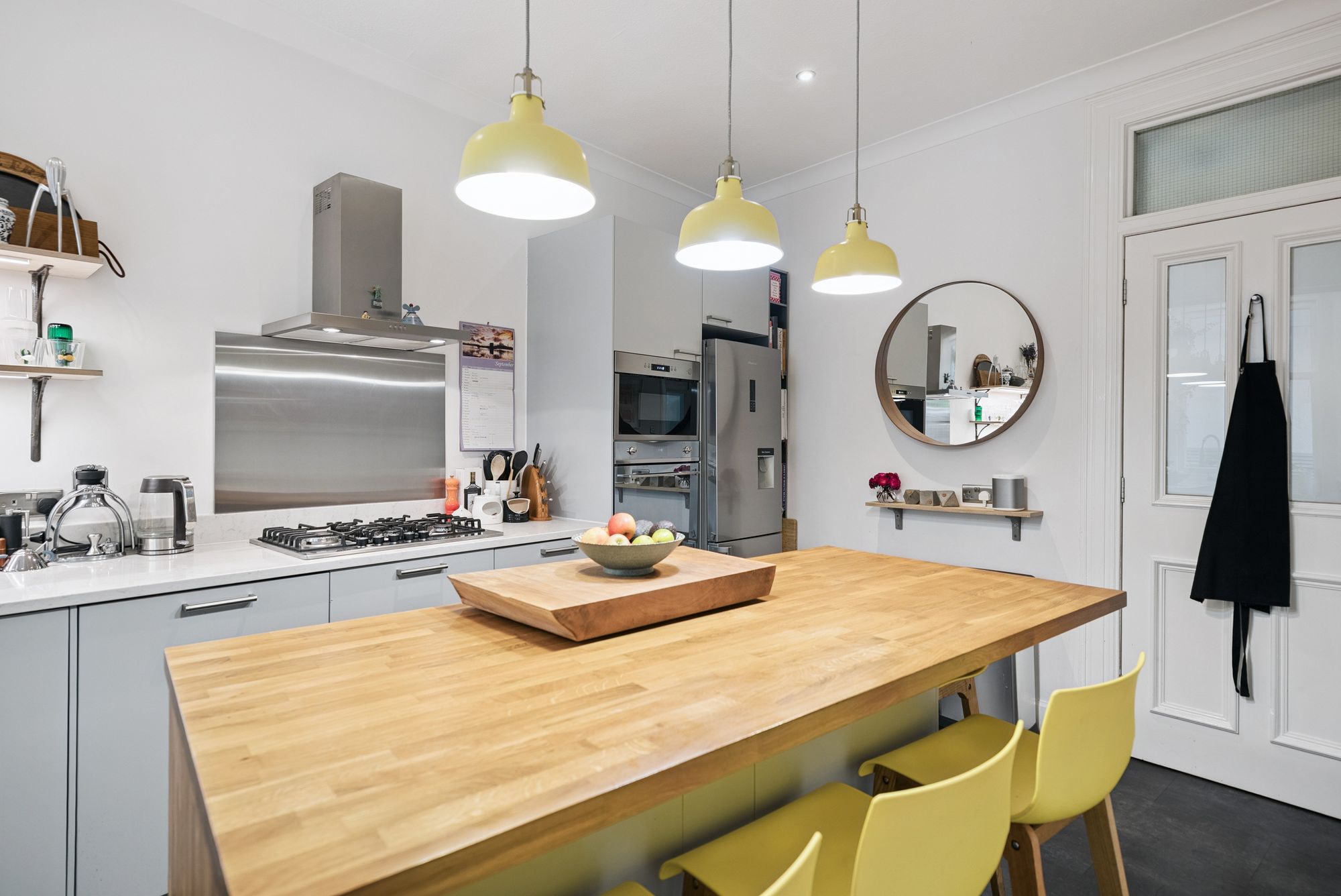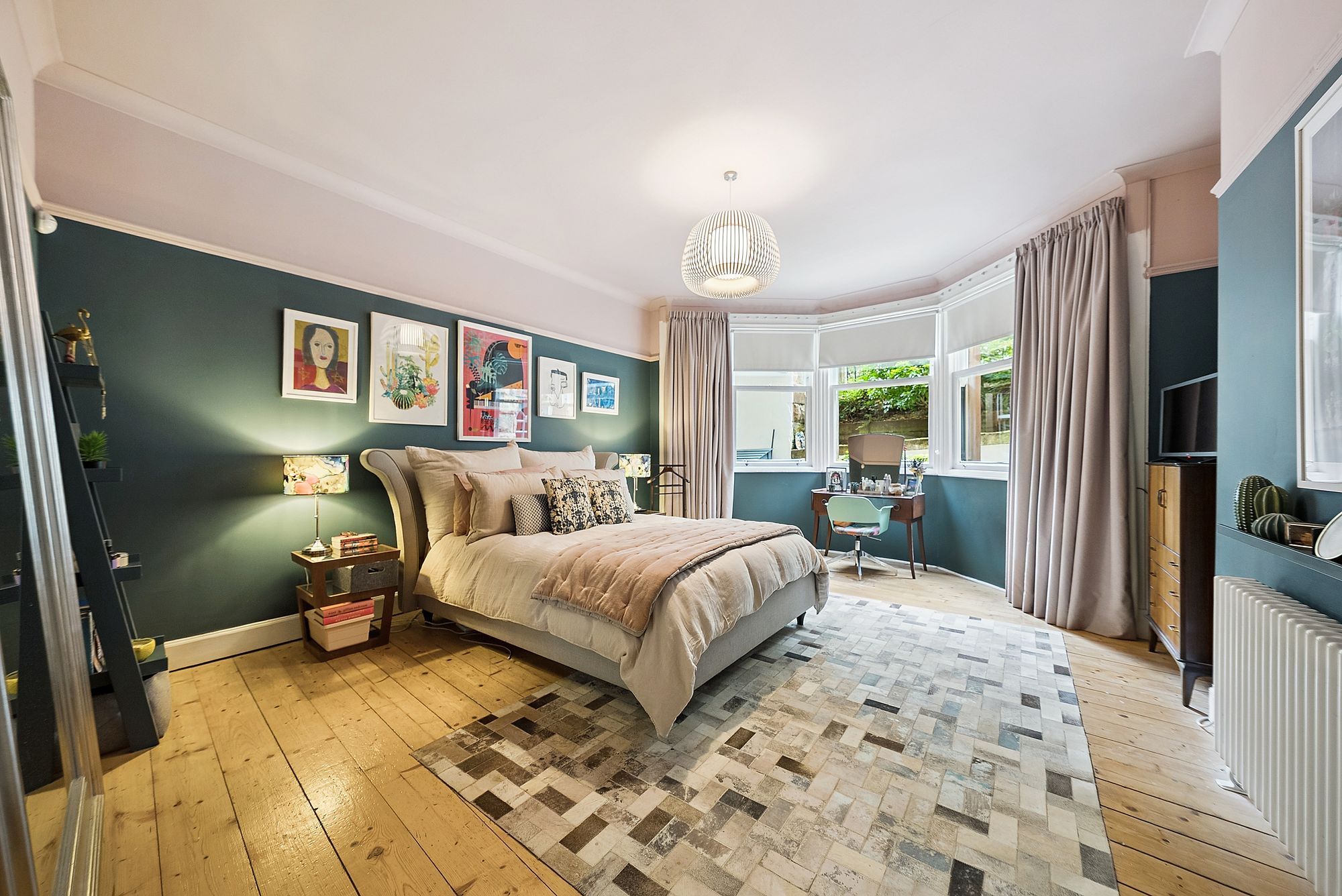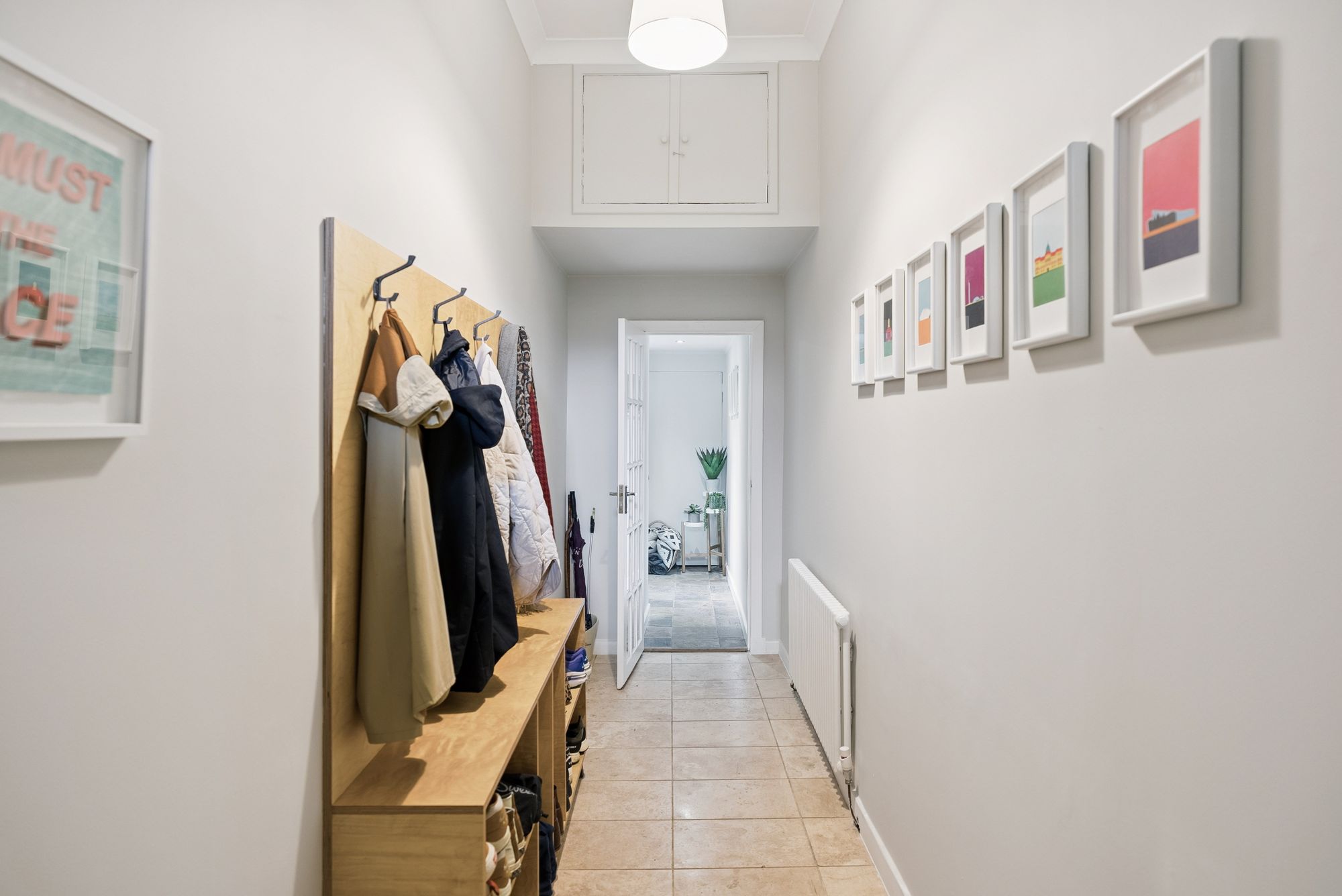 However, in brief the accommodation extends to; welcoming entrance hallway with w/c off, beautiful bay windowed living room with log burner, walk in cupboard and double doors leading to a dining kitchen. The kitchen itself has base and wall mounted units with a full range of integrated appliances and an island/breakfast bar. There are four bedrooms including a bay windowed principal room and the accommodation is completed by a fully tiled main bathroom with three piece suite and shower over the bath. From the hallway, there is a door leading into the communal hallway with storage room off, and a door leading to the leafy communal rear gardens. The gardens are made up of a large section of lawn bound by mature trees and shrubs and are completely South facing.