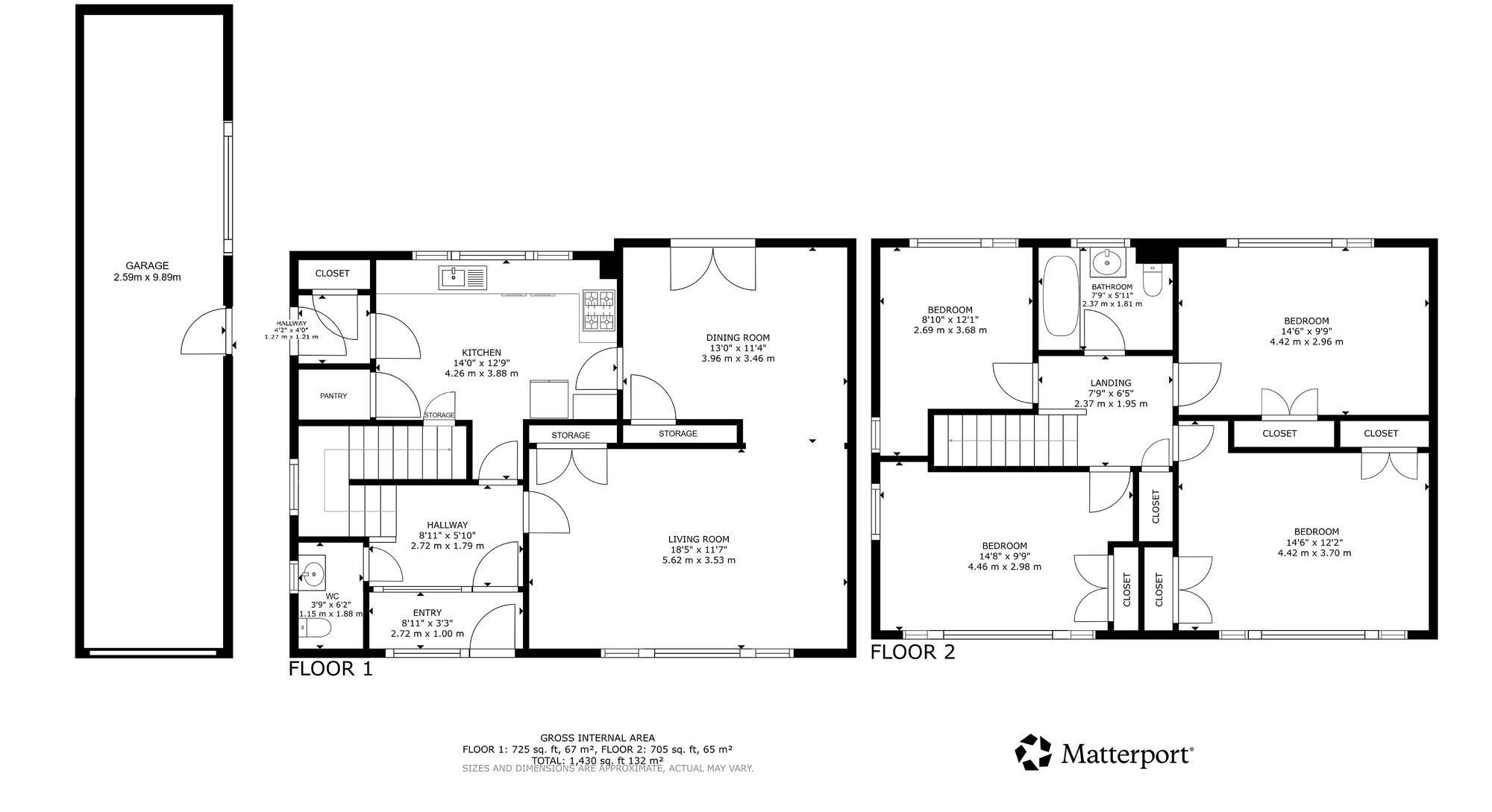The upper floor features a central landing which leads to four well-proportioned bedrooms, each offering ample space for family members or guests. A family bathroom serves the first floor and completes the internal layout.