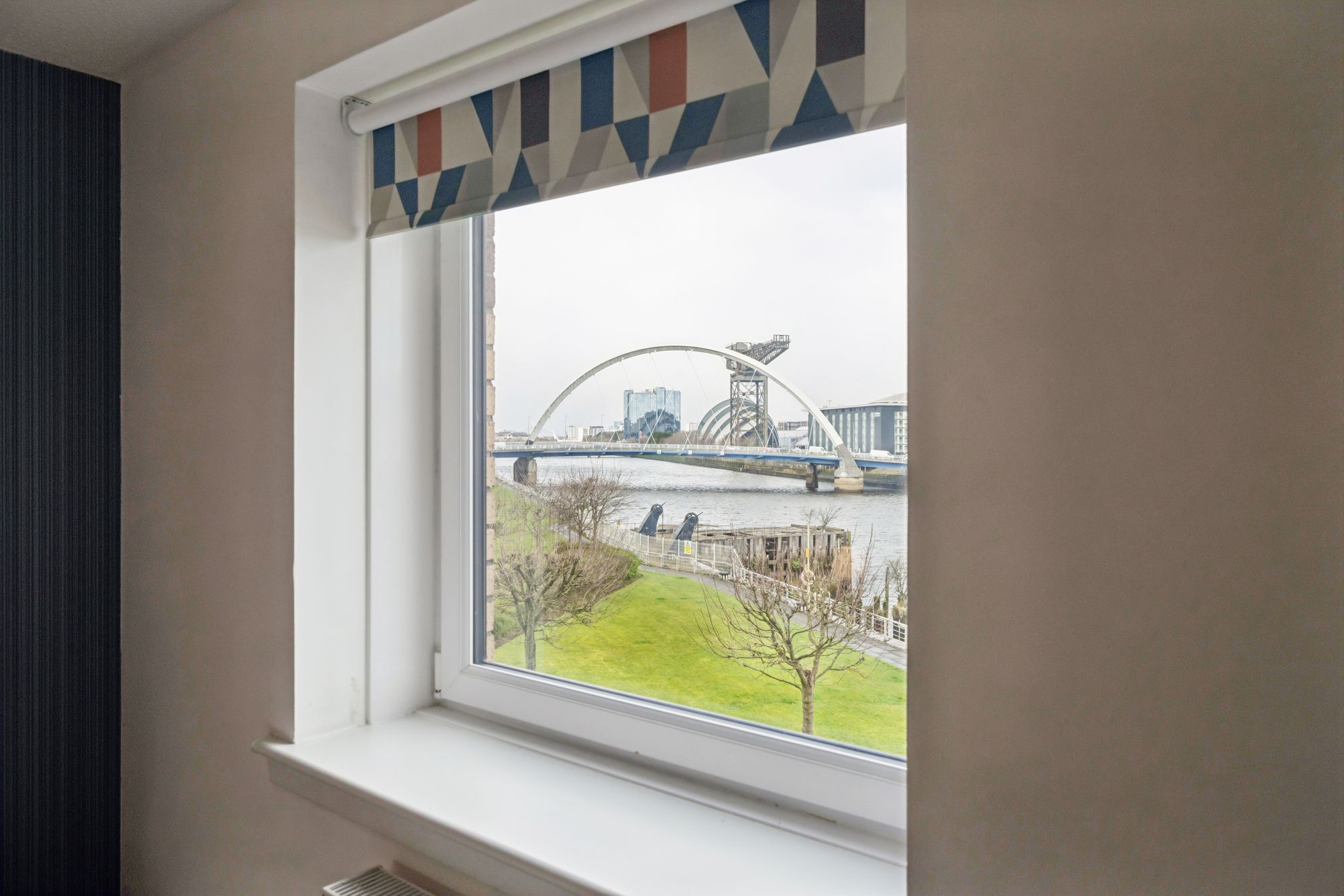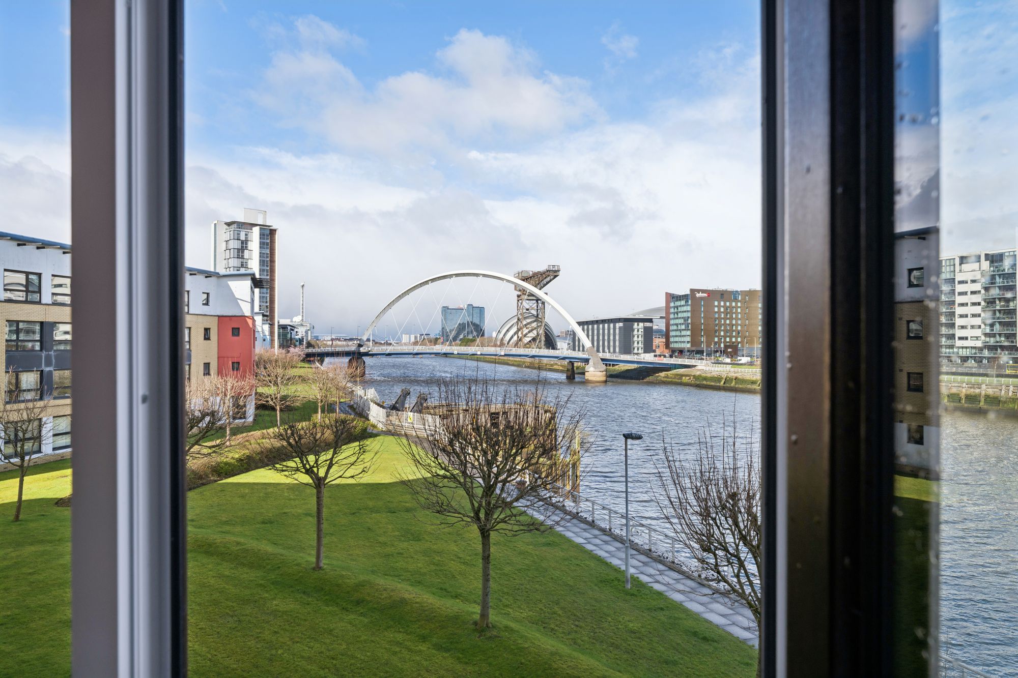 Enjoying fantastic, uninterrupted views over the River Clyde and the iconic Squinty Bridge, this exceptional three bedroom apartment occupies a highly sought after second floor position within a striking modern development on the former Garden Festival site.