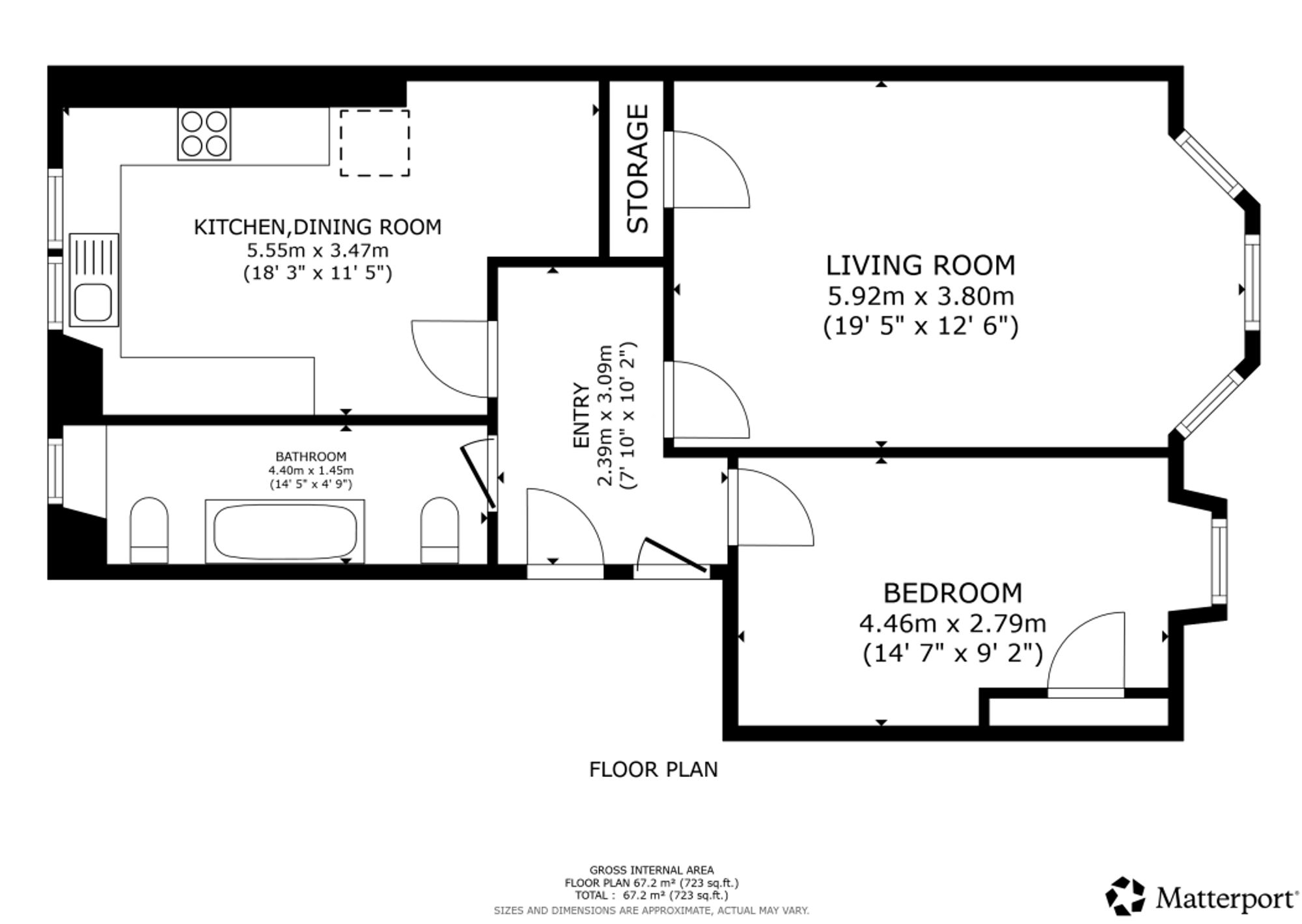 The bright and spacious accommodation comprises a welcoming reception hallway, a bay windowed lounge featuring a charming fireplace and a large storage cupboard, a dining-sized kitchen fitted with a range of wall and floor-mounted units, and a generously proportioned double bedroom. Completing the accommodation is a galley-style contemporary bathroom with a three-piece suite and shower over the bath.