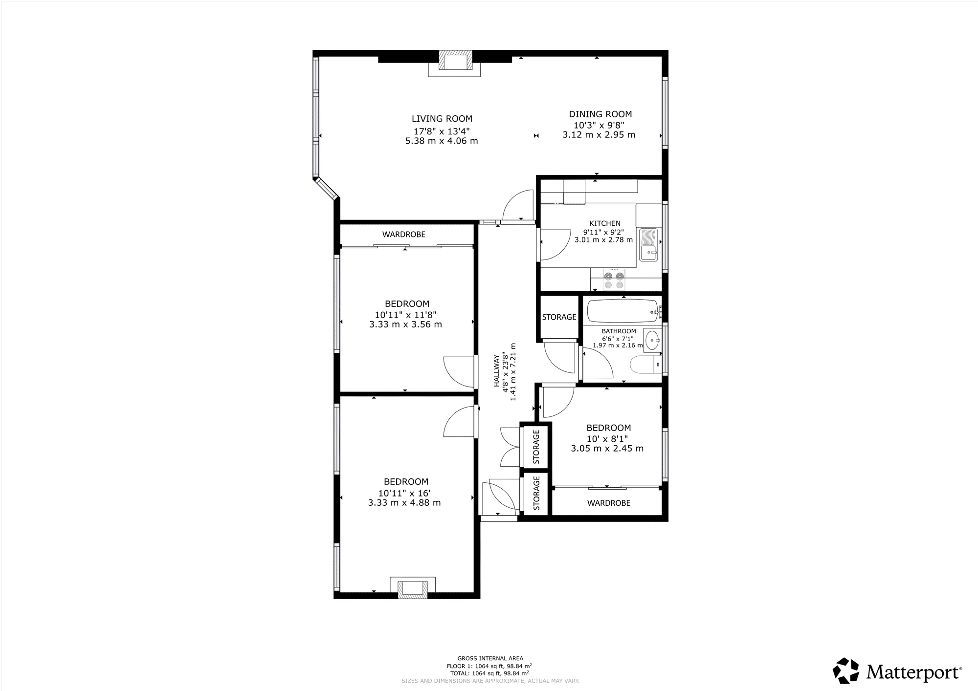 The building is accessed via a secure entry intercom system with stairs providing access to all levels. The attached photographs, floor plan and HD video tour will give an indication to the size and layout of the flat. However, in brief the accommodation extends to; welcoming entrance hallway with storage off, a spacious bay windowed living room with dual aspect windows and an area for dining. There it a kitchen with base and wall mounted units, three double bedrooms two of which have built in wardrobes. The accommodation is completed by a tiled bathroom with three piece suite.