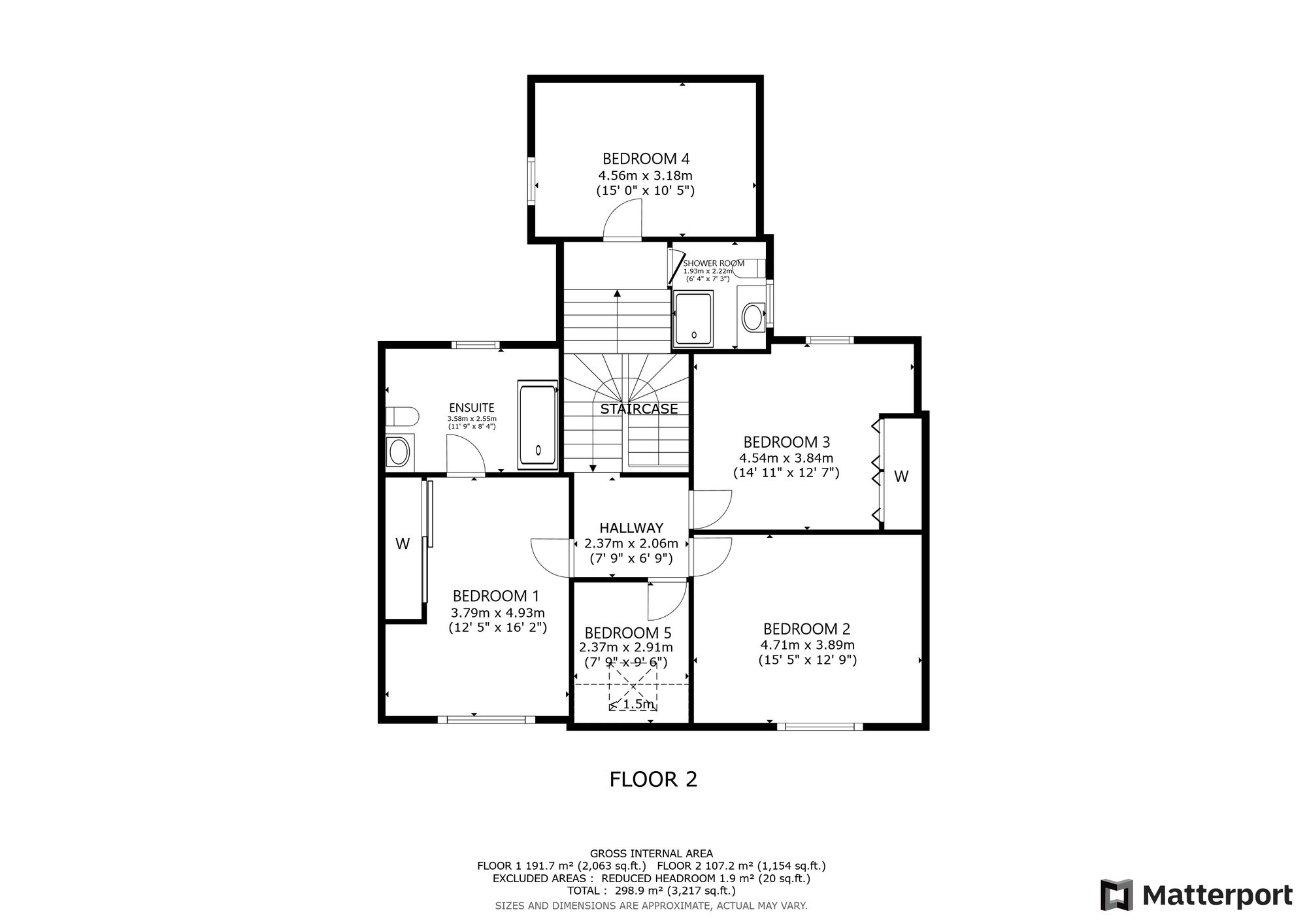 On the half landing upstairs there is a double bedroom with a window overlooking the rear garden. Next to it is a modern shower room with rainfall shower, WC and vanity basin. The main landing leads to the principal bedroom with south-facing views, built-in mirrored wardrobes and an ensuite bathroom with bath, rainfall shower, WC and wash hand basin. There are two further bedrooms on this level. One faces the front with south-facing views and built-in wardrobes, while the other overlooks the rear garden and includes built-in storage. There is also a smaller bedroom with a Velux window to the front. The house is heated by gas central heating and all windows are replacement double-glazed units with the exception of the small WC.