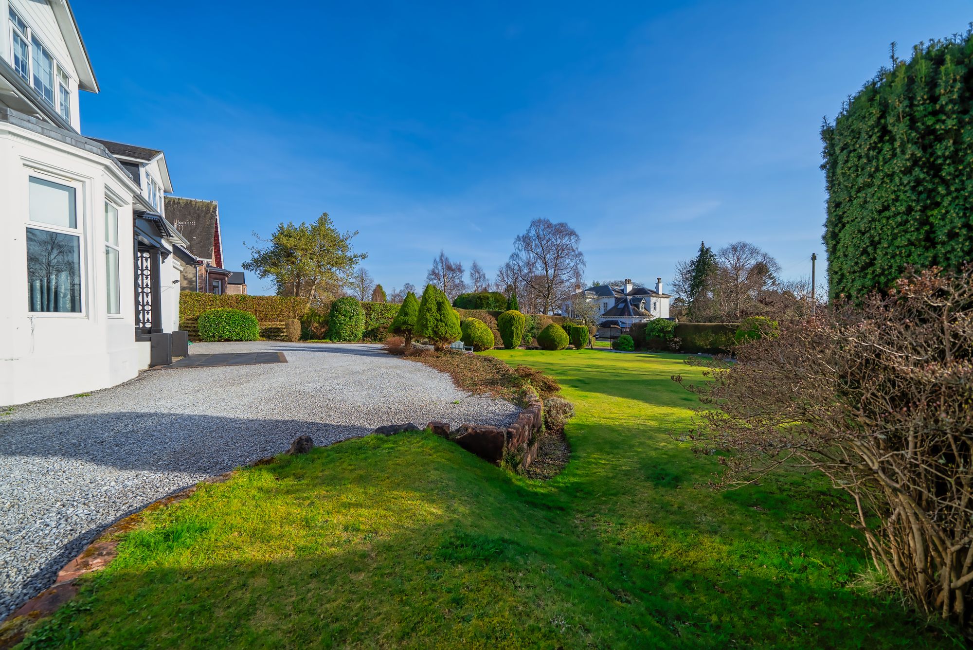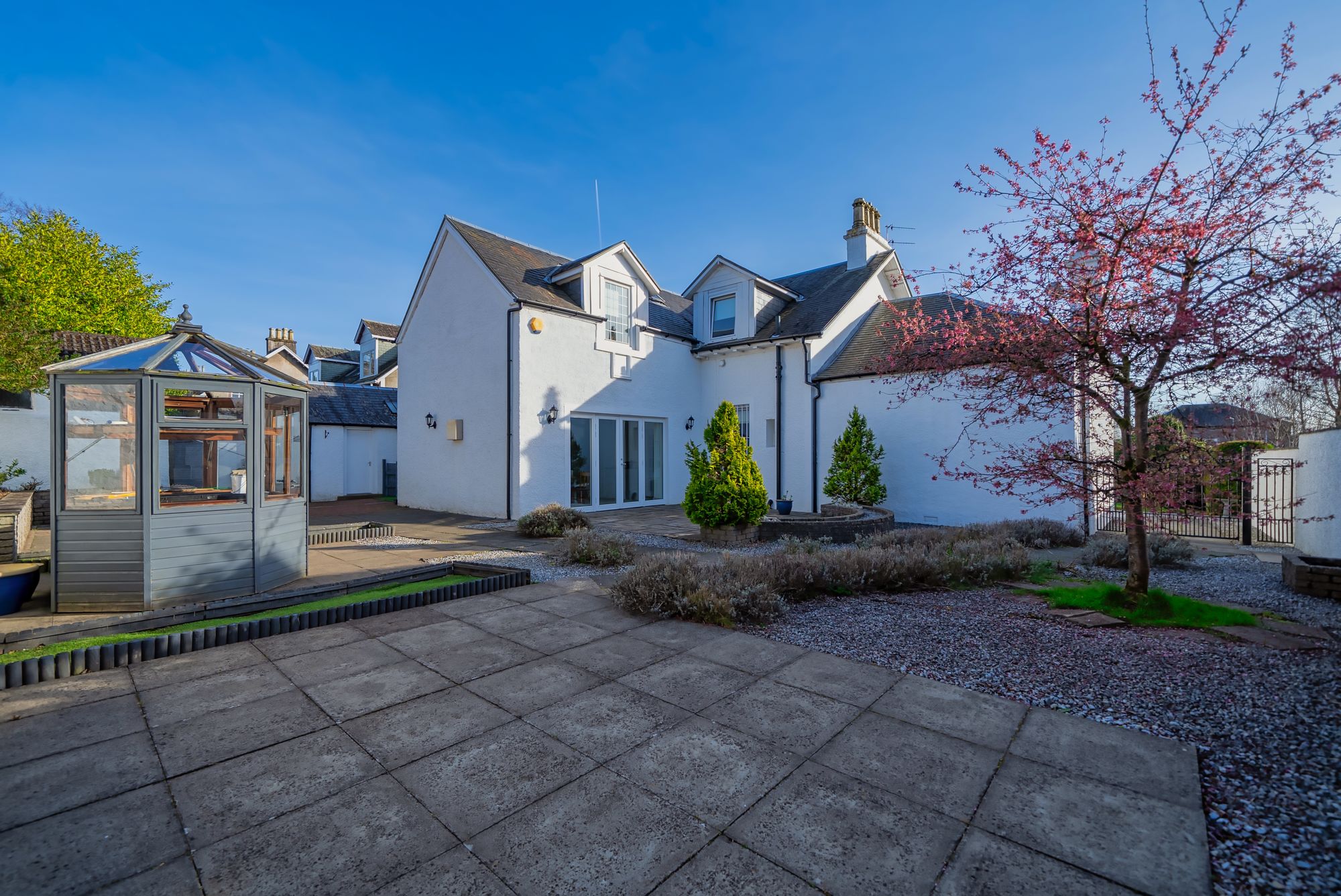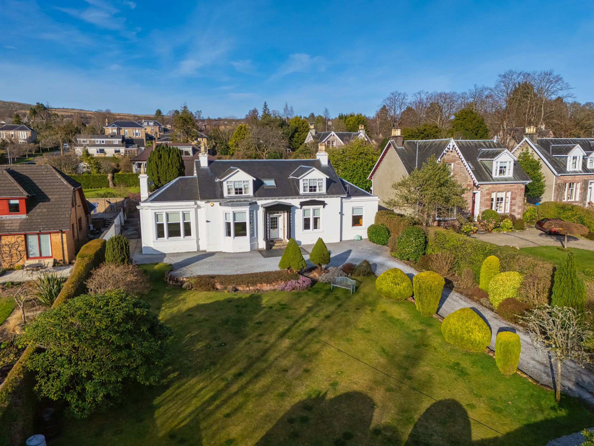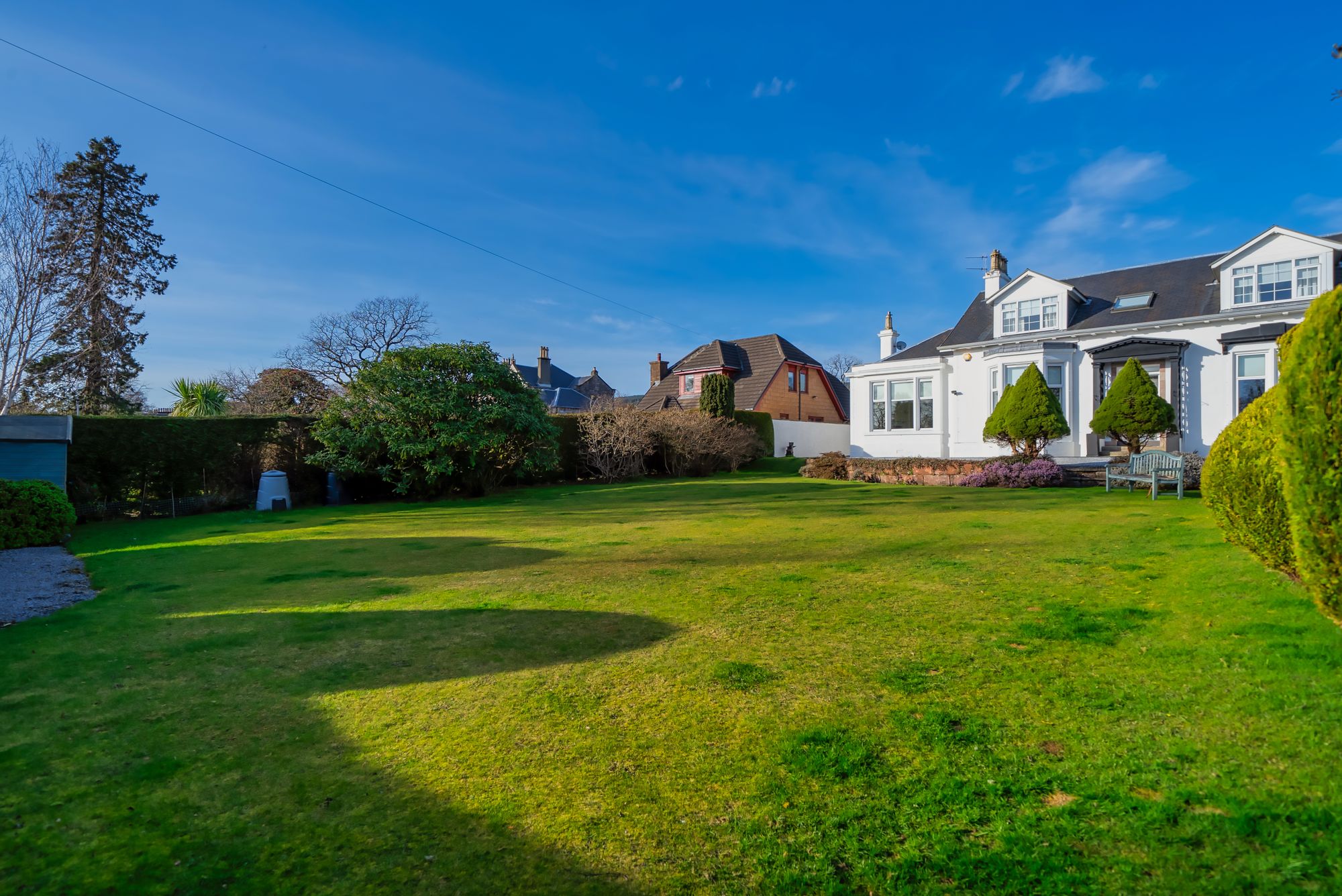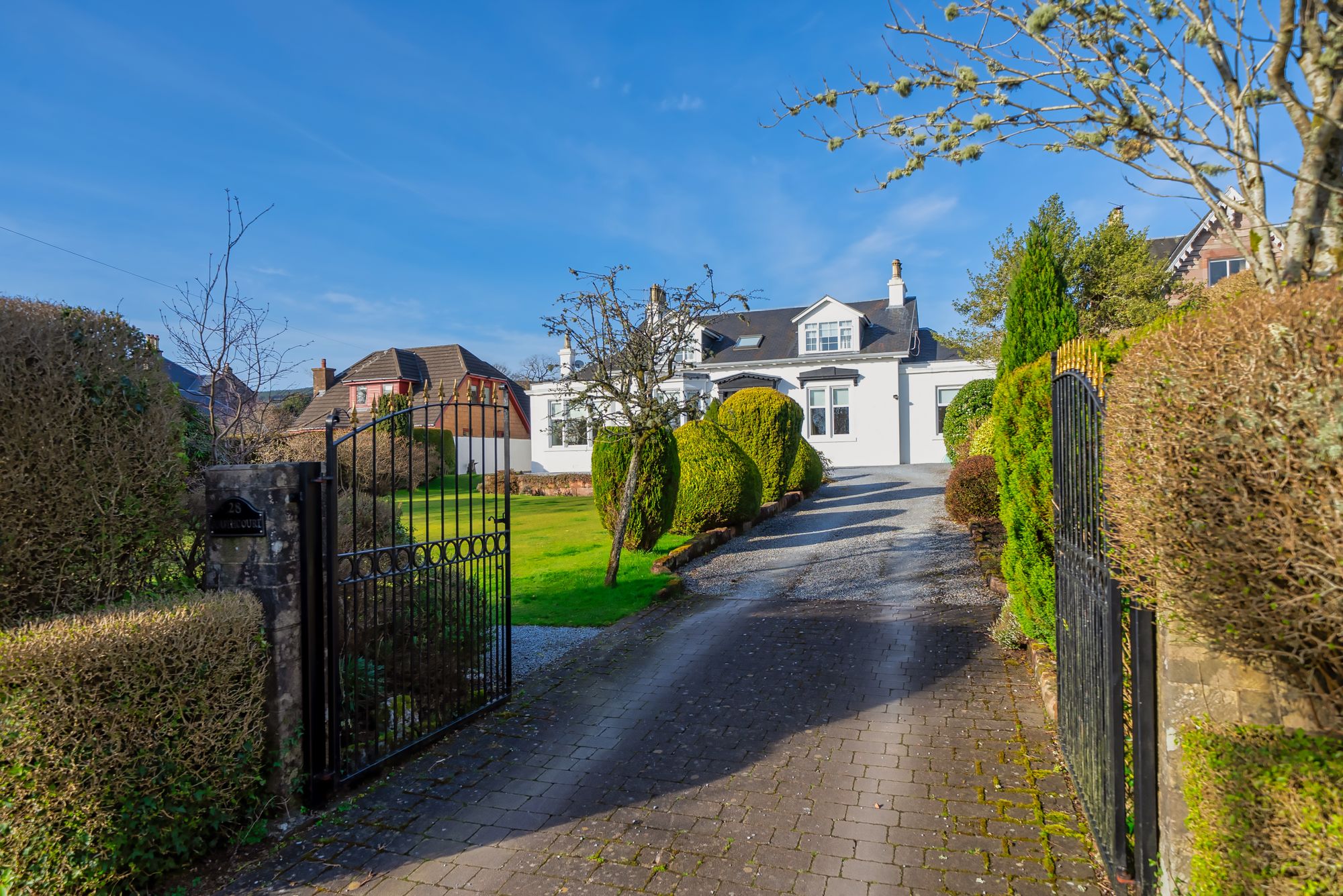 South Court is a large detached home on the west side of Helensburgh, within the town’s conservation area. Dating from around 1869, the house combines original period features with modern upgrades throughout. It sits well back from the road within extensive mature gardens, providing an excellent level of privacy.