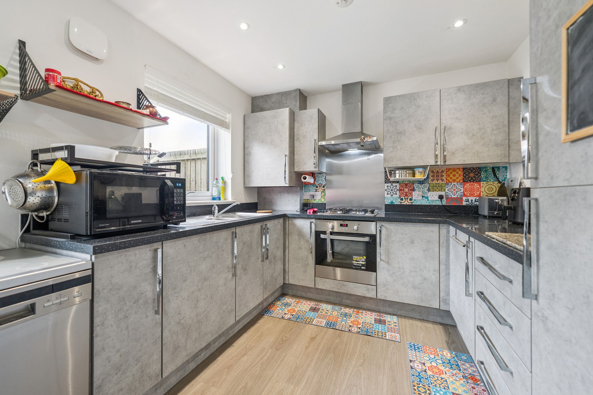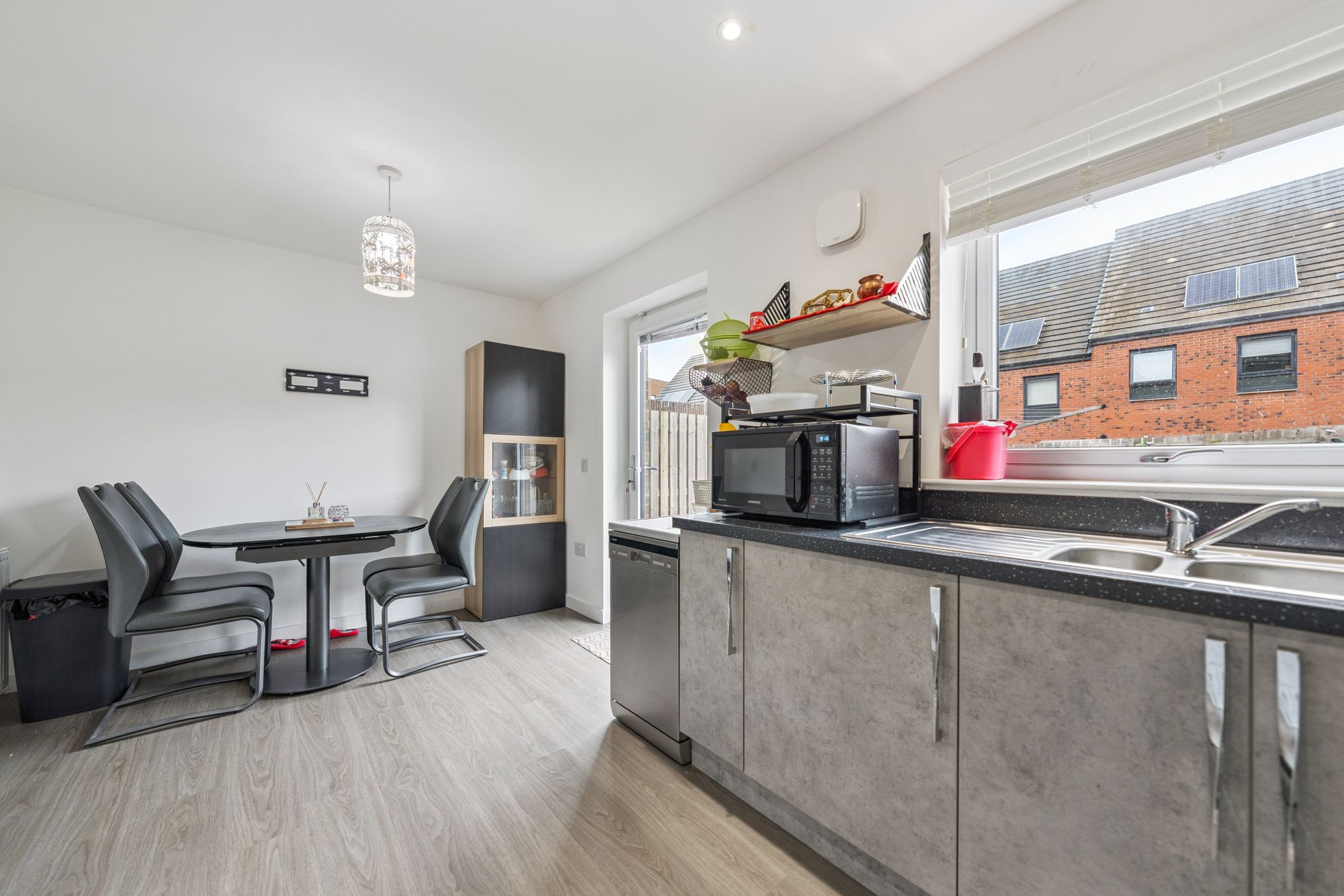 Further benefits include double glazing, gas central heating, solar panels, and the remainder of the builder’s warranty for added peace of mind.