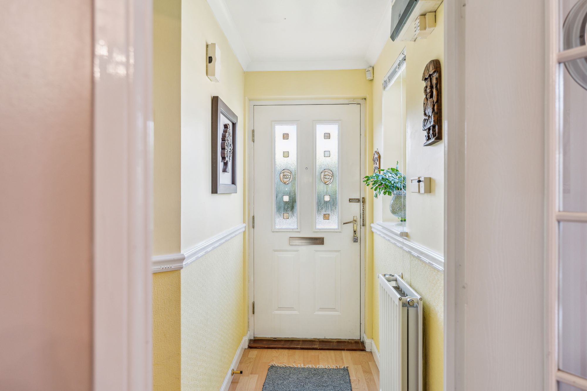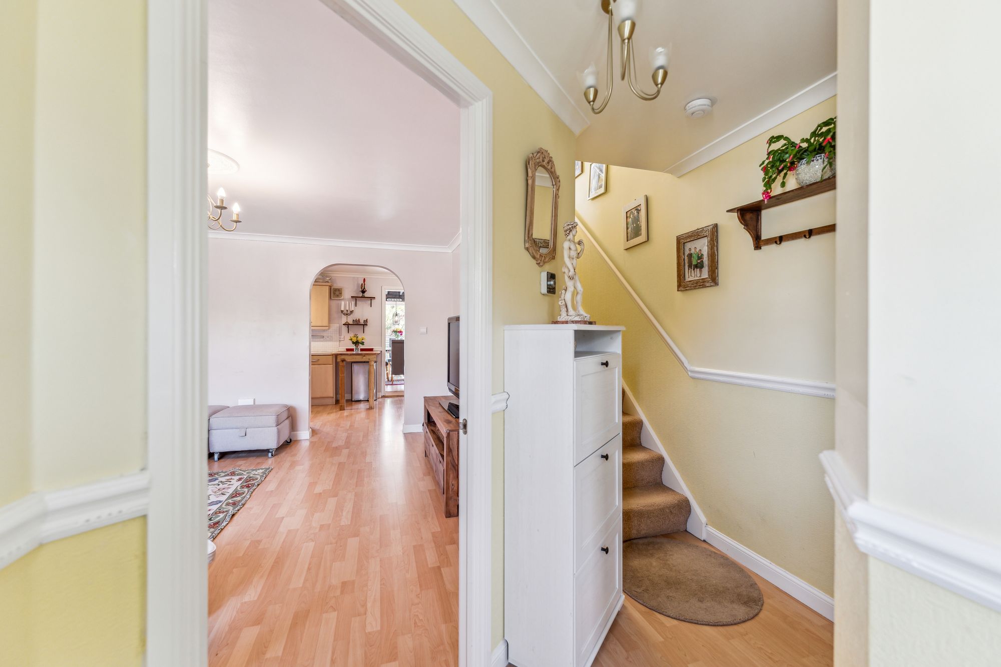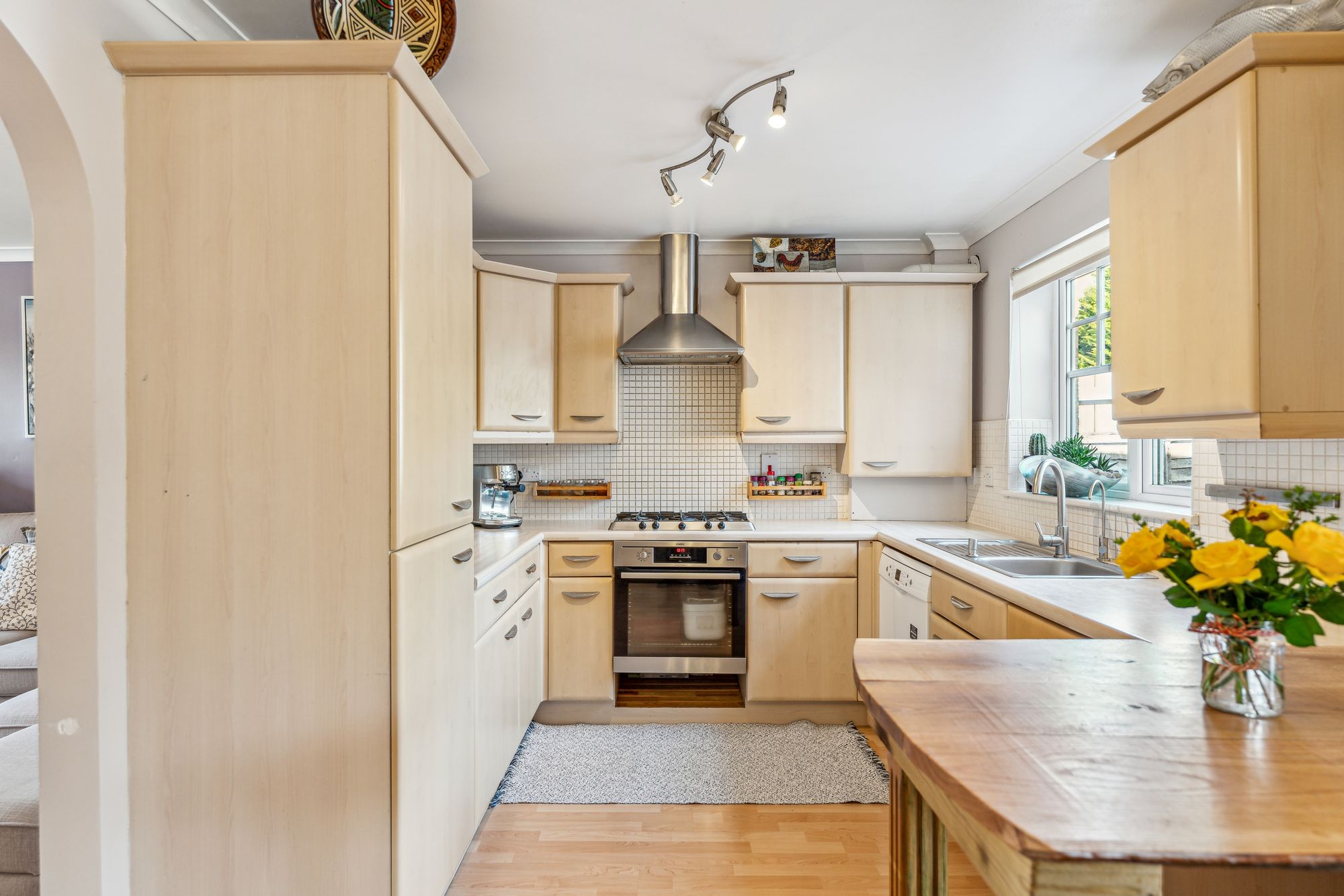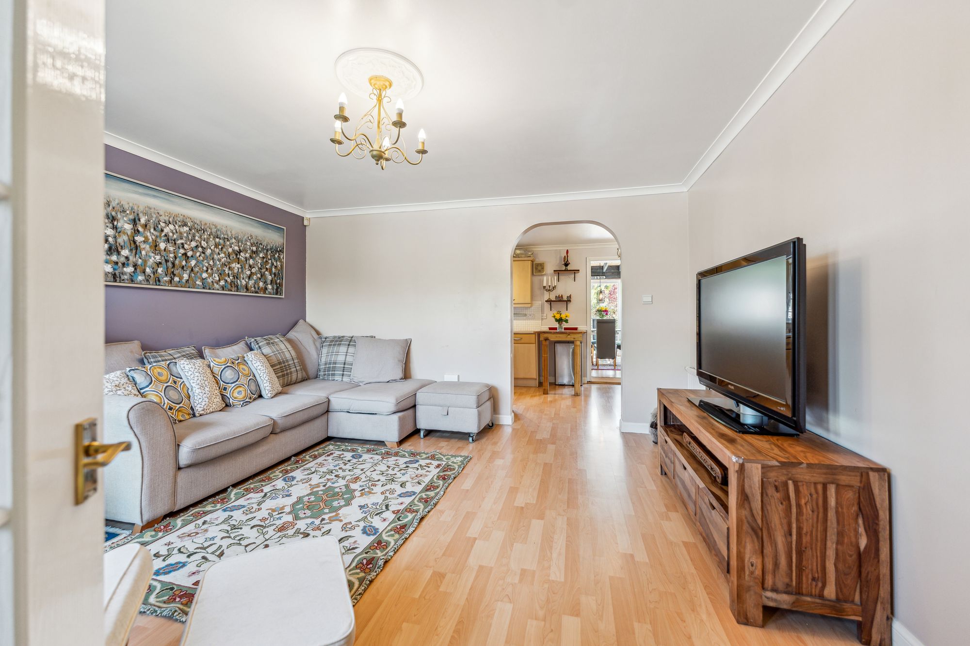 On arrival at the property, you are welcomed by a neat front lawn and a Monoblock driveway accessed via gates allowing off-street parking for two vehicles. Internally, the property offers bright and spacious accommodation over two levels and will appeal to a broad spectrum of buyers. In brief, the accommodation extends to; entrance hallway with w/c off, front facing living room which is semi-open to the dining sized kitchen. The kitchen itself has base and wall mounted units with appliances. There is also a lean-to off the kitchen which is being utilised as a dining room and has double doors leading to the garden. On the upper level there are two bedrooms, both of which have built in storage and a fully tiled bathroom with three piece suite and shower over the bath.