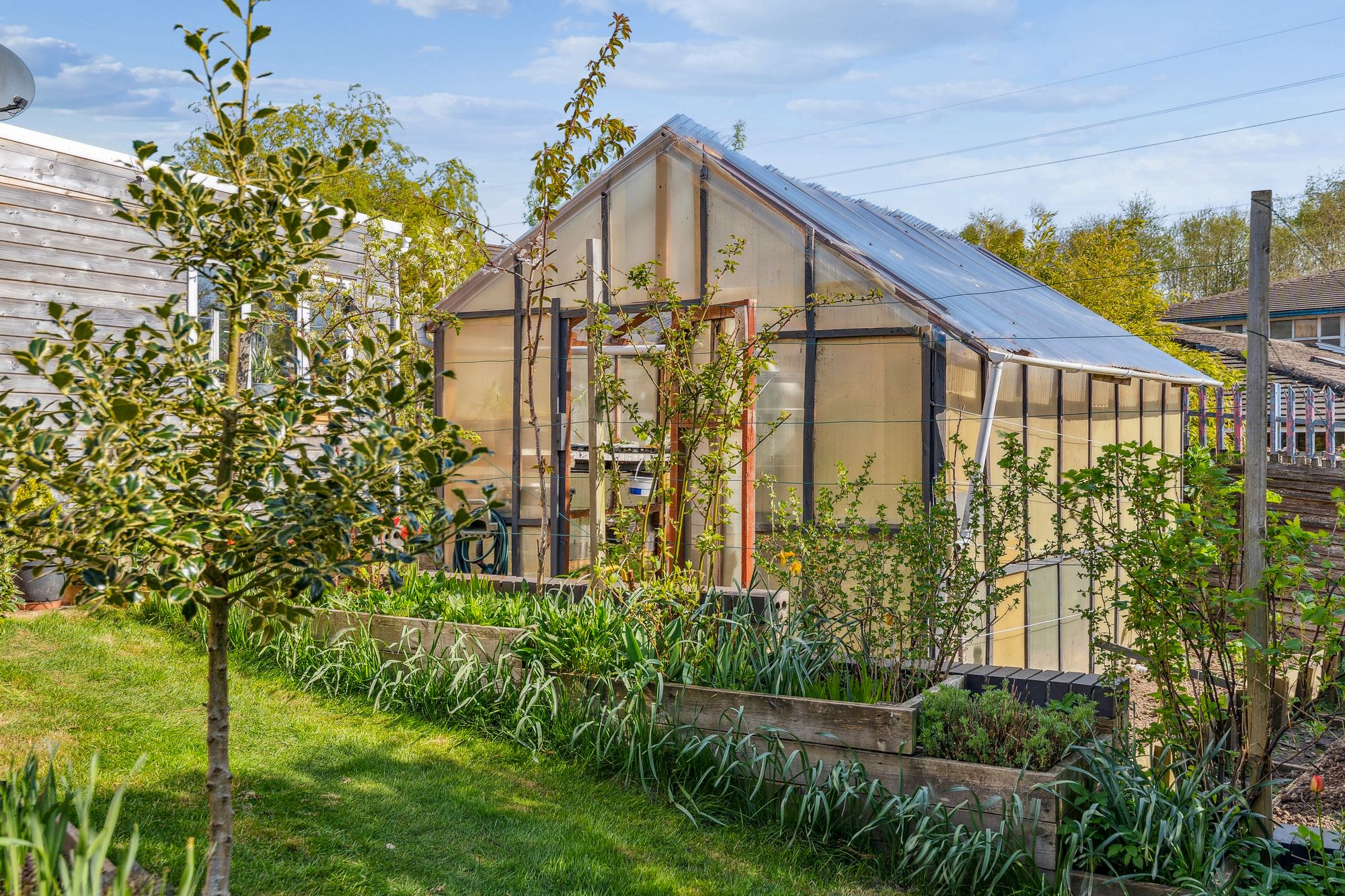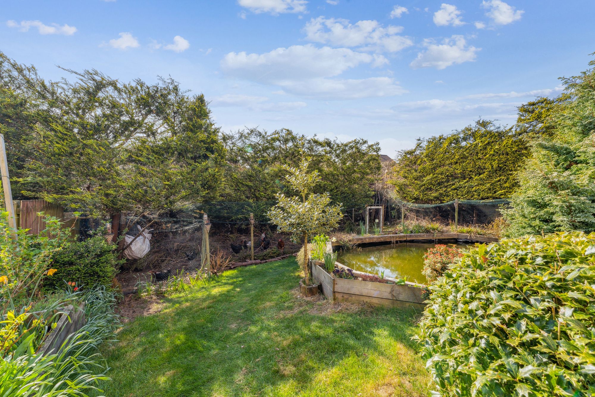 The back garden is undoubtably one of the best features of the property and is a true oasis. It is completely unoverlooked and is particularly leafy with sections of bedded plants/shrubs, a lawn, a large pond and greenhouse.