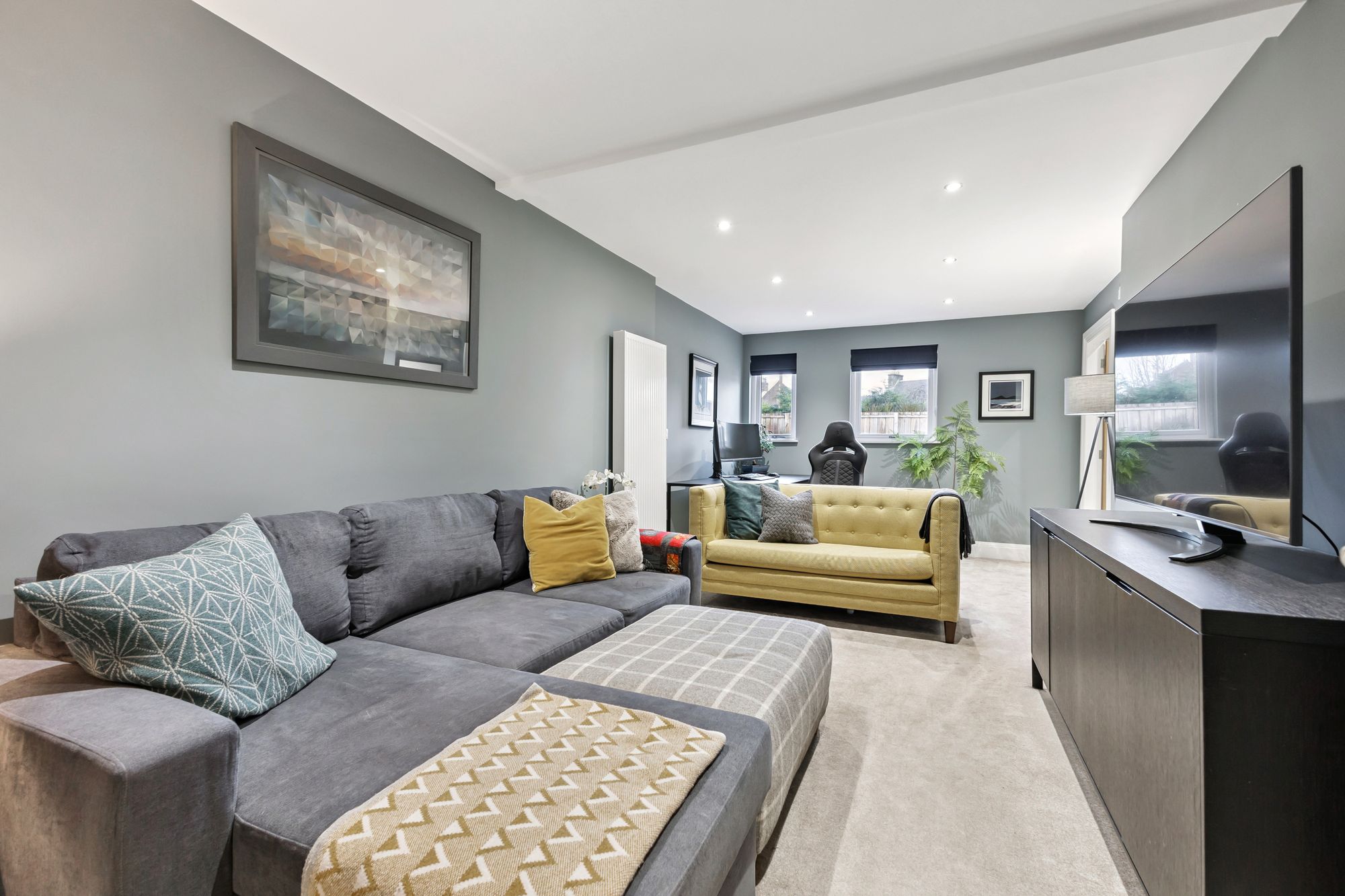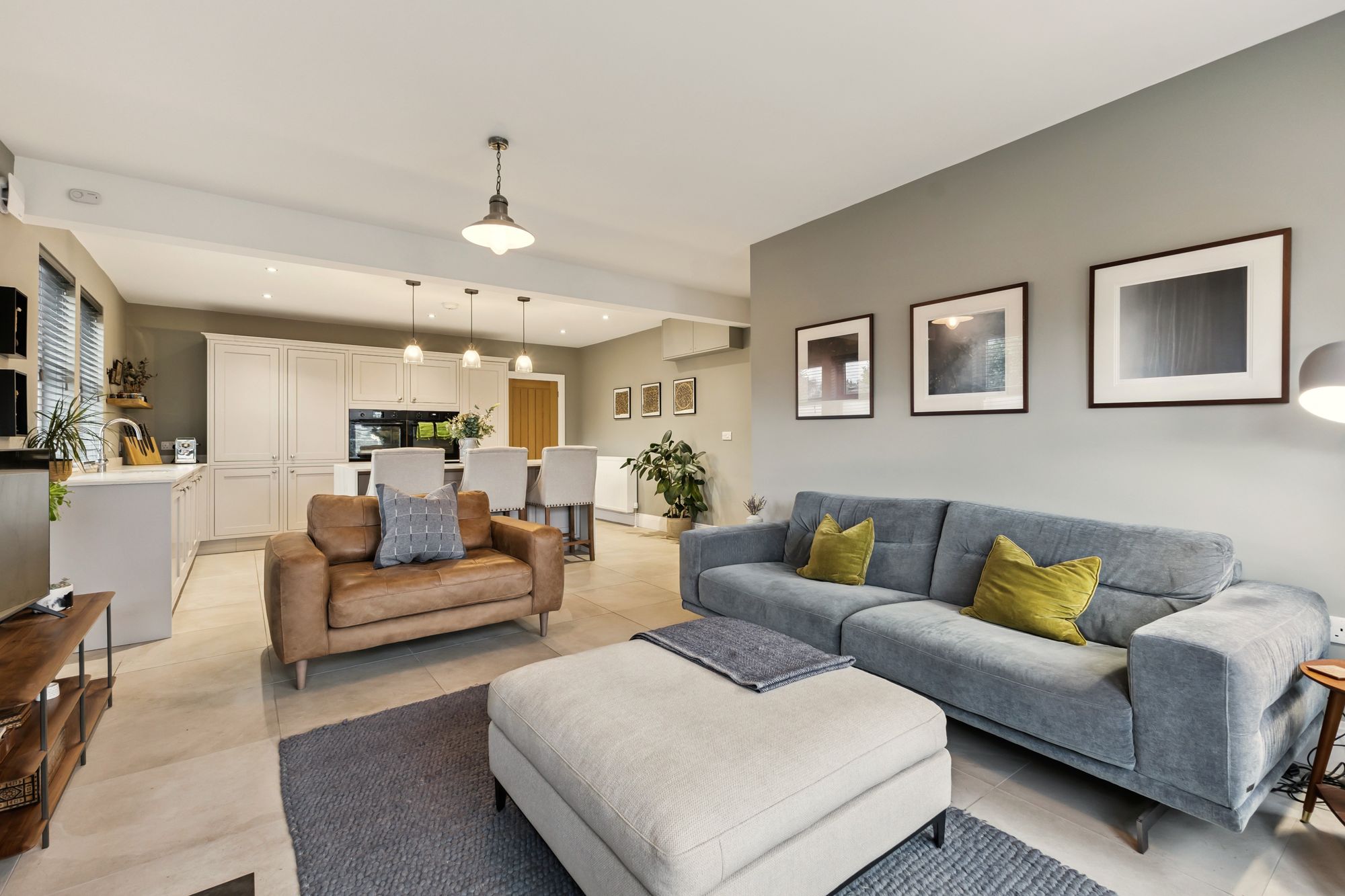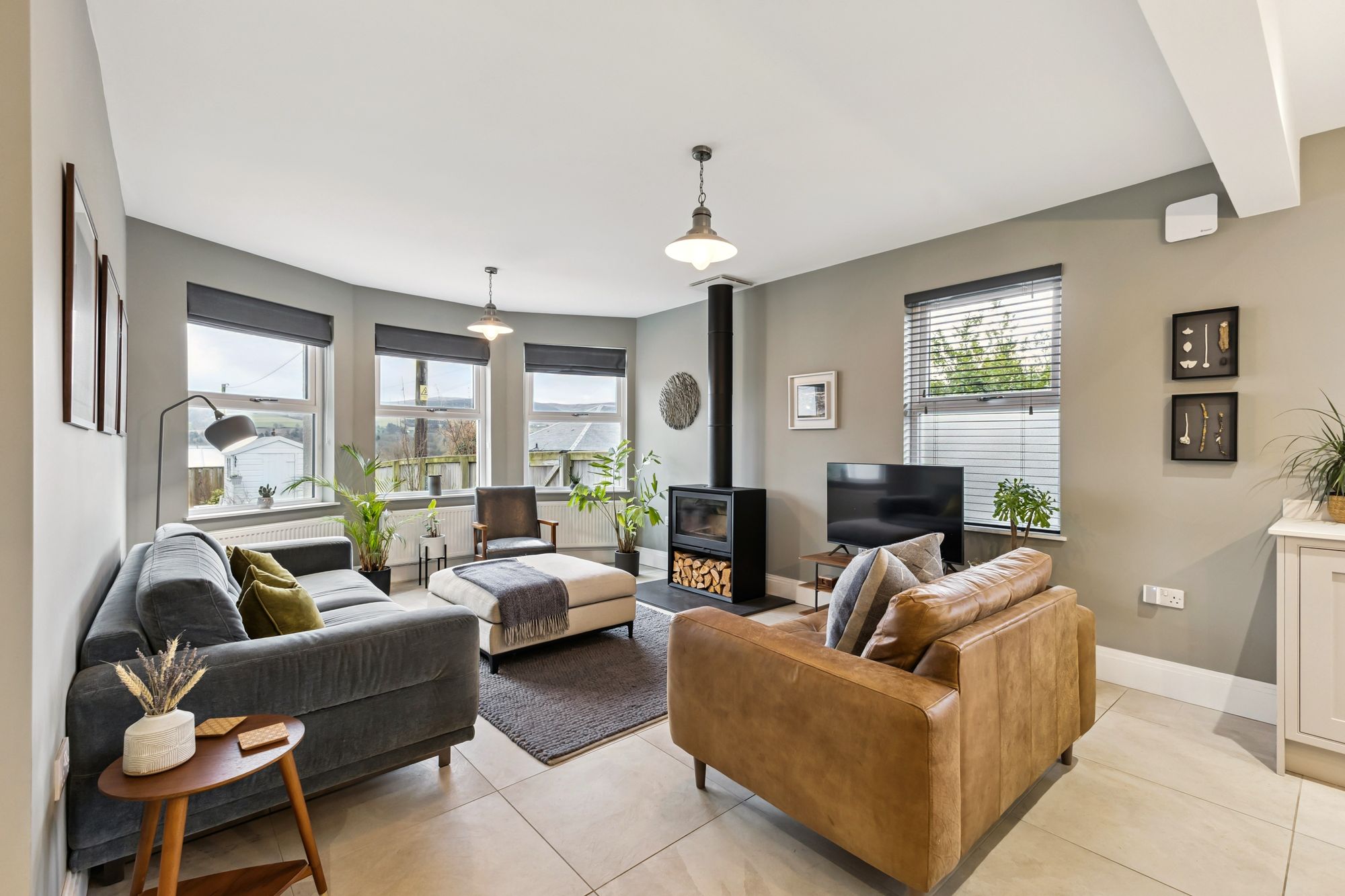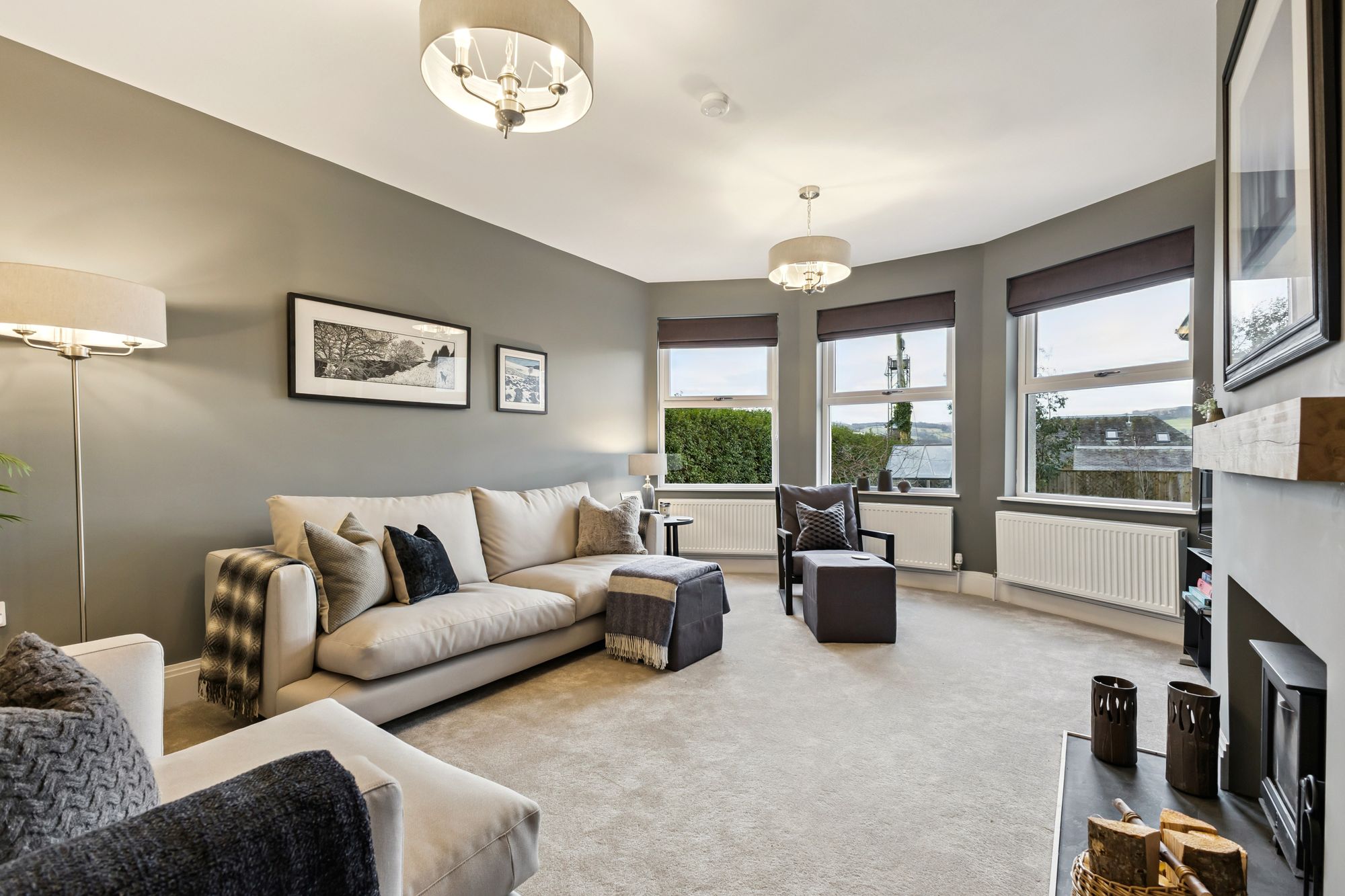 Externally, the villa occupies a large plot with a well-maintained and private rear garden. To the front, there is a courtyard area providing ample parking along with a double garage. Situated on a quiet lane, the property also offers direct access to the nearby field, with scenic views extending over to the Ochils.