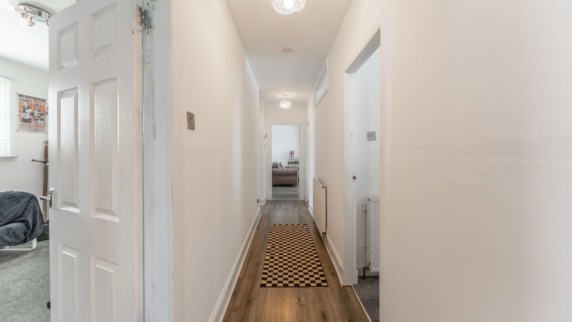 The accommodation includes a welcoming reception hallway, a bright and spacious lounge with front-facing windows, three generously sized double bedrooms, and a modern, dining-sized kitchen. A stylish three-piece family bathroom completes the interior.