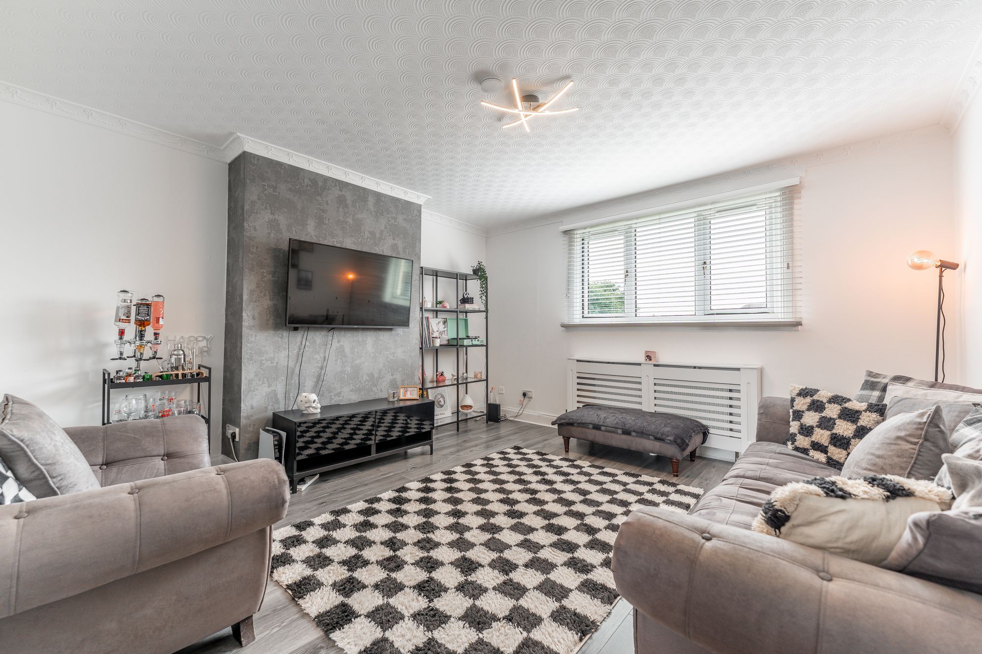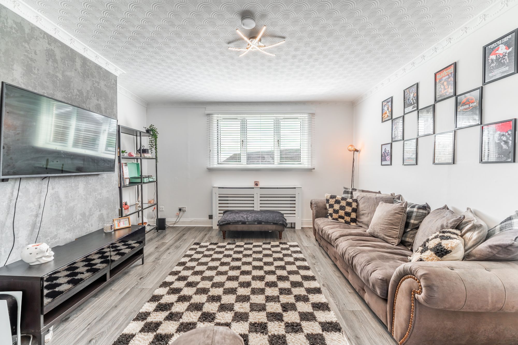 Spacious three bedroom upper cottage flat situated in a popular residential area in Barmulloch, offering convenient single-level living with private drive way, garage and large rear gardens with decking.