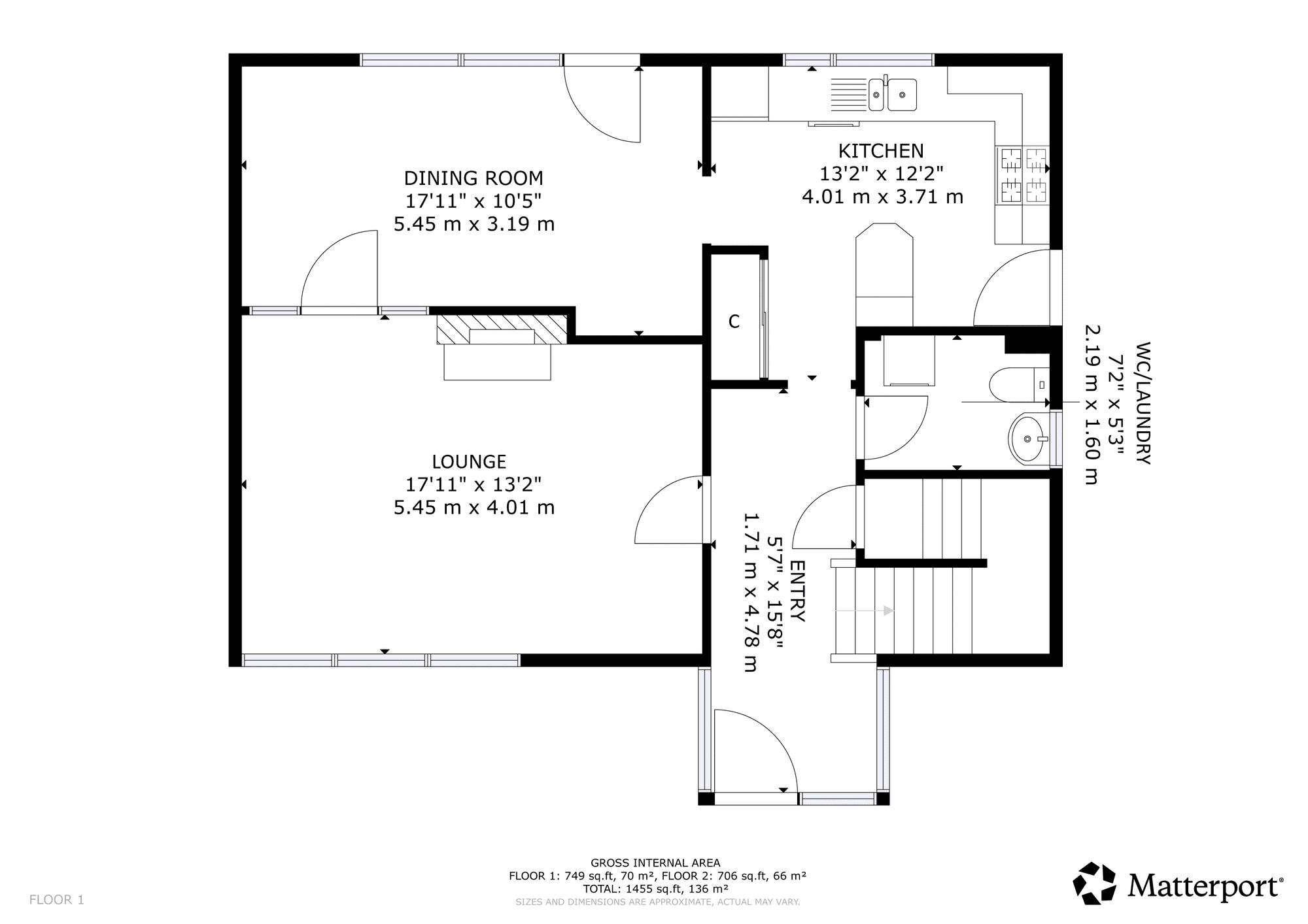 The accommodation opens into a welcoming reception hallway, leading through to a bright and generously proportioned lounge, enhanced by a feature fireplace, quality laminate flooring, and floor to ceiling windows which flood the space with natural light. The well-appointed dining area is pleasing family hub and the fitted kitchen has a range of floor and wall-mounted units, integrated breakfast bar, and ample workspace, perfect for both everyday living and entertaining. A convenient downstairs WC, with plumbing for an automatic washing machine, completes the ground floor accommodation. Upstairs, the property boasts four well-proportioned bedrooms, including a spacious principal bedroom with a ensuite bathroom and a refitted shower room provided.