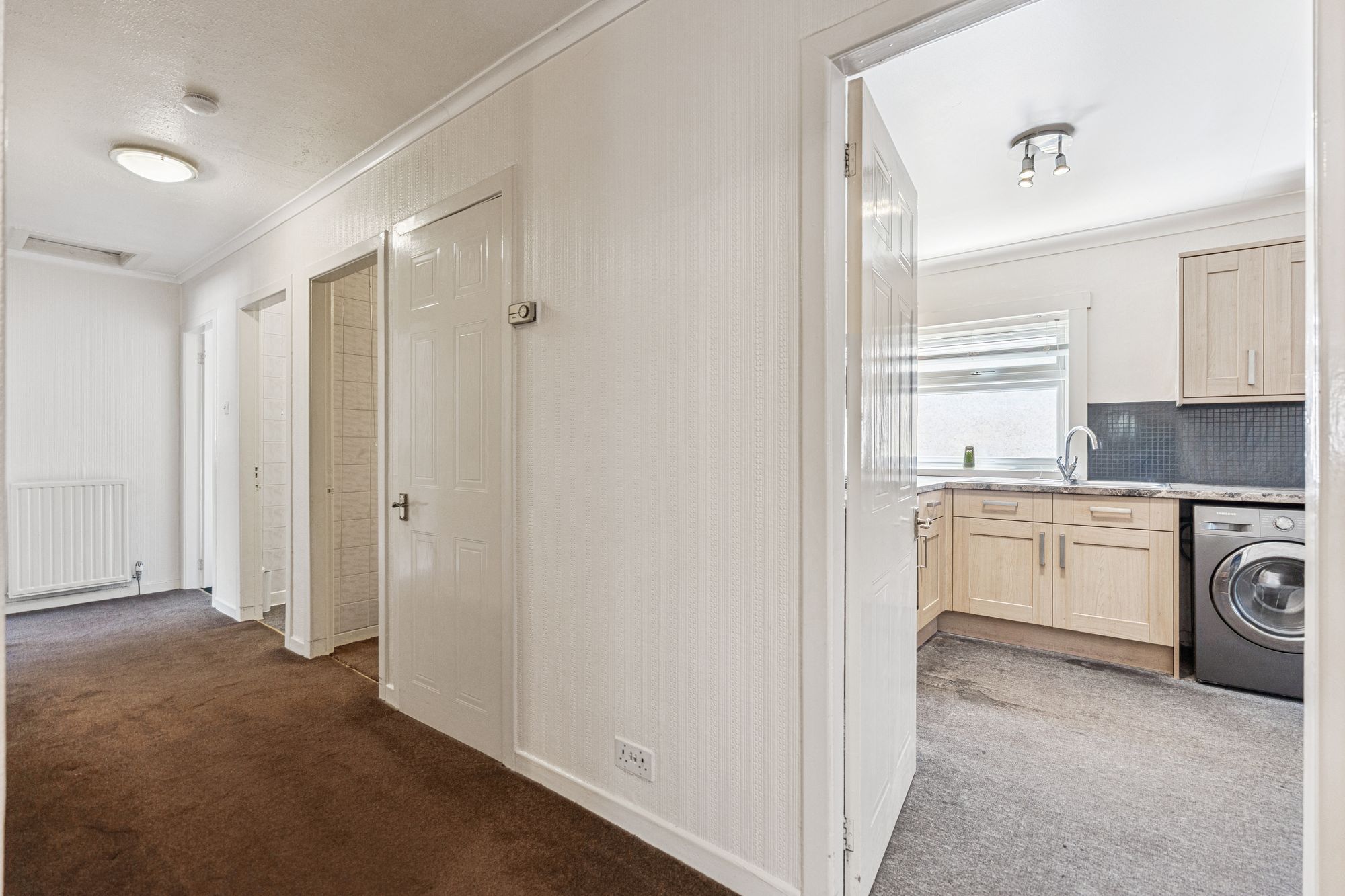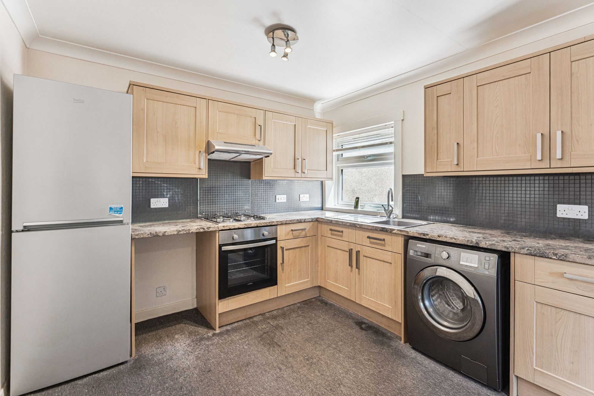 The property is approached via easily maintained private front garden with path leading to front door. The hallway with storage cupboard provides access to all rooms. There is a spacious south west facing living room with feature fireplace. The modern, large dining kitchen has a selection of floor and wall mounted units. The appliances include gas hob with extractor hood and light, oven, washing machine and fridge freezer. Form the kitchen, there is direct access out to the enclosed rear garden which is paved and provides plenty of opportunity to create a private and featureful outdoor space.