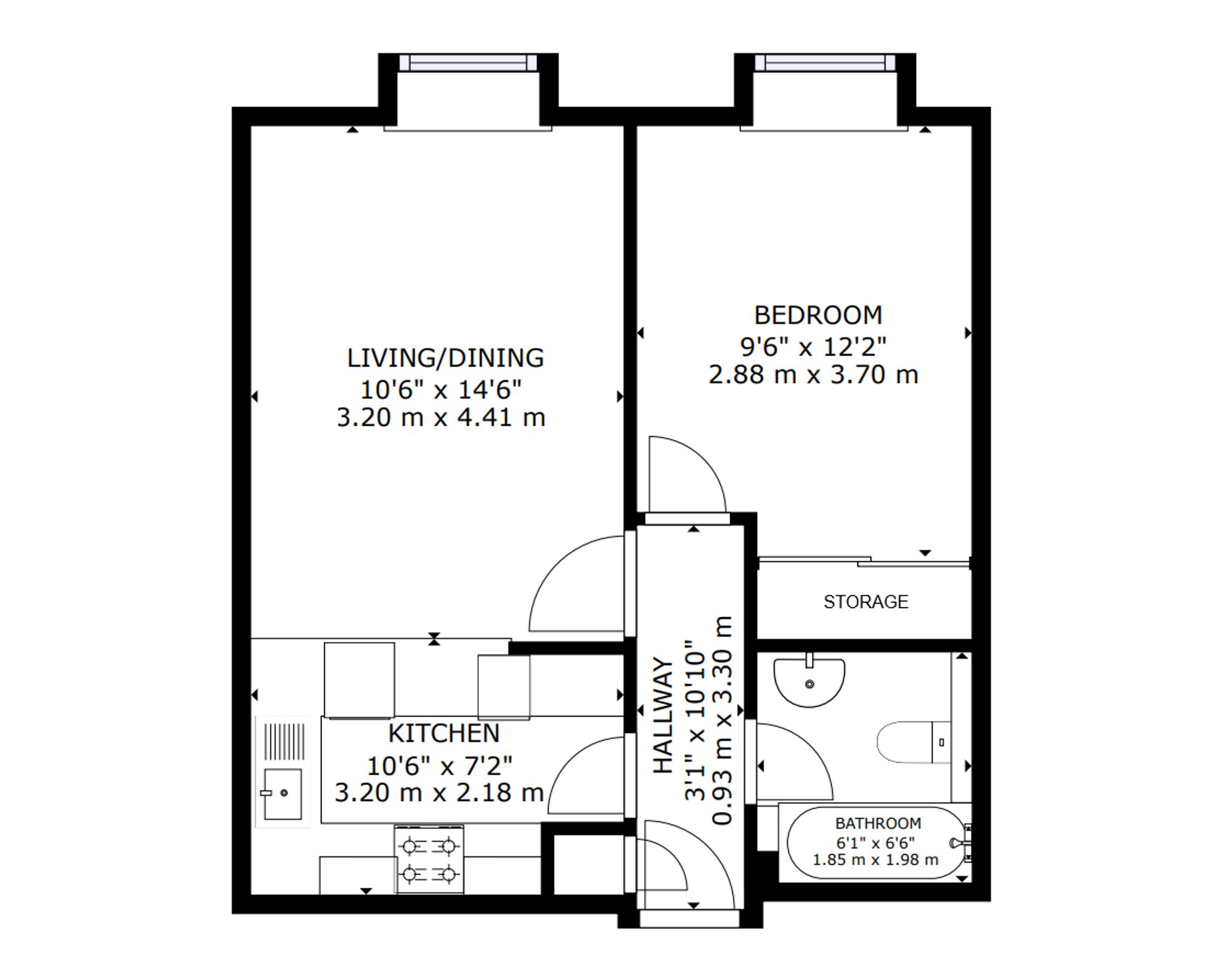 The internal accommodation is well proportioned and comprises a welcoming hall, a bright and comfortable lounge, a fitted kitchen, a double bedroom with integrated storage and a bathroom. The layout is practical and suited to modern living while retaining the character expected of a converted mill property.