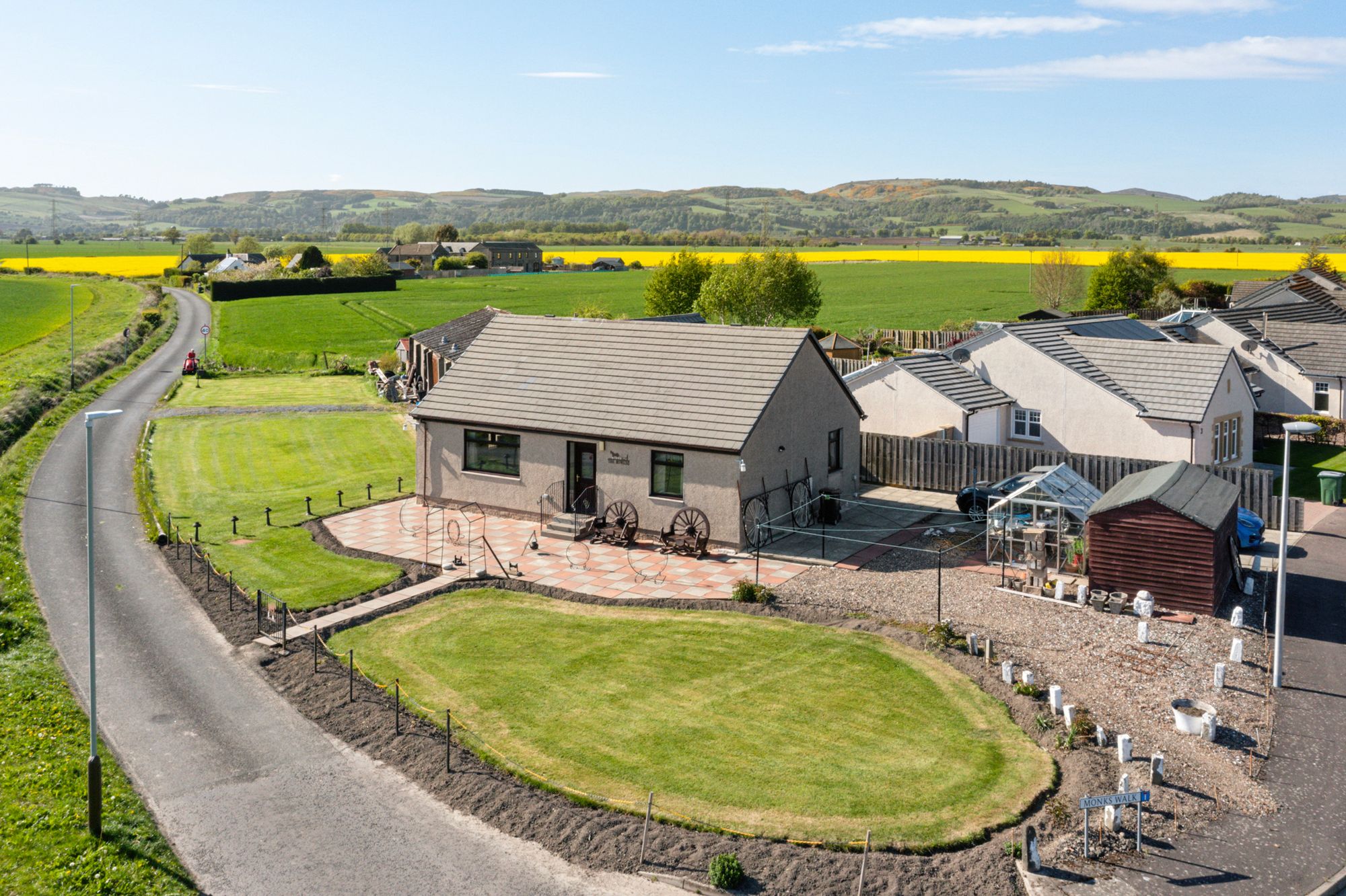 The property is positioned at the edge of Monks Walk, a small development of modern bungalows, and offers easy access to the amenities of Errol, including shops, schooling, and other essential services.