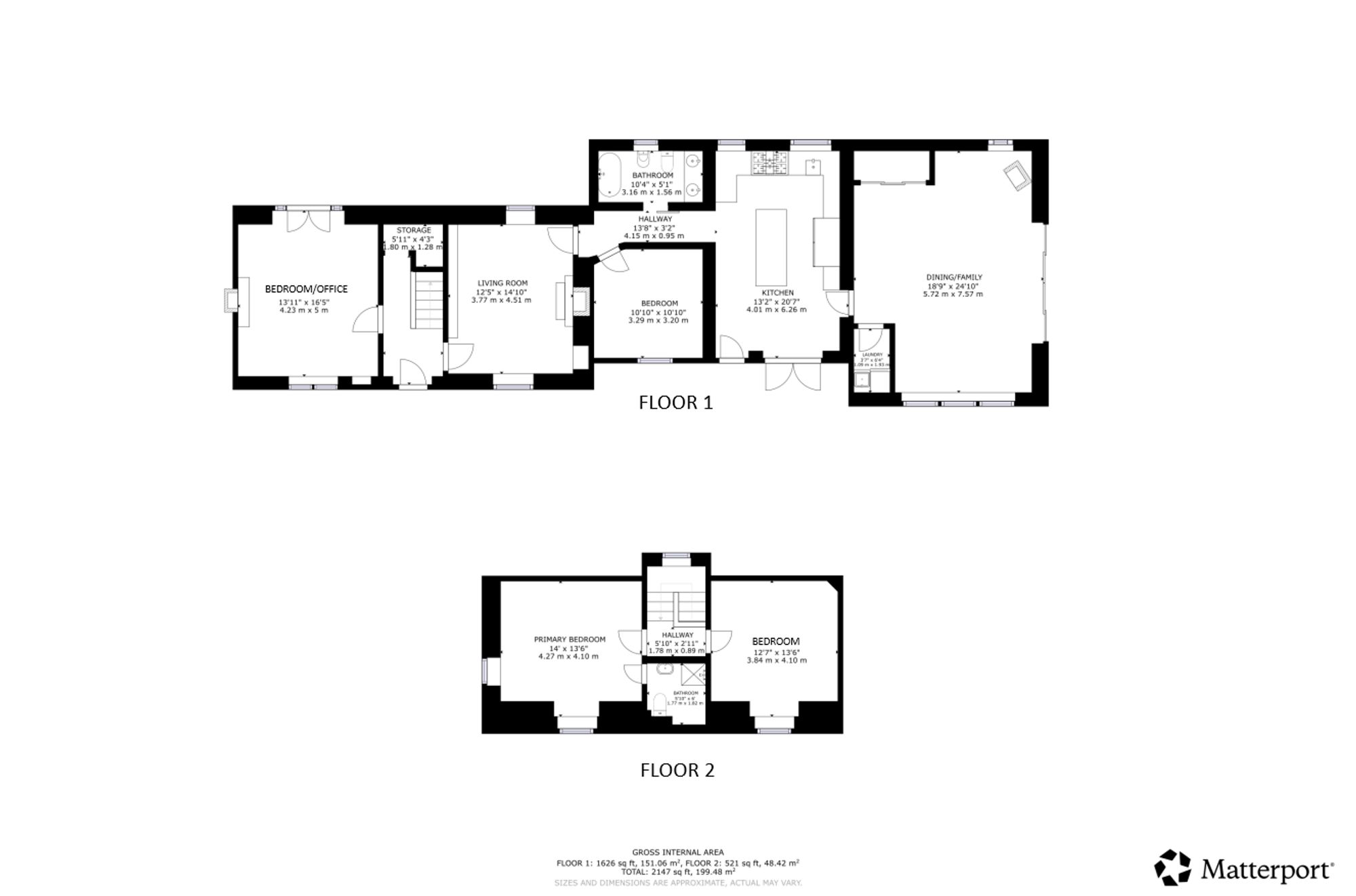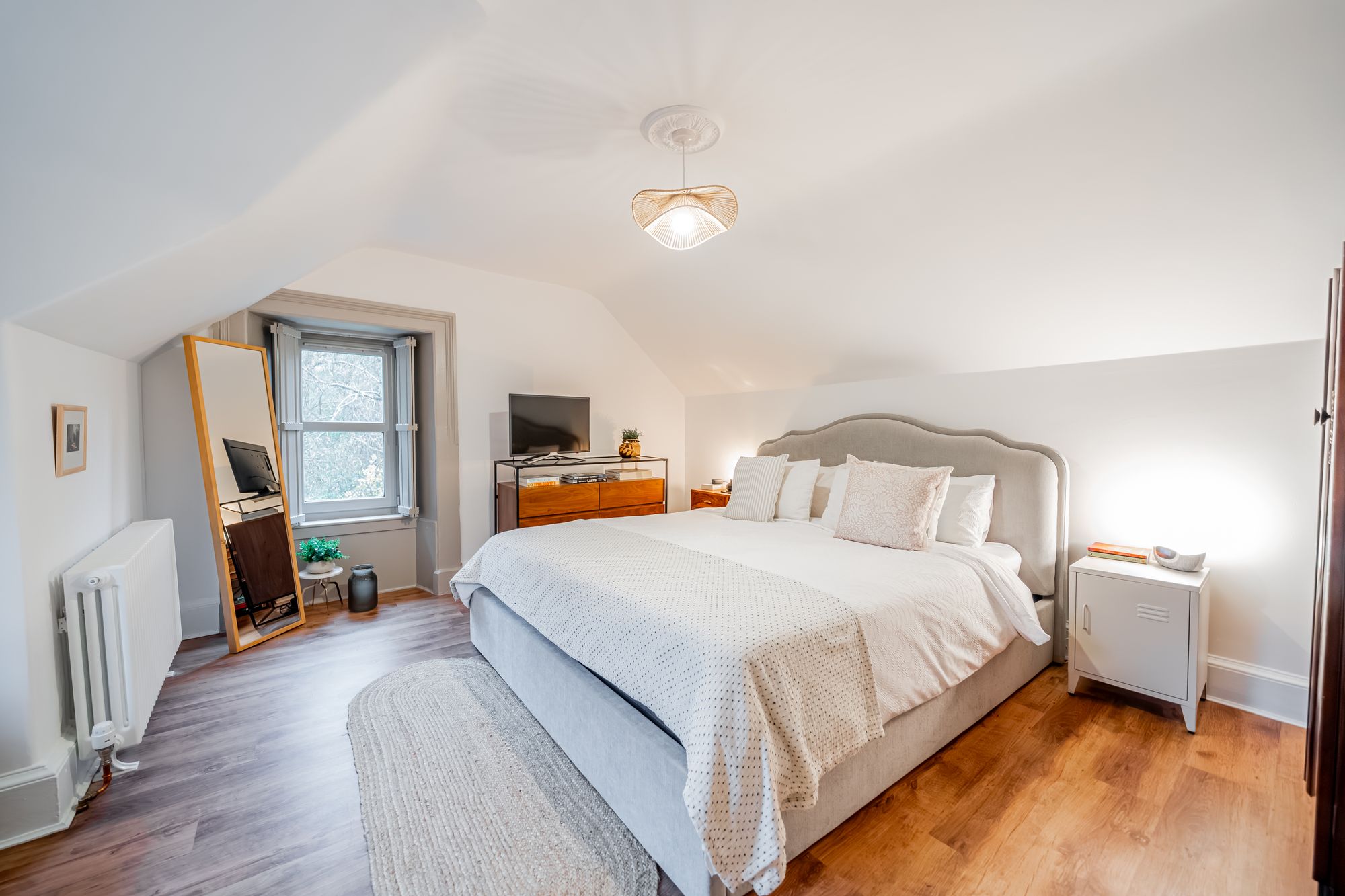 The upper level of the property has two particularly cosy bedrooms, large enough for double beds with the principal bedroom benefitting from it’s own ensuite shower room.