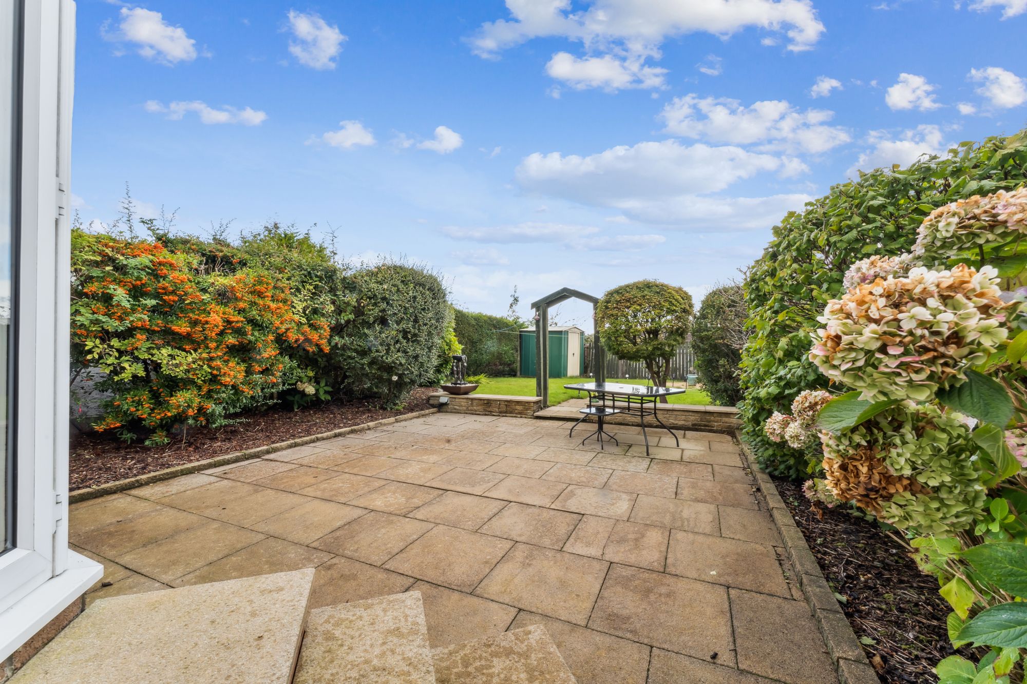 Externally, the home is complemented by a generous enclosed rear garden featuring a large patio area ideal for outdoor furniture, a flat lawn bordered by mature trees, shrubs, and timber fencing, as well as a useful garden shed. To the front, is a well maintained garden and a driveway offering ample off-street parking and leads to the rear garden. Additional features include gas central heating and PVC double glazing throughout.