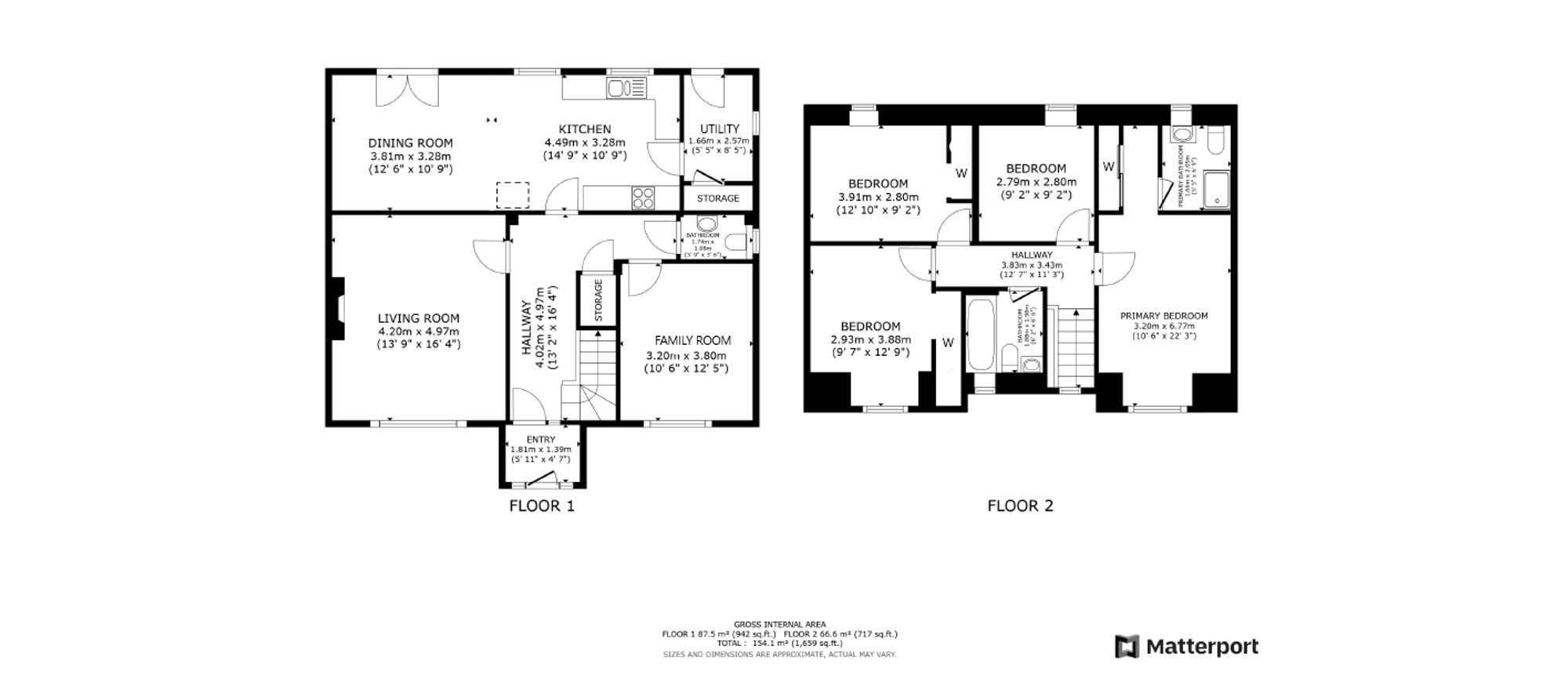 The upper level of the property has a central hallway providing access to the four remaining bedrooms which are all well proportioned with the principal bedroom featuring wardrobe storage and an ensuite shower room. Completing the accommodation is the family bathroom comprising a three piece suite in white.