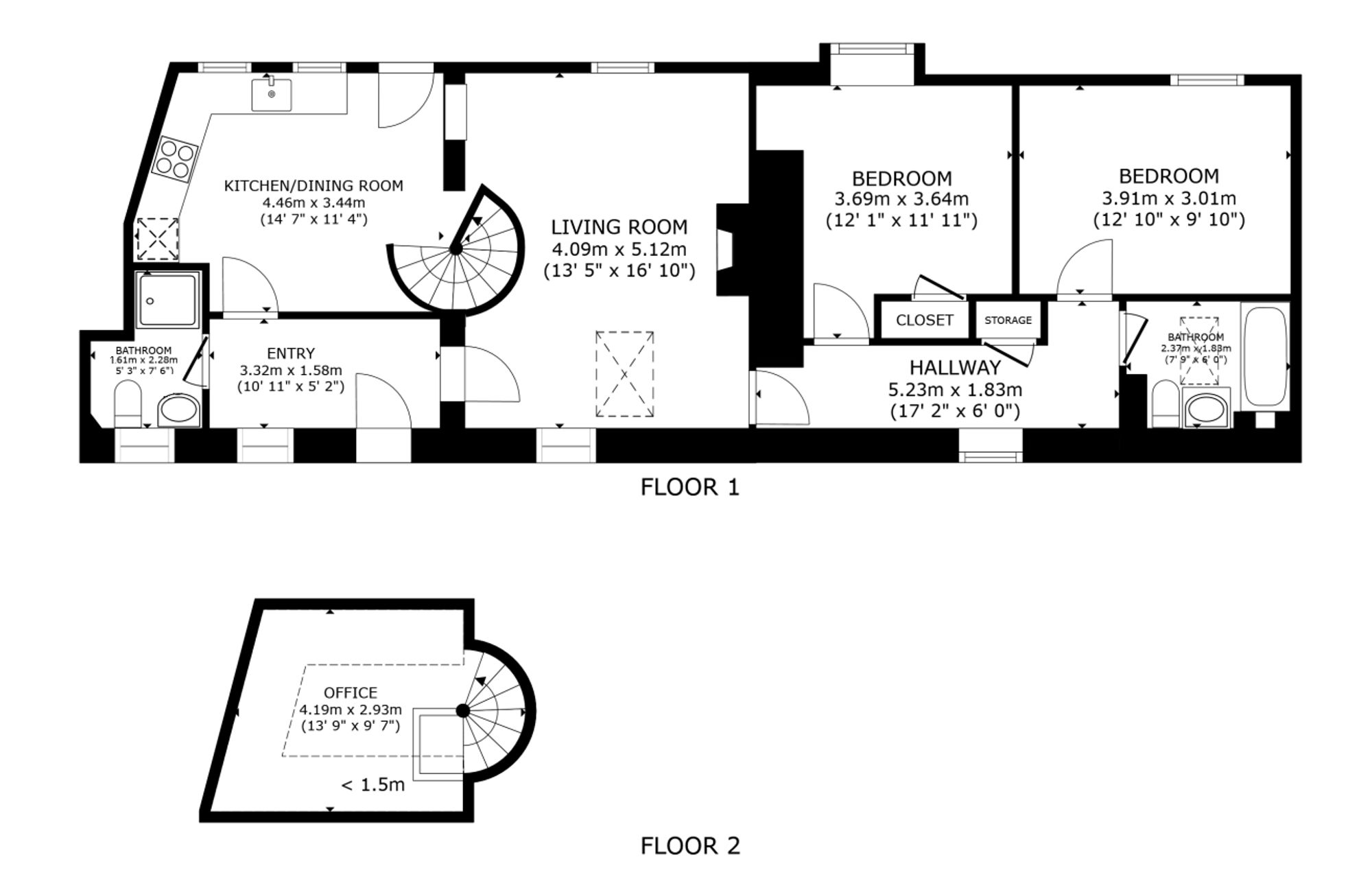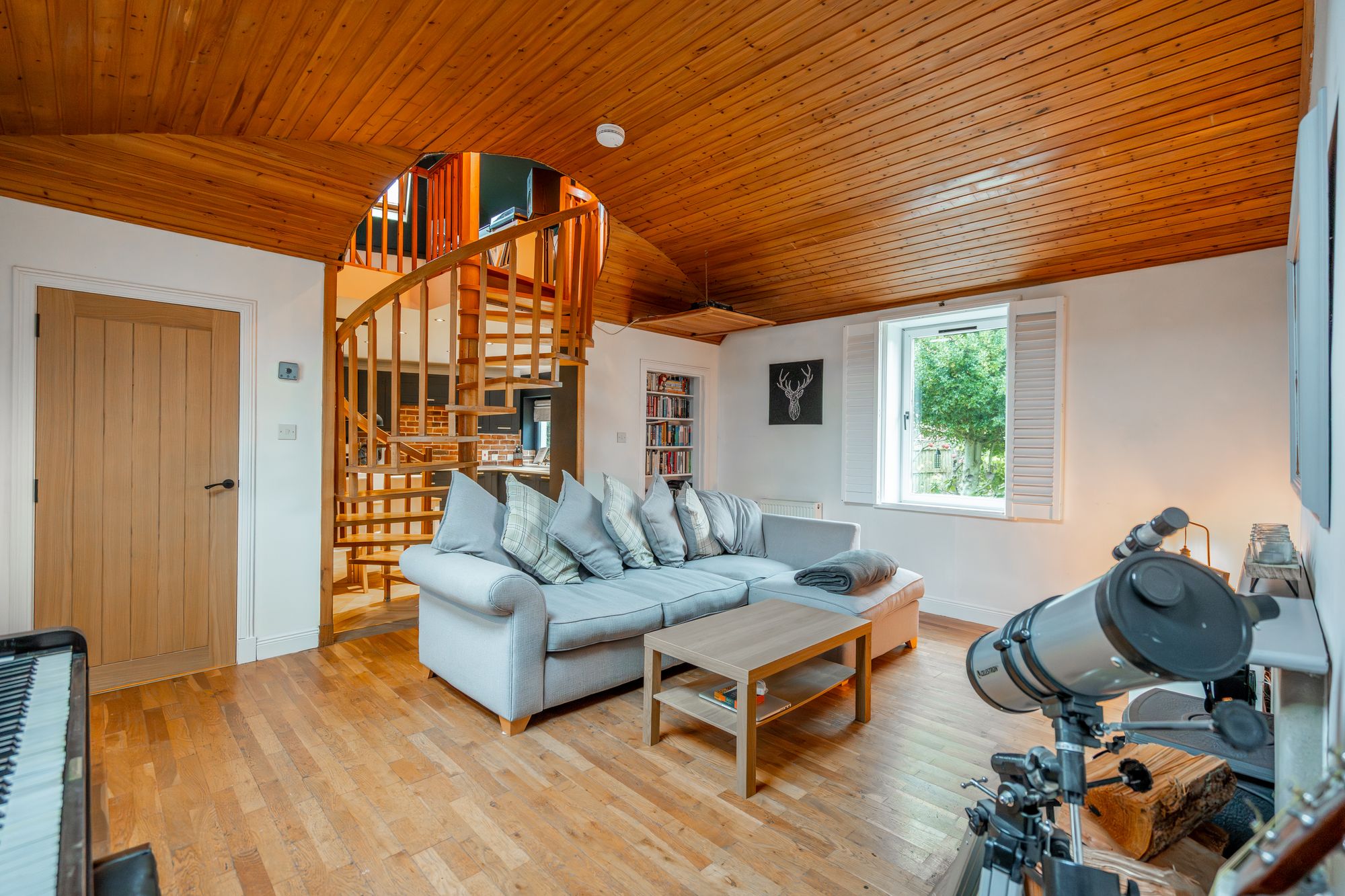 The spiral staircase leading to the attic floor introduces a sense of character and charm, opening into a peaceful study area ideal for home working, hobbies or simply enjoying a quiet corner away from the main living spaces. This versatile room has previously been used as a third bedroom and is capable of accommodating a double bed, offering additional flexibility for varying household needs.