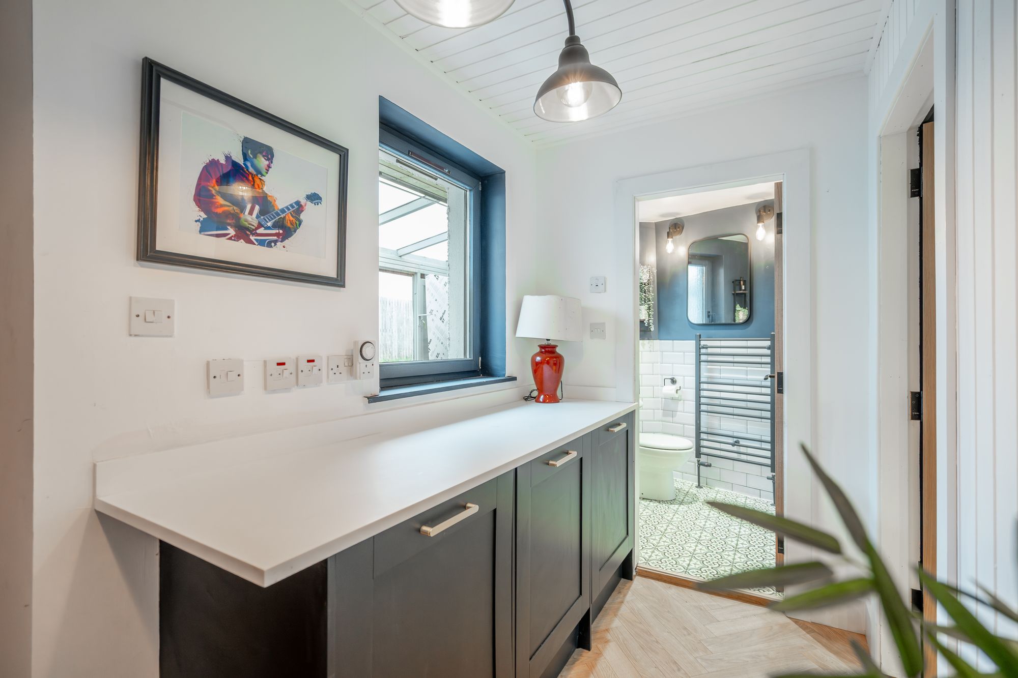 Myrtle Cottage blends traditional appeal with thoughtful extensions and adaptations, creating a home that feels both welcoming and versatile. The ground floor arrangement flows naturally, with the lounge positioned to offer a cosy focal point for everyday living. The kitchen/diner provides ample space for cooking, dining and entertaining, with enough room to accommodate family gatherings or more intimate meals. Both bedrooms on this level offer comfortable accommodation, while the bathroom and separate shower room add to the property’s practicality, ensuring flexibility for households or visiting guests. The utility room and rear porch contribute further storage and functionality, making the home particularly well suited to modern lifestyles.