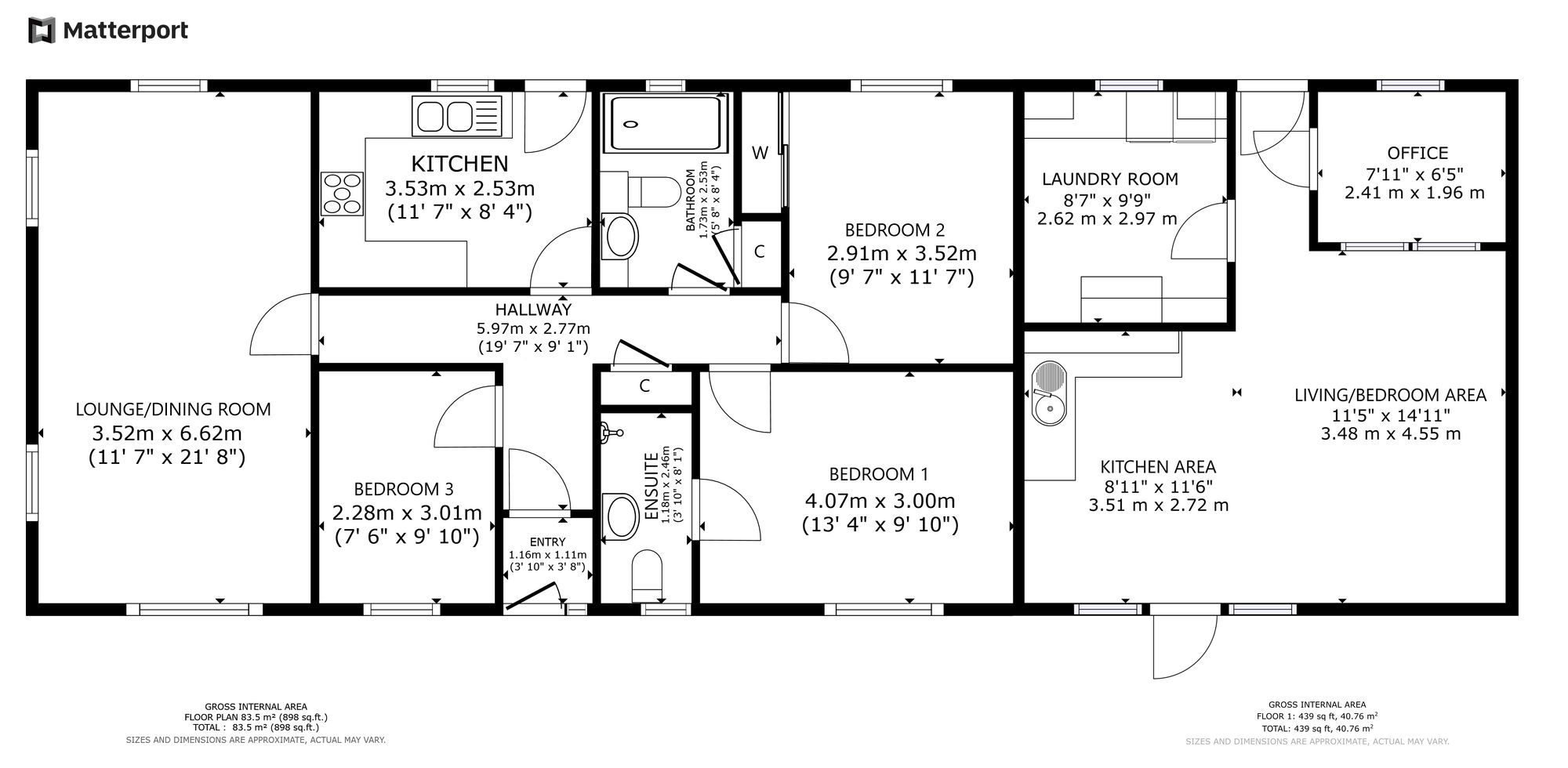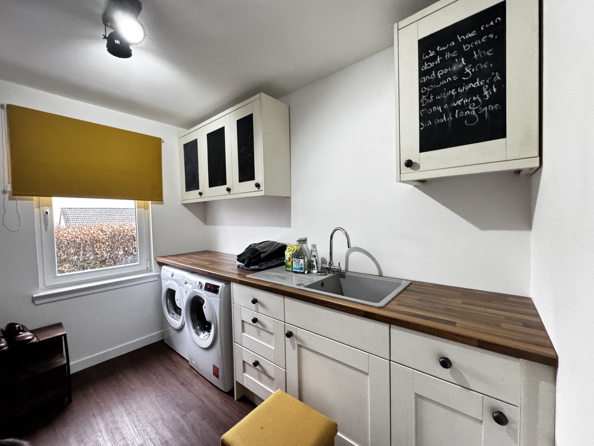 The original garage of the property, which is attached to the house, is over 40 square metres in size with plumbing and electrics installed. It has been converted into a separate annexe, comprising large open plan area, utility room and office space with French doors to the front and windows/door to the rear gardens. This part of the home could easily be converted into a lounge, kitchen, bedroom and shower room. As such, it offers excellent potential for a granny flat, guest suite or holiday letting business.
