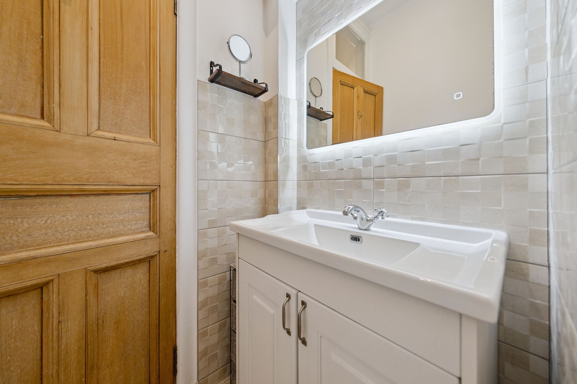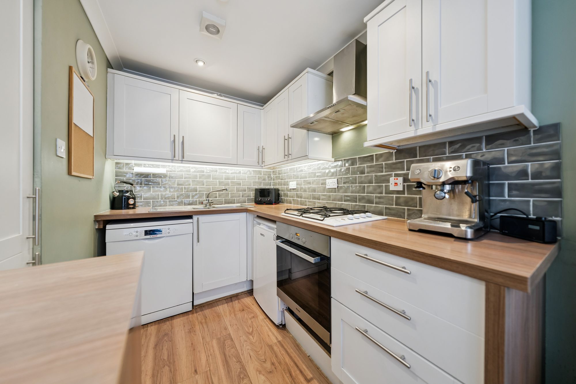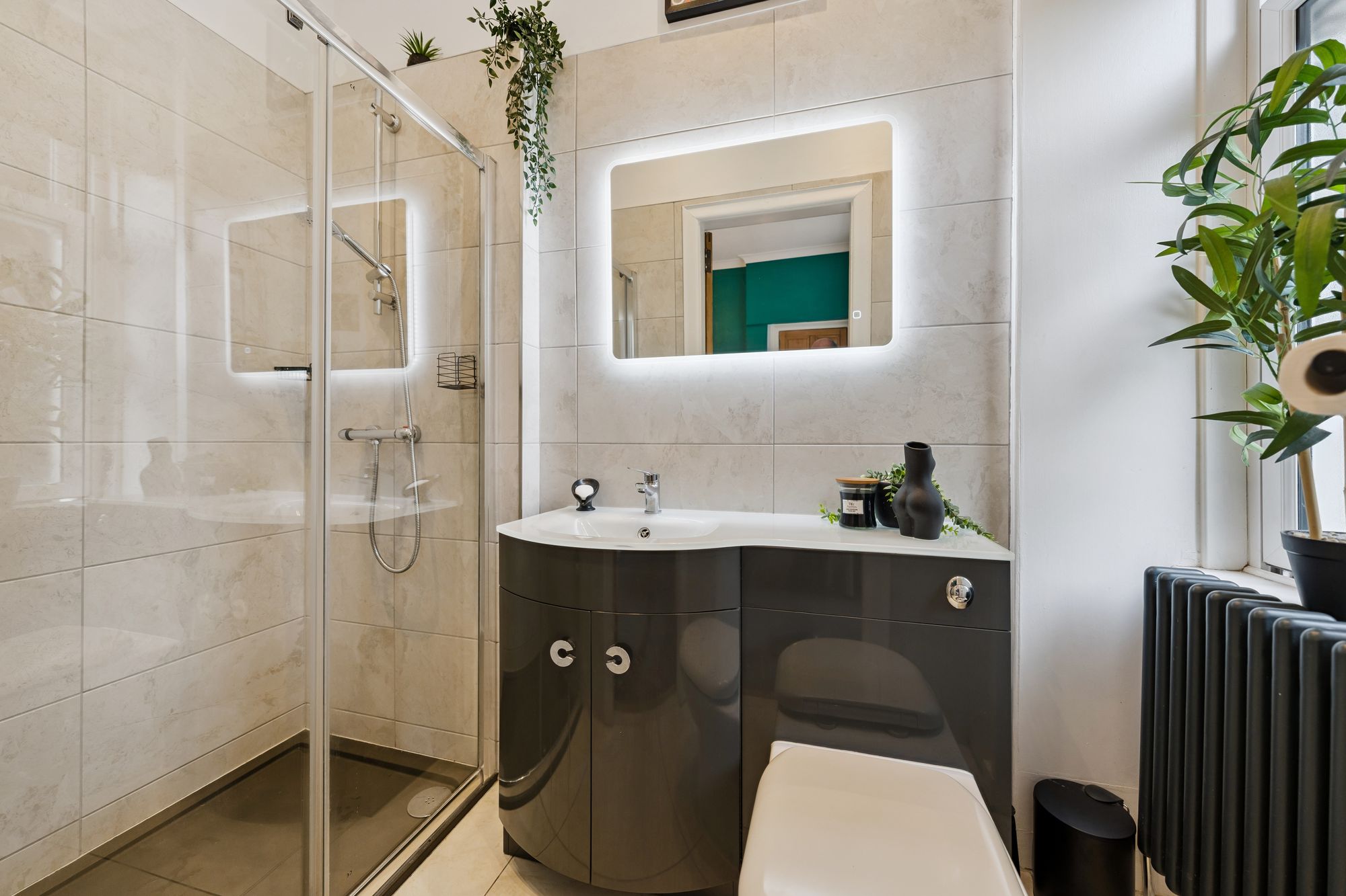 The property offers three generously proportioned double bedrooms, each providing excellent space for freestanding furnishings. The principal bedroom, quietly positioned to the rear, further benefits from a stylish en-suite shower room. A contemporary galley-style bathroom, complete with a sleek three-piece suite and shower over bath, completes the accommodation.