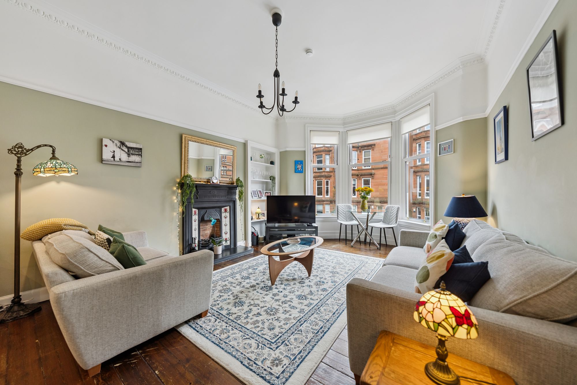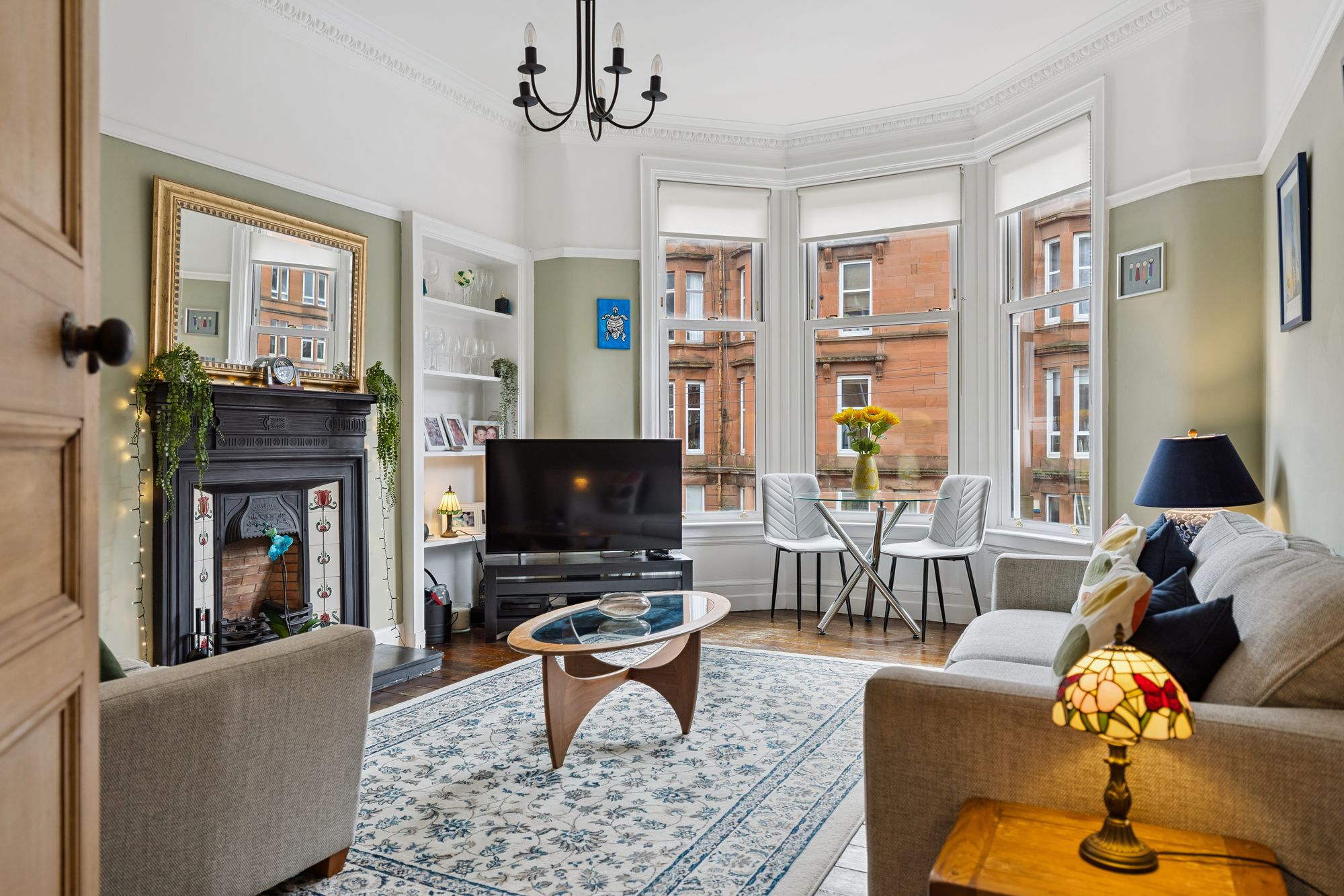 Set within an attractive red sandstone tenement, this beautifully presented three-bedroom first-floor flat occupies a prime position in the ever-popular Shawlands district. Thoughtfully refurbished to an exceptional standard, the property seamlessly blends traditional character with contemporary comfort, further enhanced by new double-glazed sash and case windows, gas central heating, and convenient on-street parking.