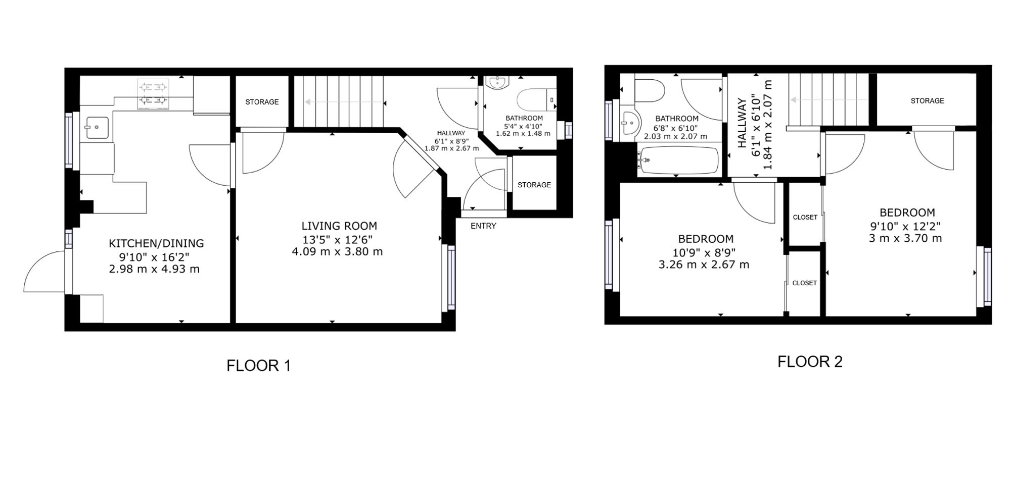 Upstairs, the first floor offers a landing giving access to two good-sized bedrooms, each providing comfortable and flexible accommodation. The stylish bathroom is well presented and fitted with modern fixtures and fittings.