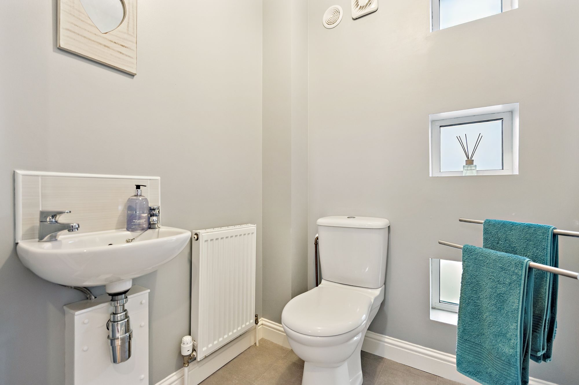 On the ground floor, the entrance hall leads into a spacious lounge filled with natural light, creating a welcoming space to relax and unwind. The modern kitchen/diner is fitted with a range of contemporary units and provides ample room for dining, making it the heart of the home. A convenient ground-floor toilet completes this level.