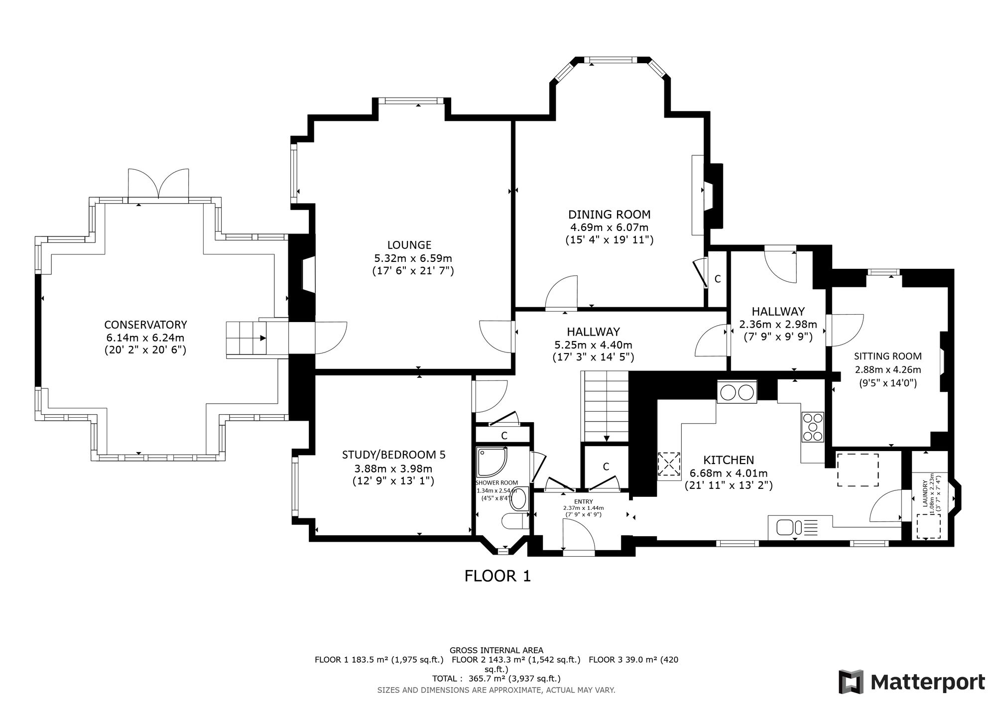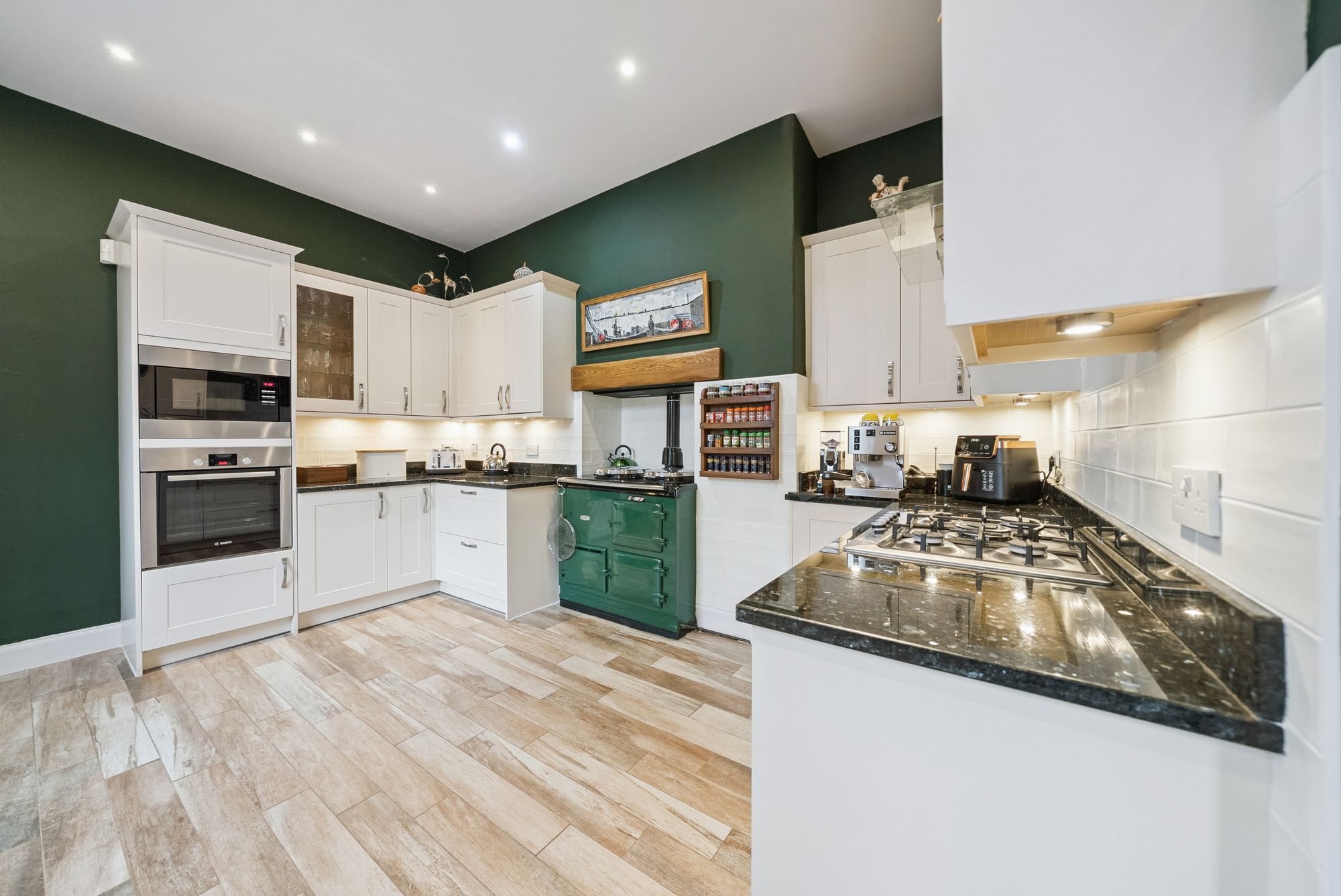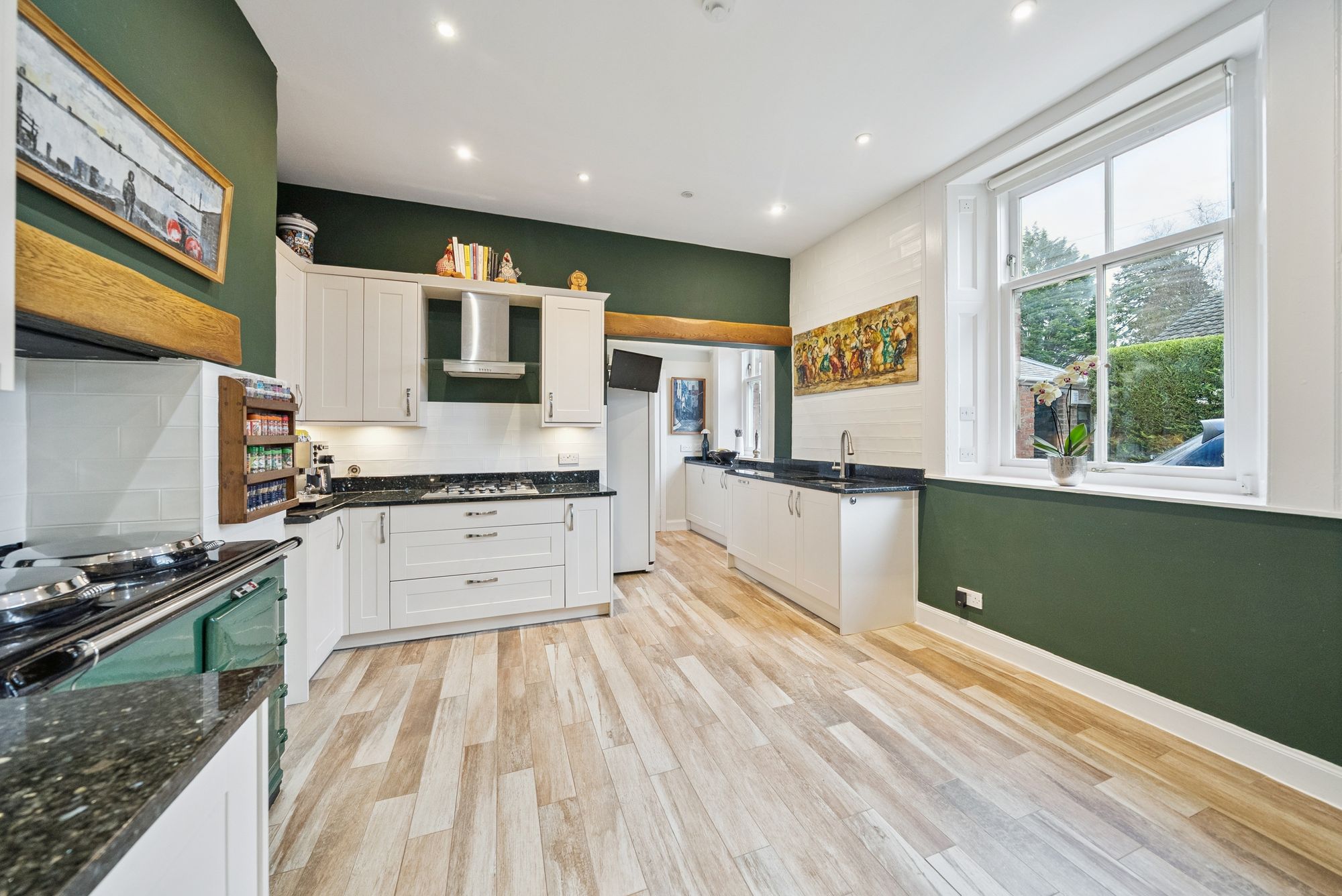 Upon entering the property a feature tiled floor is the first thing that catches the eye, along with beautiful original cornicing. To the front, a formal sitting room provides an ideal space for home working or quiet reading with large window overlooking the front garden and fire place at its focal point. Moving from the entrance down the hall, the ground floor opens out in to a bright large hallway, again with original cornicing and beautiful chandelier above setting the tone for the home’s scale and style. At the heart of the home lies an elegant lounge, with period features, and a feature fireplace, which flows directly into a large rear conservatory. This bright and spacious addition, fitted with electric underfloor heating and double doors either side opening onto the garden, is perfectly suited to year round use as a relaxed family sitting area, garden room, or informal entertaining space. Moving on from the lounge, a well proportioned bay windowed dining room features beautiful cornice work, feature fire place and views out over the gardens offering a refined setting for family meals or hosting guests. Also on the ground floor is a versatile additional room, currently being used as a study, but could be used as an additional bedroom/snug with door opening out the way for ease of access. There is also a modern shower room making it ideal for guests or those requiring all on the level living. To the rear of the house, a long internal hallway leads to a bold and spacious breakfasting kitchen with AGA at its focal point and offering ample workspace and storage, including a large walk in pantry. This wing of the property offers a sense of separation and flow, lending itself well to busy family life. There is numerous storage cupboards on this floor, ideal for family living.