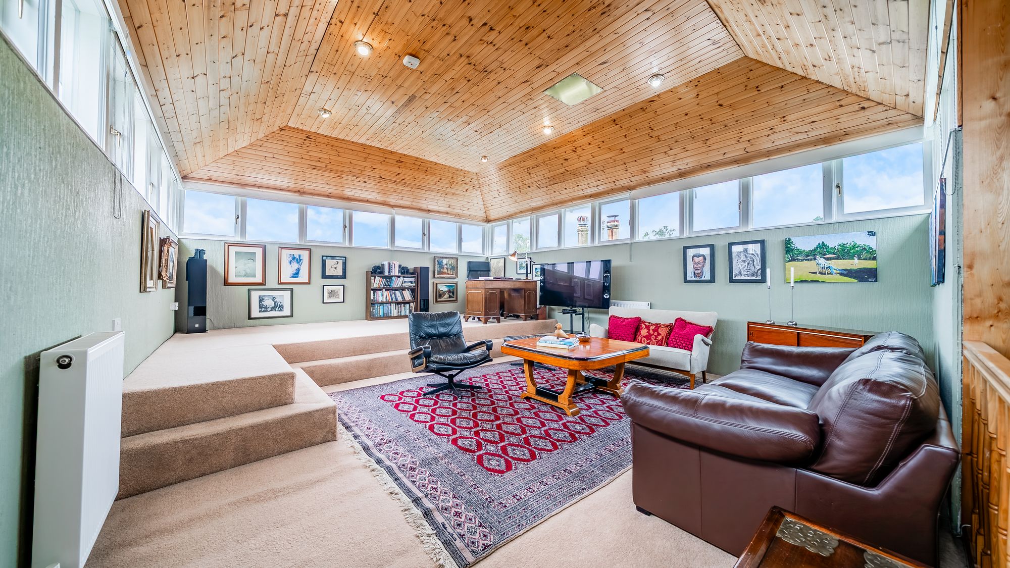 Moving to the first floor via a beautiful traditional staircase, the spacious bright hall leads you to the second bedroom. This bedroom is large in size with views across the gardens and large built in storage; it is the perfect space to relax at the end of the day. From here, the rear hall leads to another double bedroom with bay window, with shower room. The modern shower room has a walk in shower, wc and vanity wash hand basin. There is also a large walk in dressing room on this level with amble built in storage. Moving back down the hall is another large room with two sizeable windows with views over the gardens. Currently being used as a sitting room, this would ideally be the master bedroom, as the main family bathroom is accessible from this room. The spacious modern bathroom features a three piece suite, with bath and shower, wc and vanity wash hand basin. There is another double bedroom on this floor with built in wardrobes and large bright window. Moving up to the third level is a stunning unique split level family room, with windows all around it enjoying panoramic views across the Firth of Clyde.