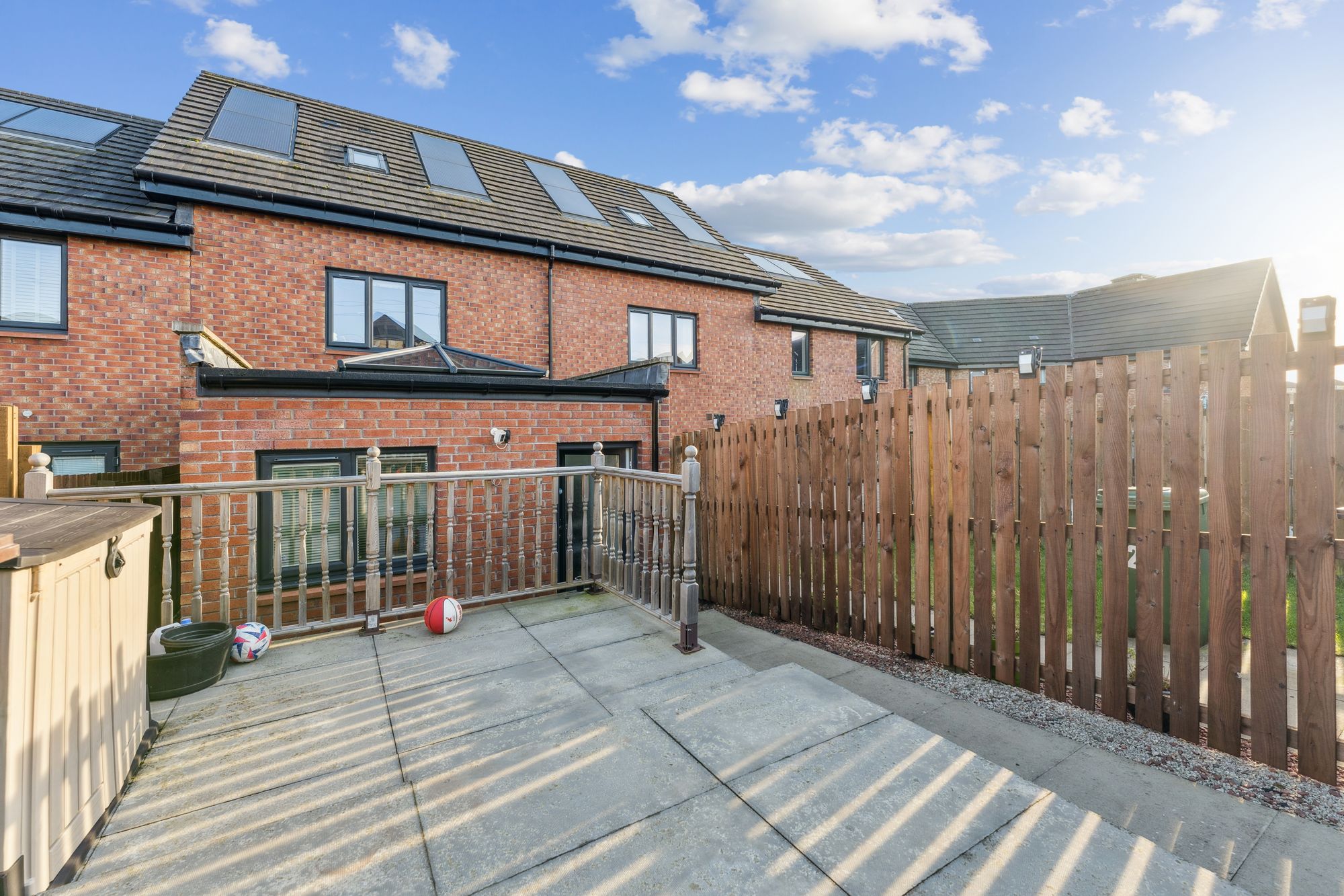 The property for sale is an eye-catching terraced villa with a red brick exterior and a pitched tiled roof. Internally, the property offers fantastic living space over three levels and is presented in excellent condition throughout. In brief, the accommodation extends to; entrance hallway with staircase to upper, living room, door leading to inner hall with access to storage cupboard and W/C, dining sized kitchen with appliances open plan to stunning extension with feature cupula window, door leading to the back garden. On the first-floor level there is a family bathroom with three-piece suite and two bedrooms with principal bed room and en-suite on the top level. Bedrooms one and two with in built hanging and storage. The back garden is enclosed and private and is made up of a slabbing for easy of maintenance in mind. gate gives access to parking.