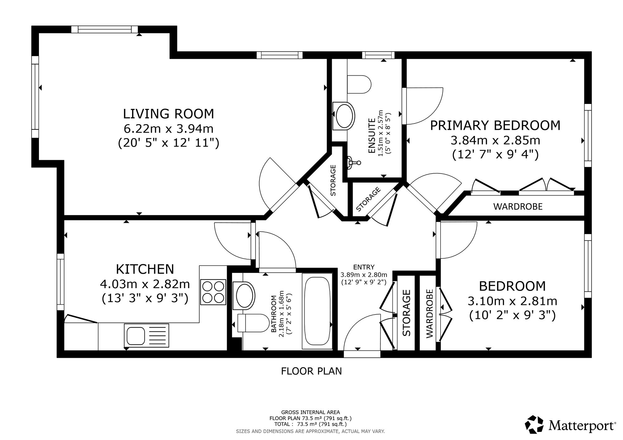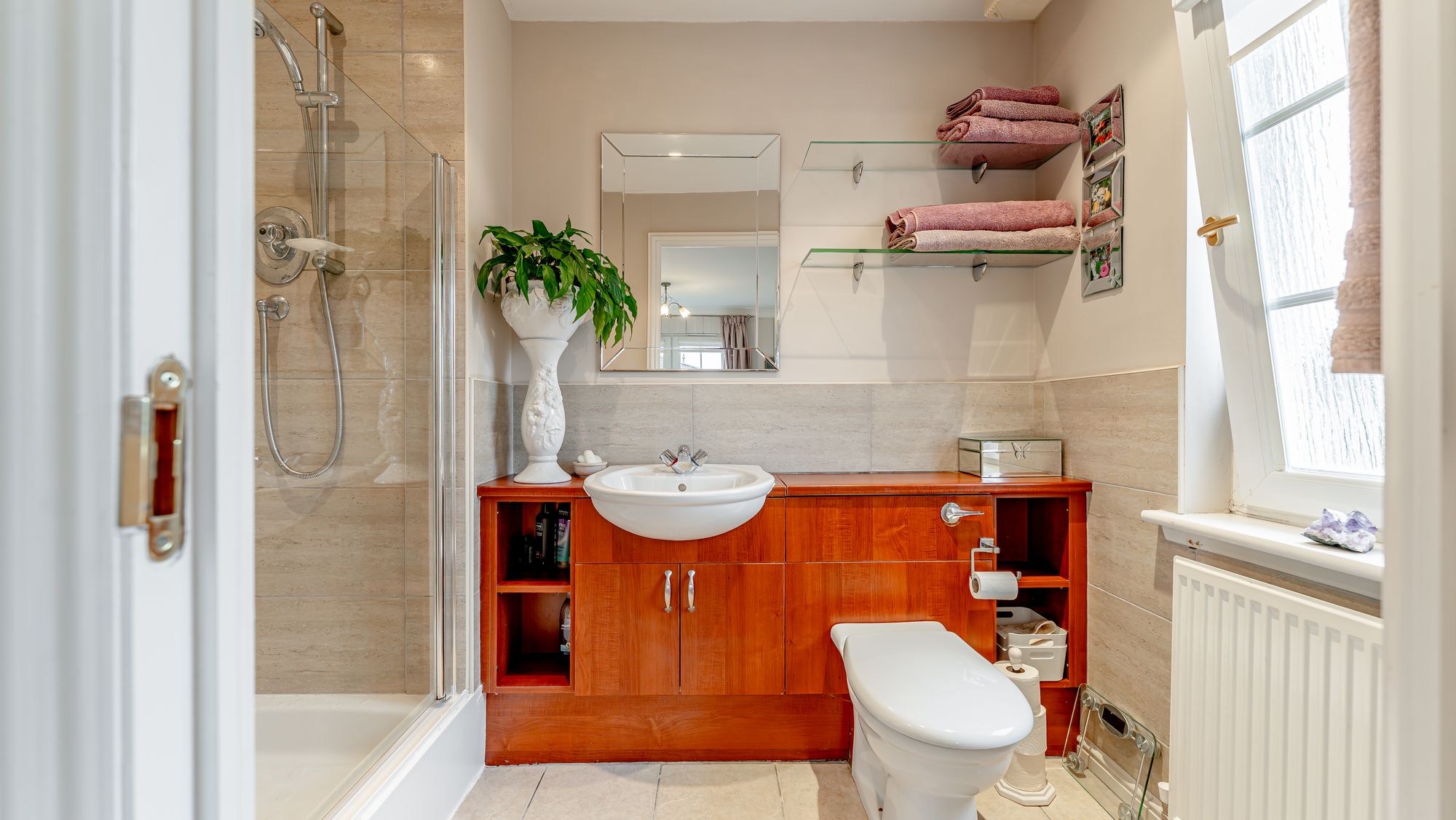 Both bedrooms are doubles and feature built-in wardrobes, with the principal bedroom benefiting from a private en suite complete with WC, vanity unit, and shower. A separate family bathroom with a three piece suite serves the rest of the property. The property is further enhanced by a gas central heating system and double glazing throughout.