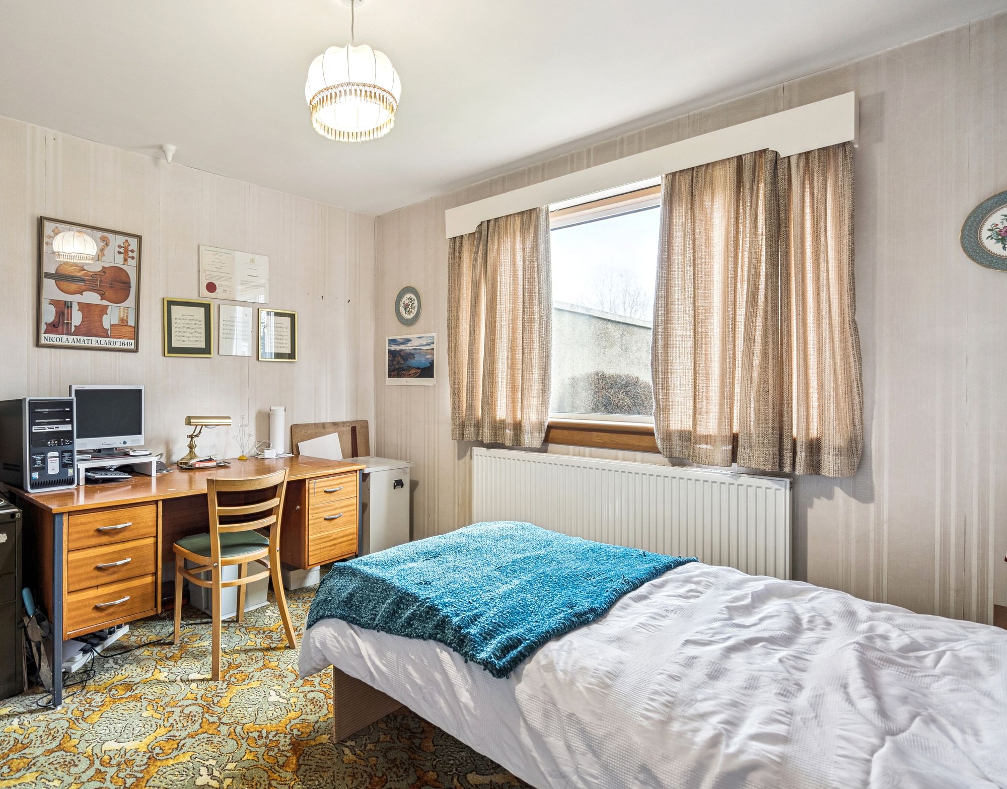 Upstairs, a central hall leads to two further bedrooms and a bathroom. This level offers a sense of privacy from the main living areas and is perfectly suited to family use, visiting guests, or dedicated study or hobby space.