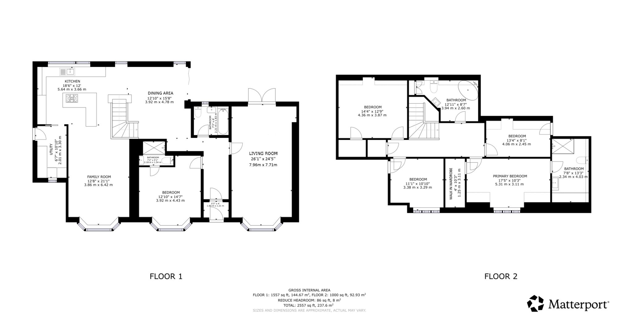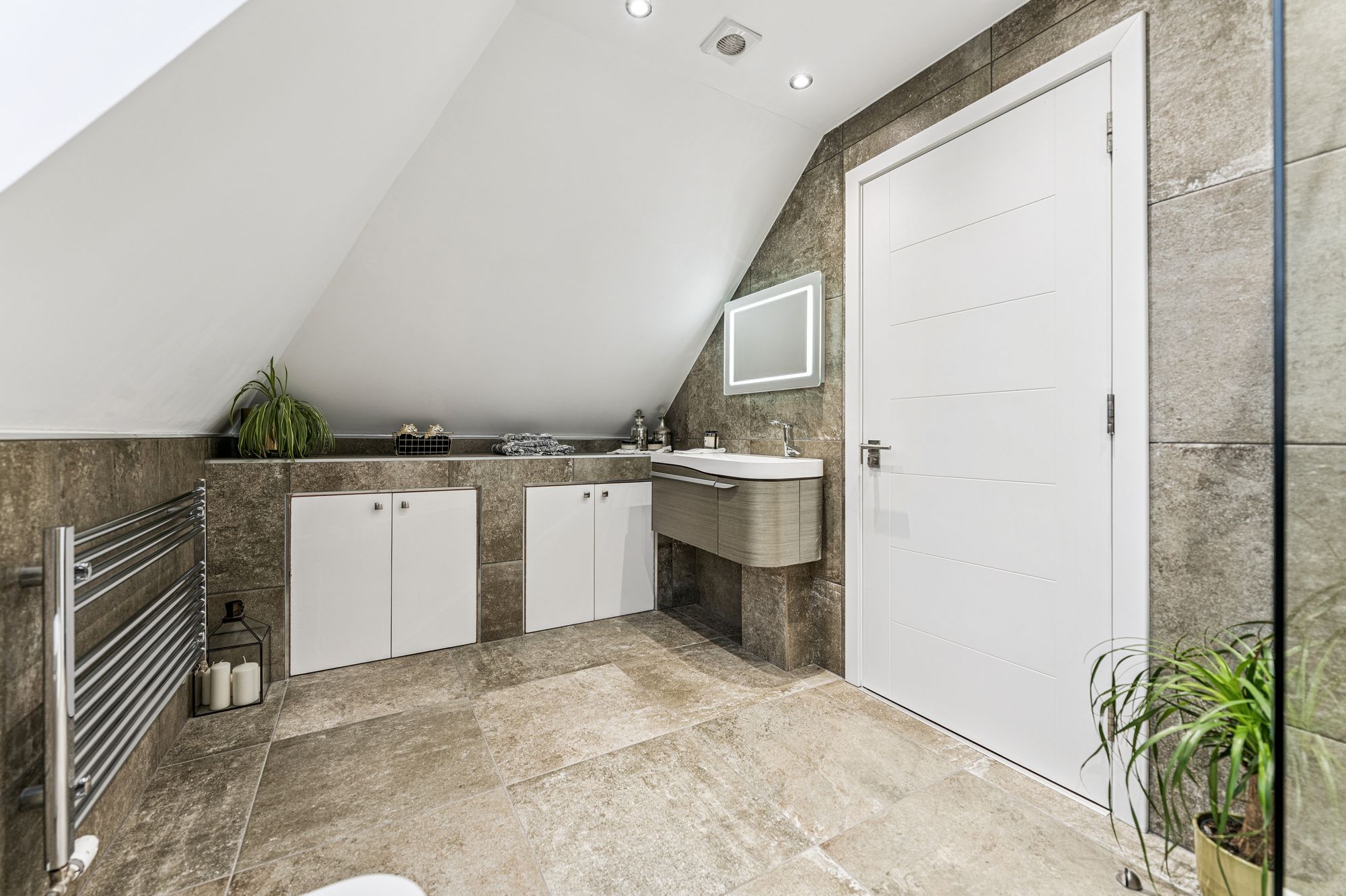 The upper level of the property has a central landing with an enormous storage cupboard and access to four well proportioned bedrooms. The principal bedroom features a walk in wardrobe and access to a stunning ensuite shower room which is beautifully tiled with a walk in shower, WC and wash hand basin with storage beneath. Completing the accommodation is the family bathroom which comprises of modern fixtures and fittings.