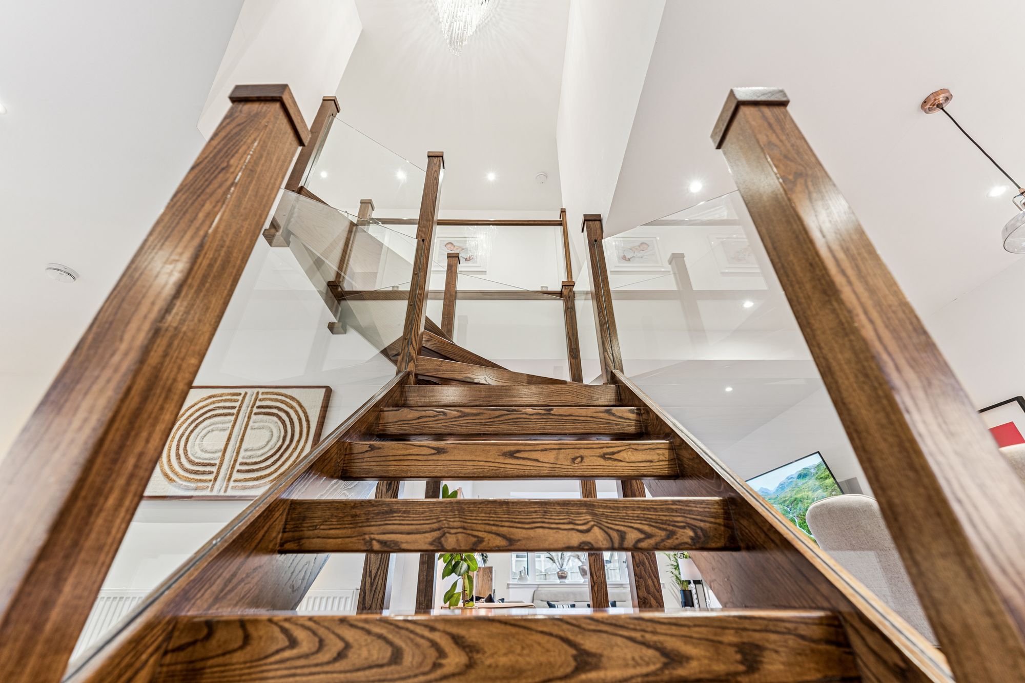 The welcoming ‘L’ shaped reception hall way is floored with ornate tiling and provides access to the main ground floor apartments which includes an impressive formal lounge which spans the depth of the property with a bay window to the front and patio doors to the rear, a fabulous and versatile downstairs bedroom, again, featuring a bay window and also including a beautifully finished ensuite shower room and a family bathroom which is fully tiled and comprises a fitted bath with shower above, WC and wash hand basin. The ‘heart of the home’ truly is the remarkable open plan kitchen/living/dining room which centres around an ornate, walnut staircase with glass balustrade leading to the upper level of the property and is bathed in light another bay window and bifolding doors. The kitchen boasts a luxurious specification with a central island and breakfasting bar, an abundance of quality integrated appliances, ample space for dining/living furniture and a separate utility room offers space for further free standing appliances, fitted storage and access to the garden.