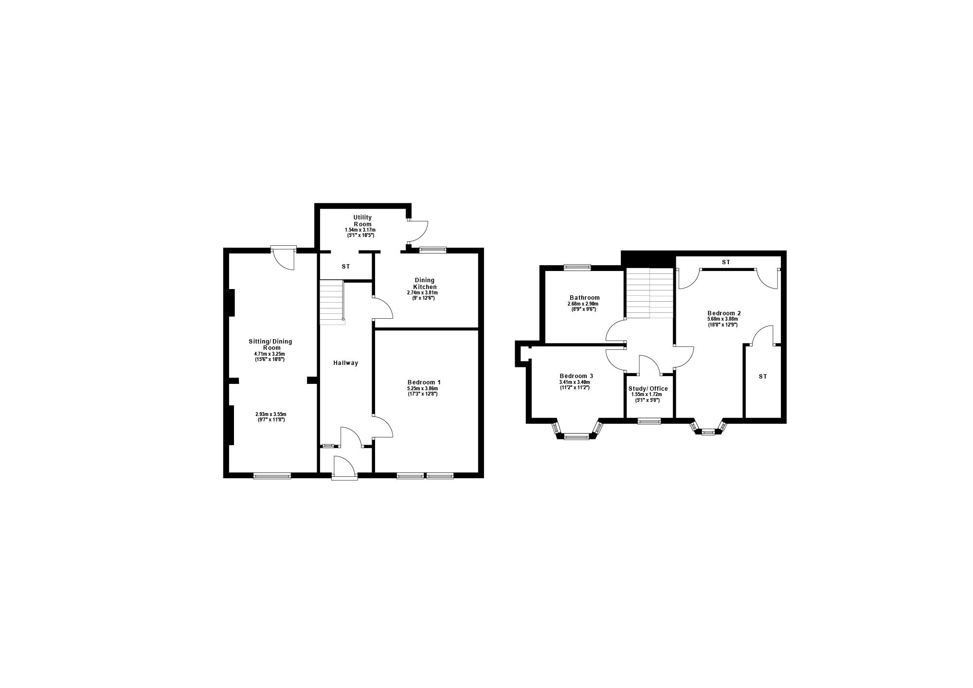 Bedroom One 17’3” x 12’8” 5.26m x 3.86m