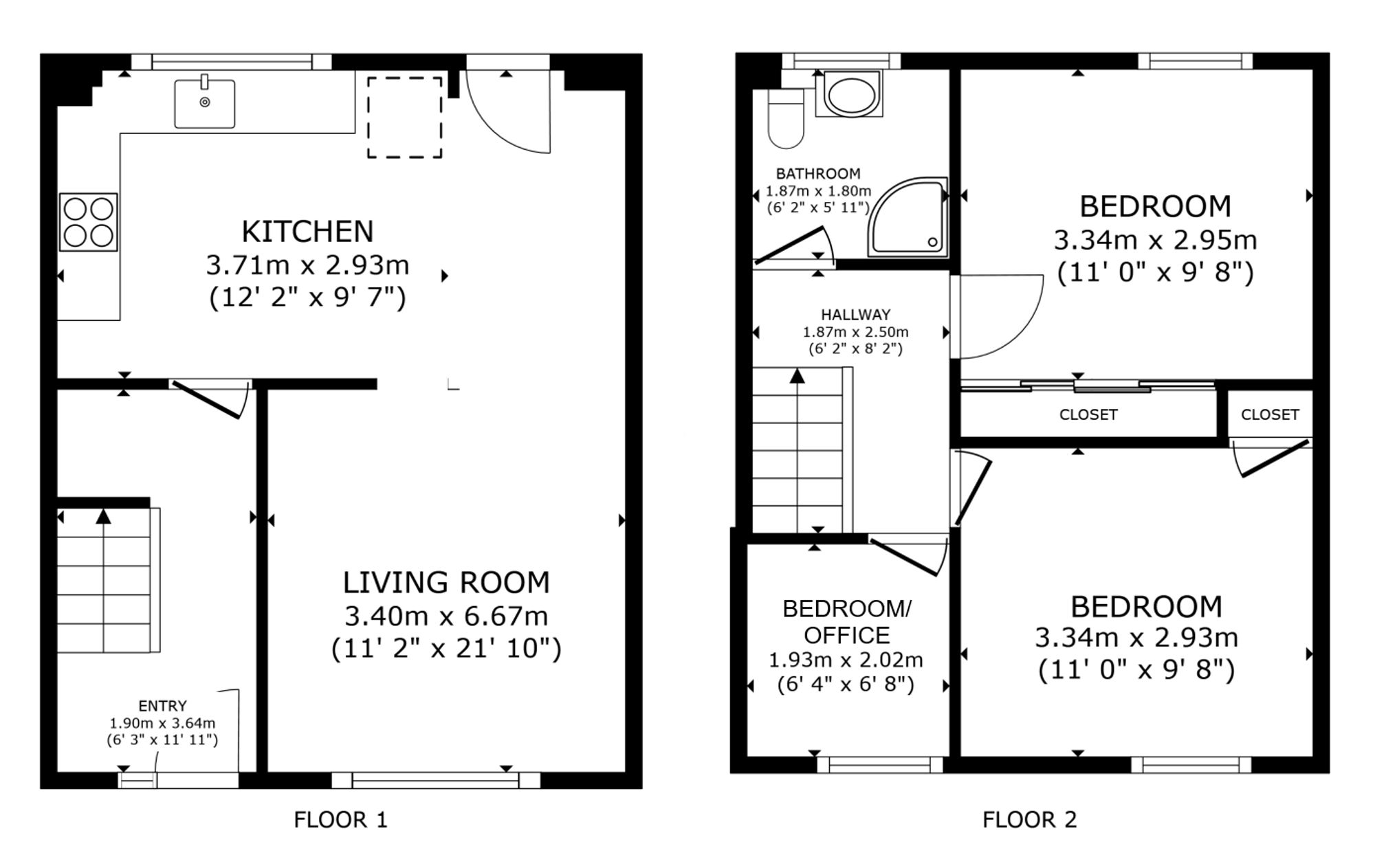 The first floor accommodation is arranged around a central hall and comprises three bedrooms, each offering versatile use as sleeping accommodation, home office or study space. The shower room is fitted with modern sanitary ware and completes the upper level.