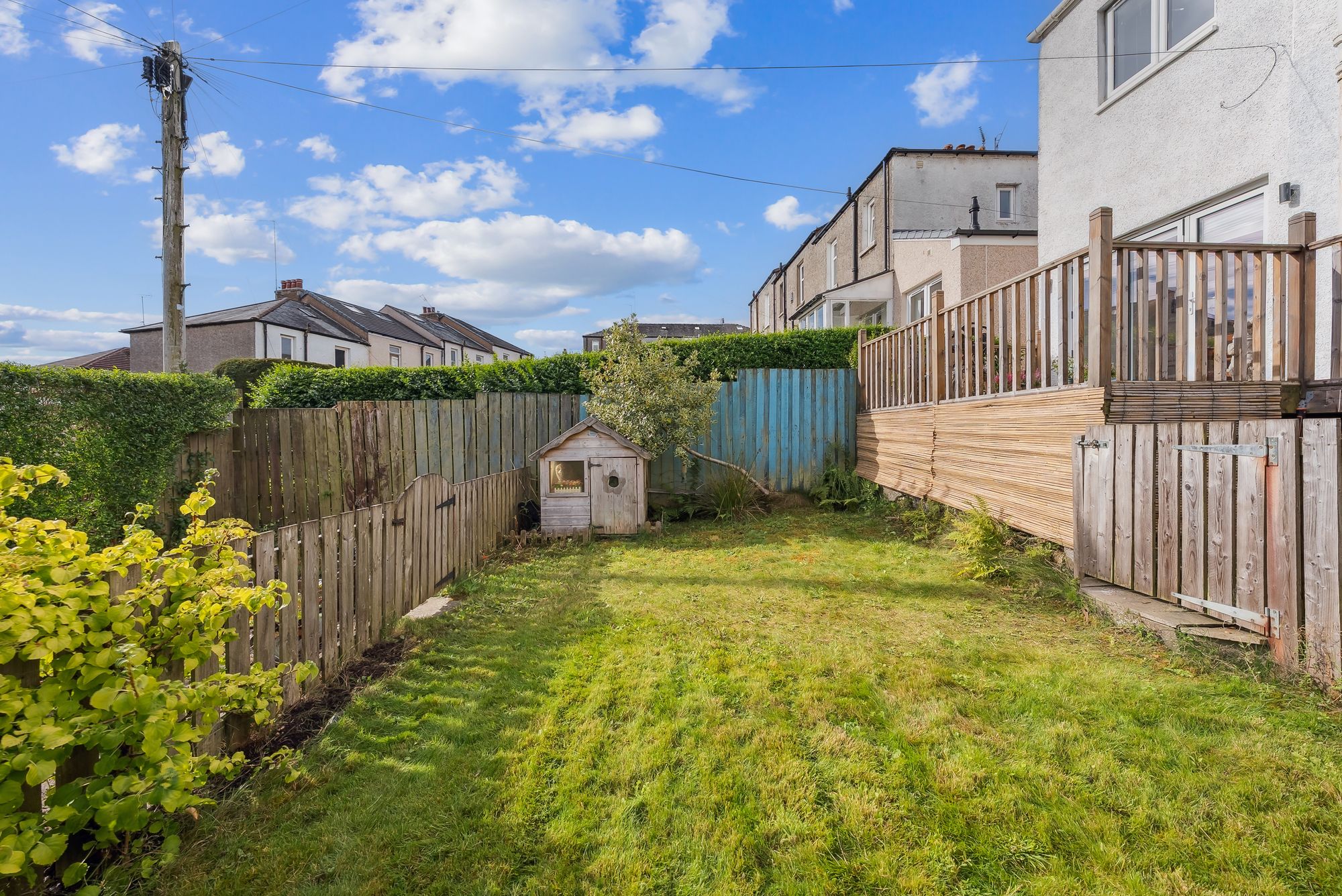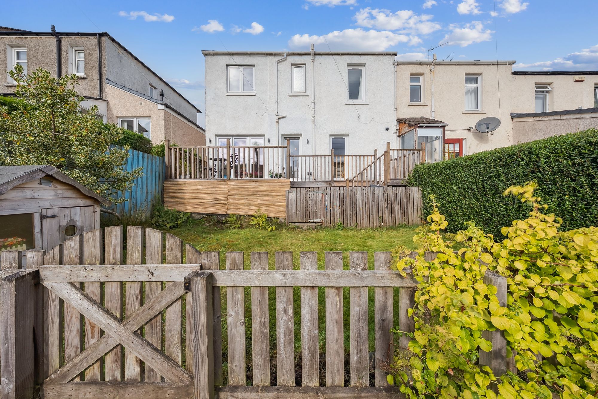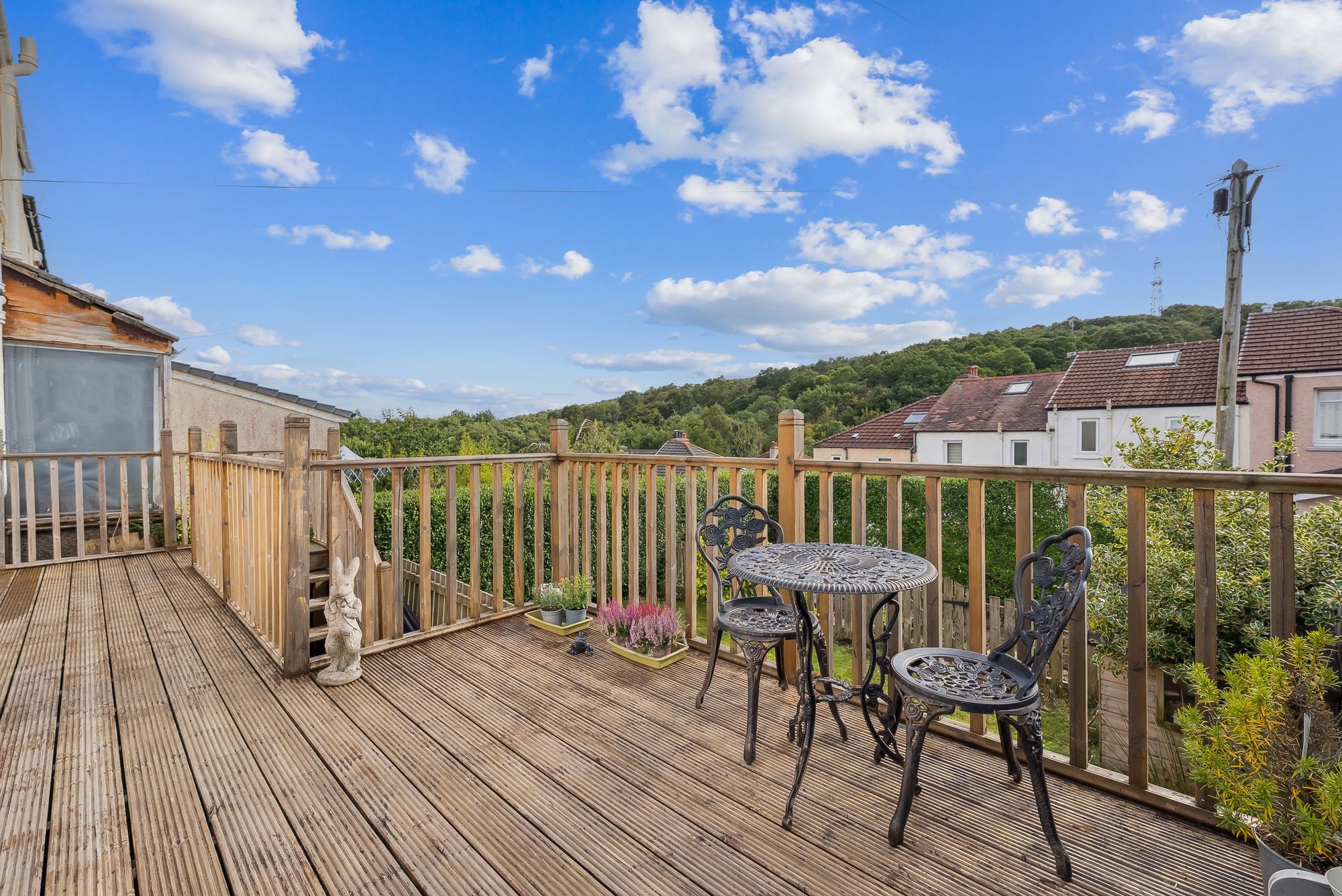 Similarly impressive externally, the rear gardens of this fabulous home capture a striking outlook towards the Netherton Braes and are designed for relaxation with a sizeable deck running along the rear elevation of the property promoting ‘Al-fresco’ dining and family down-time. Beyond this is an enclosed area of level lawn which creates the ideal child-friendly enclosure and, beyond again, a further enclosed area which might accommodate a further sun patio.