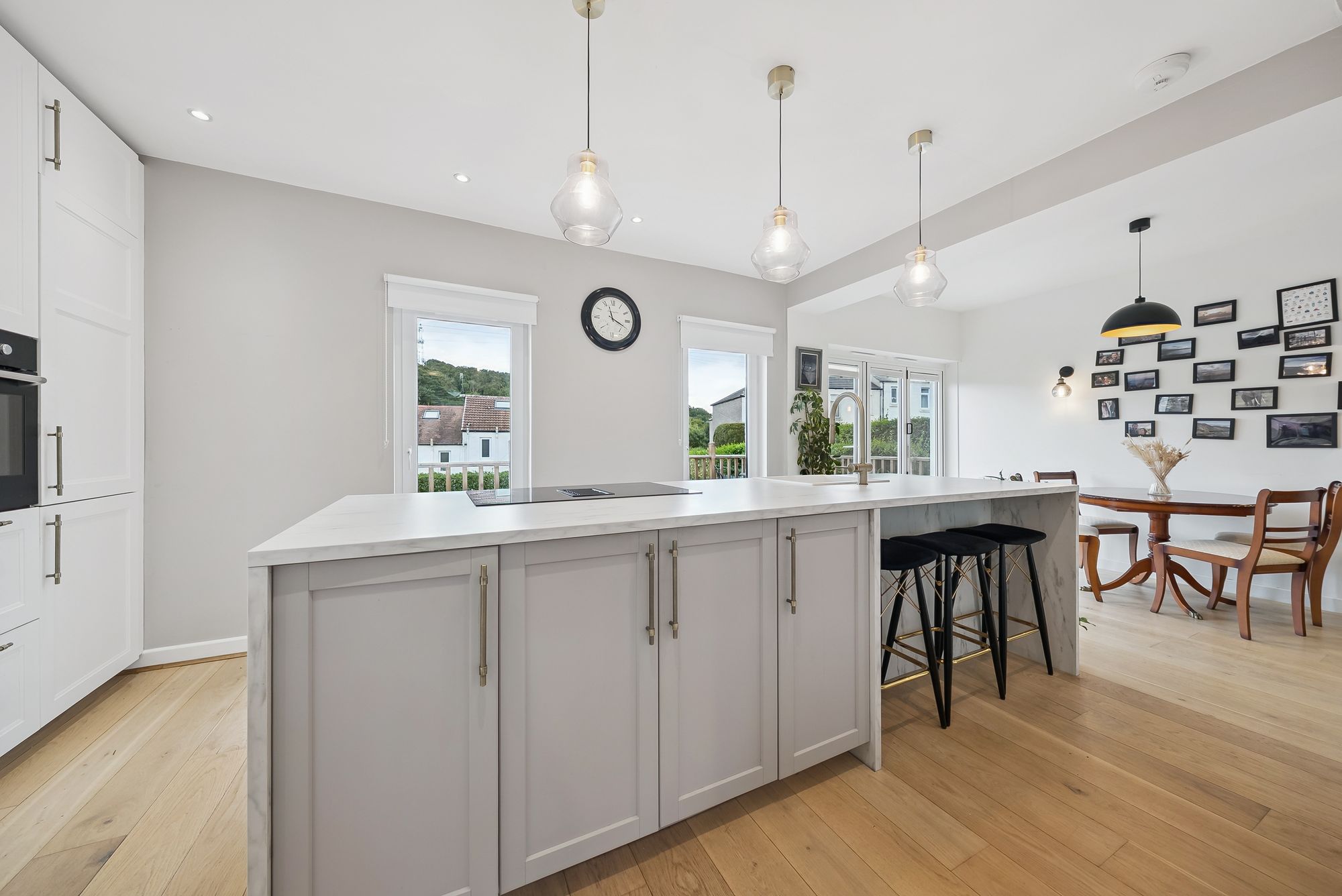Immediately welcoming upon entry, the notably bright interior and thoroughly modern specification of this home become its defining characteristics and these combine to deliver a truly turn-key proposition. Our 3D Virtual Tours, HD Videos and Floor Plans will provide a better idea of form and layout, however, a summary of the accommodation includes; entrance hall with stairs to the upper level, attractive lounge with box window formation and feature fire place, thoroughly impressive family hub extending the width of the property which incorporates a superb contemporary kitchen with feature breakfasting and storage island, a separate defined space for dining and a superb informal family area. This incredible space flows seamlessly and is enveloped in natural light by virtue of twin full-height window formations and an attractive bi-folding doorway. Completing the ground floor accommodation is a striking re-fitted shower room with white sanitary ware.