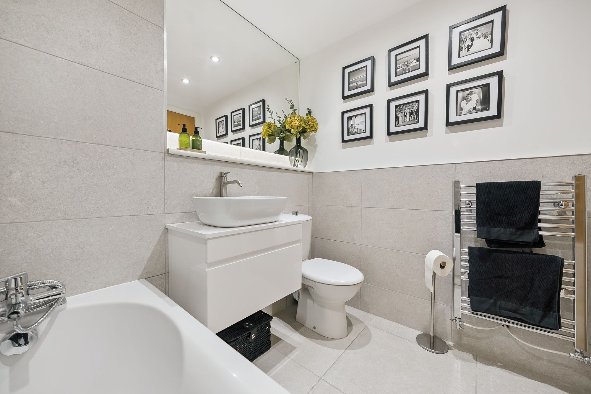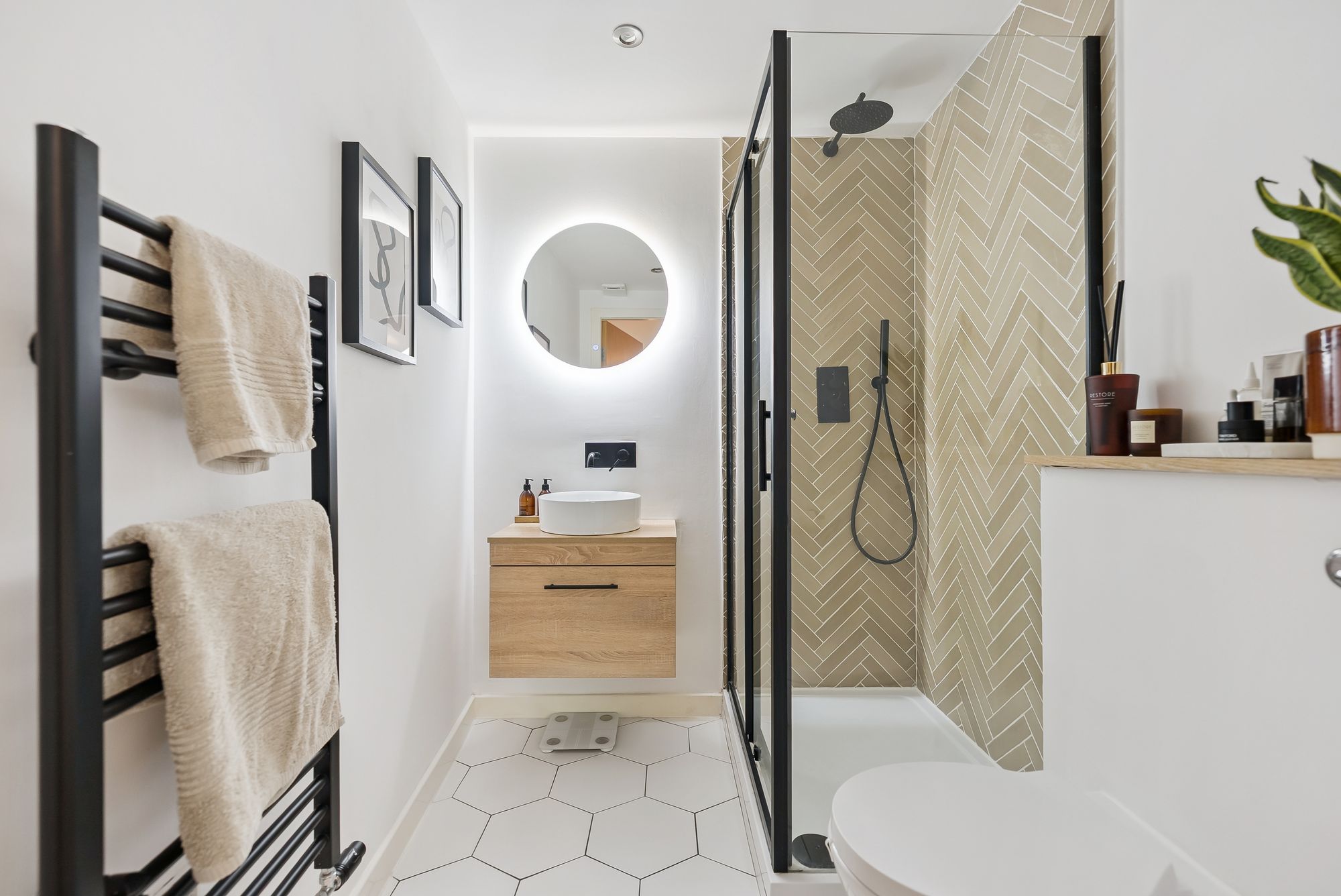 Internally, this is a stylish flat, which is modern throughout and also has the added benefit of a South facing balcony. The attached photographs, floor plan and HD video tour will give an idea to the size and layout of the flat. However, in brief the accommodation extends to; welcoming entrance hallway with storage cupboards off, a spacious living room with balcony access and kitchen off. The kitchen itself has been re-fitted and has base and wall mounted, shaker style units, with Herringbone style splash back, integrated appliances and ample space for dining. There are two bedrooms, with the principal benefitting from a luxury shower room with large walk in shower. The accommodation is completed by a modern, fully tiled bathroom with three piece suite.