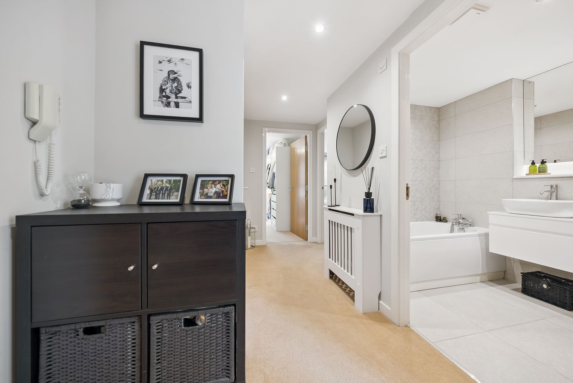 The development itself comprises of an attractive selection of modern apartments and terraced houses which are arranged around attractive streets, neat communal gardens and mature trees. There are resident's and guest's parking bays and the home for sale has an allocated space.