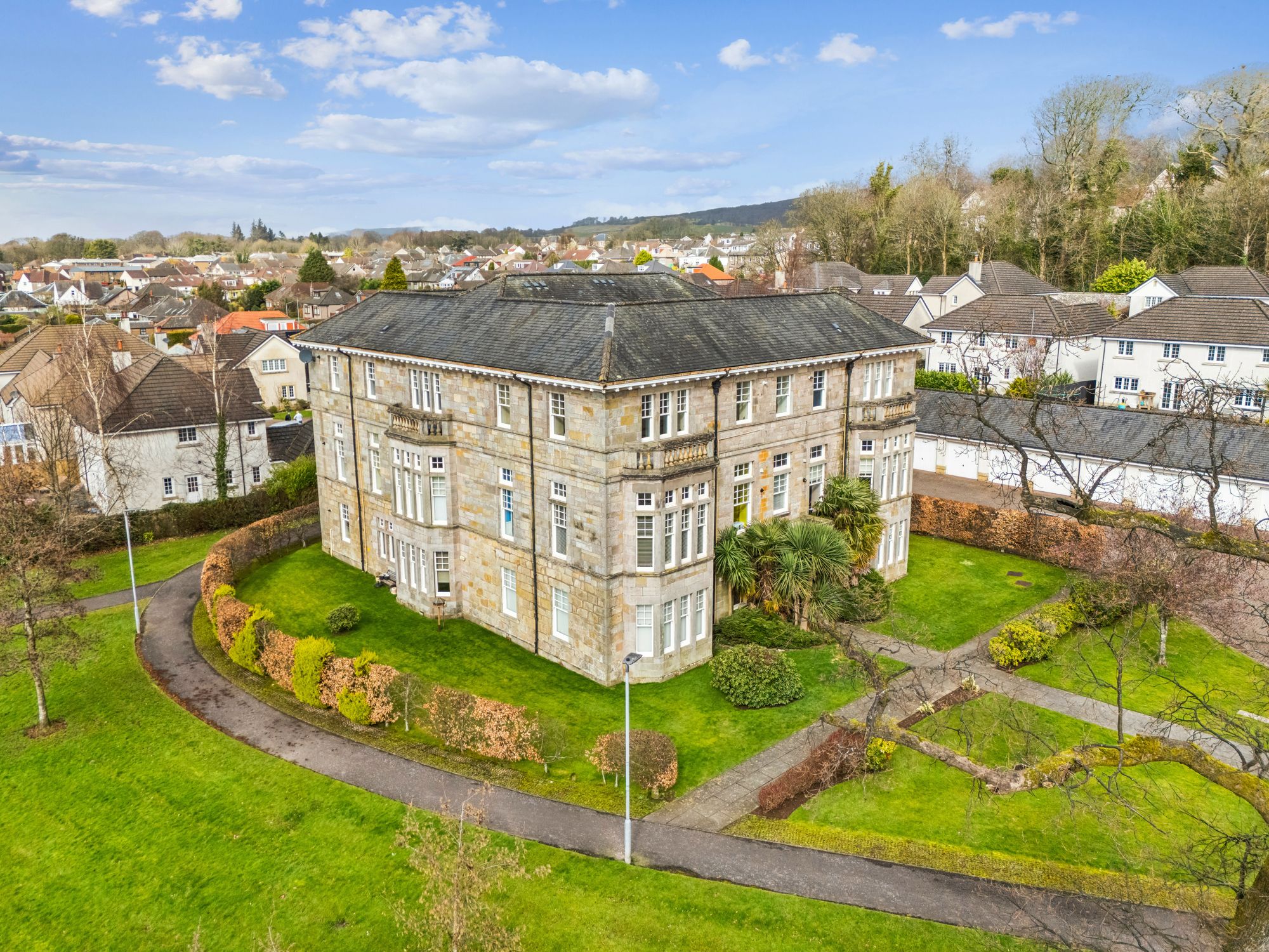 Cardross Park Mansions enjoys a peaceful setting within the charming village of Cardross, a sought-after residential location on the north bank of the River Clyde. The village offers a welcoming community atmosphere with a range of local amenities including shops, cafés, primary schooling and leisure facilities.