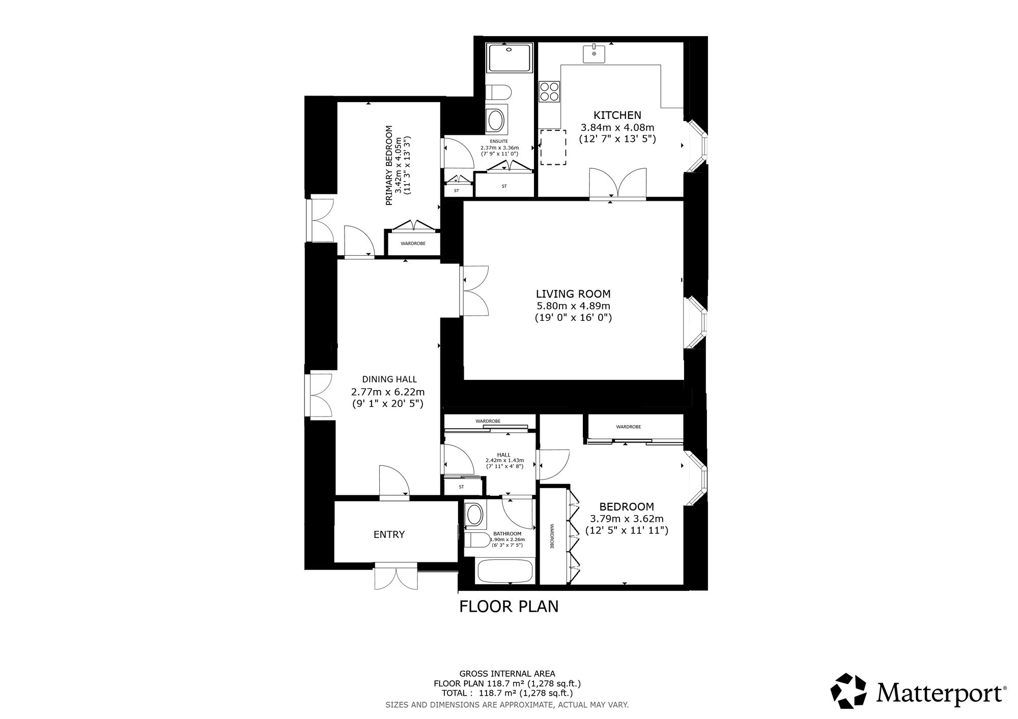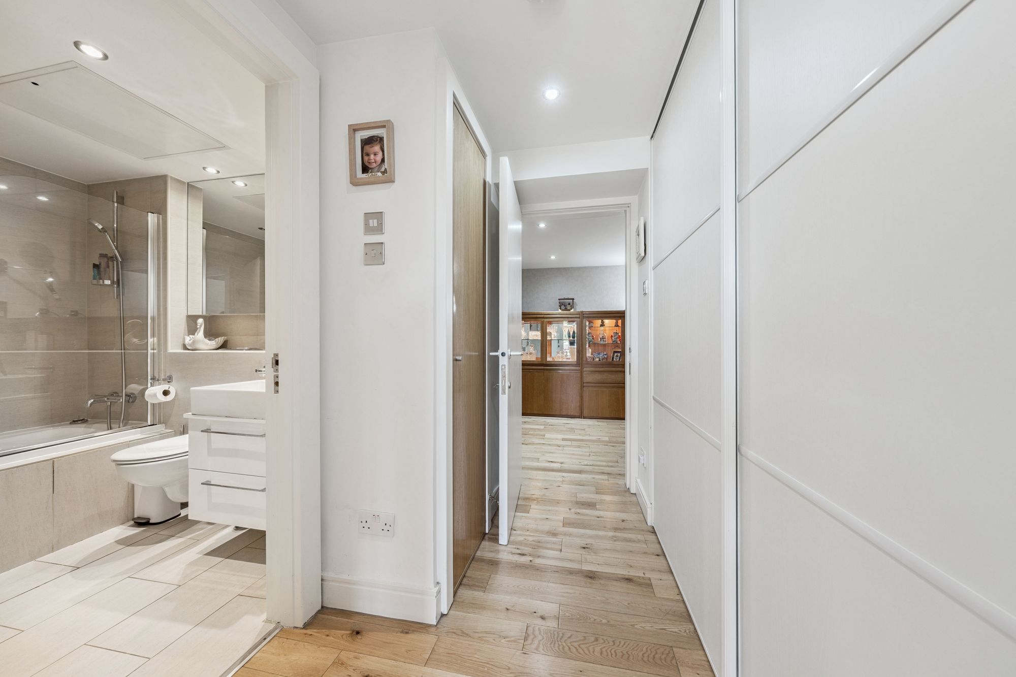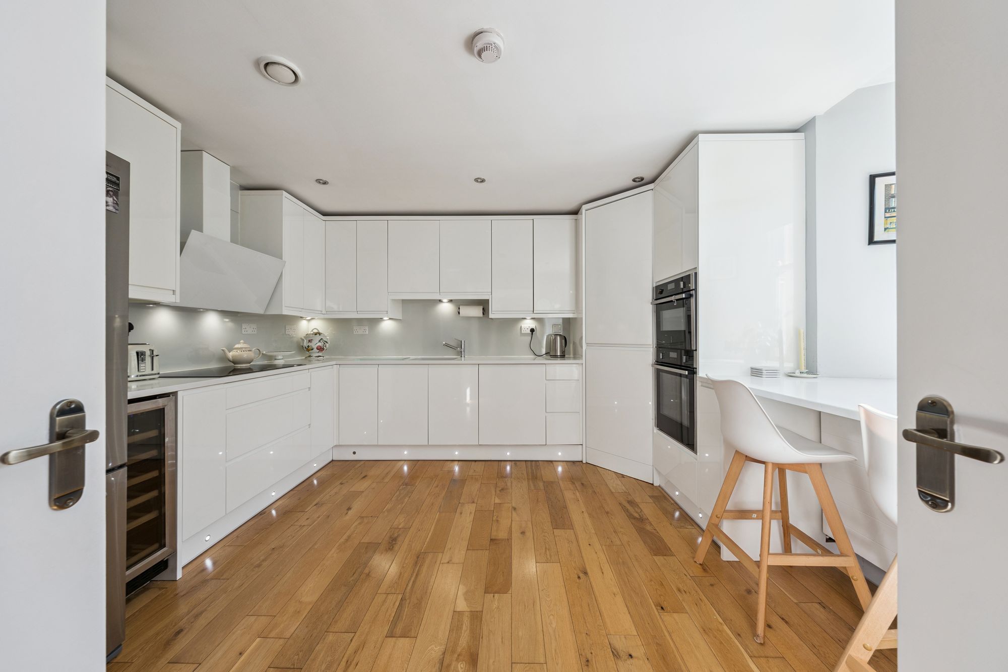 This unique home offers versatile and well-proportioned accommodation on the level, with direct access to a courtyard. The property is accessed through the building's grand main entrance hall and via a staircase shared only with Number 10. Double doors open to the entrance vestibule, which provides access to the impressive dining hall measuring approx. 20 ft in length. The heart of the home is most certainly the spacious, bay-windowed lounge with modern focal point media wall. The dining-sized kitchen is equipped with a range of high-gloss units and complete with quartz worktops and breakfast bar, along with a range of appliances to include: induction hob, self-cleaning fan oven, combination microwave oven, dishwasher, American-style fridge/freezer with water and ice dispenser, and glass-fronted wine fridge. The property also offers two double-sized bedrooms, one of which benefits from an en-suite shower room with good storage off, built-in wardrobes, and French doors to the courtyard. The second bedroom benefits from a beautiful southerly-facing bay window and significant wardrobe space. A family bathroom with three-piece suite and shower over the bath completes the accommodation. A further set of French doors from the dining hall provides direct access to a courtyard, which offers the perfect sheltered spot for alfresco dining. The courtyard is a communal space, used mainly by numbers 11 and 7, and provides access, via a lightwell with steel staircase, to the road at the rear of the building.