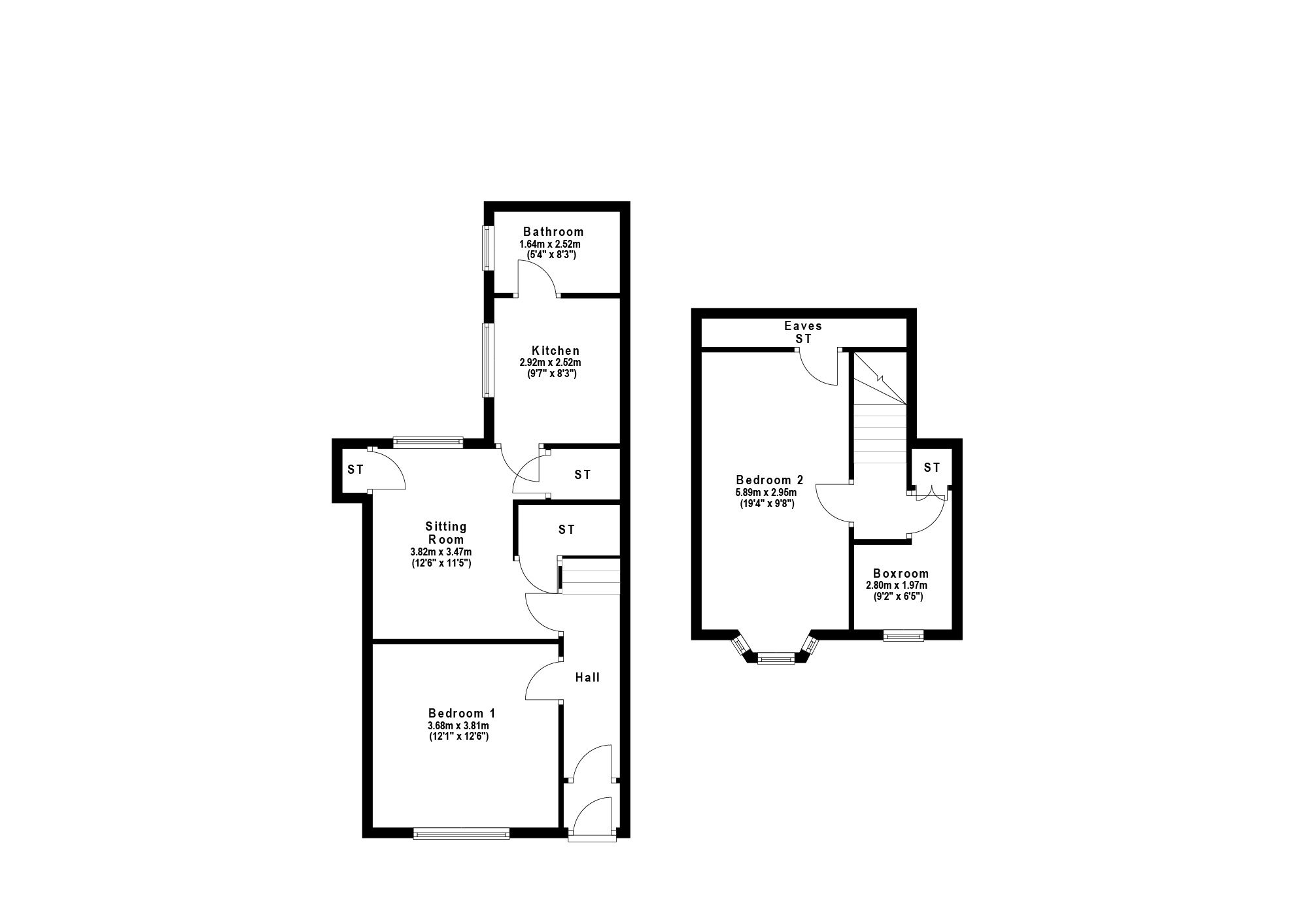 Box Bedroom 9’2” x 6’5” (at widest) 2.79m x 1.96m