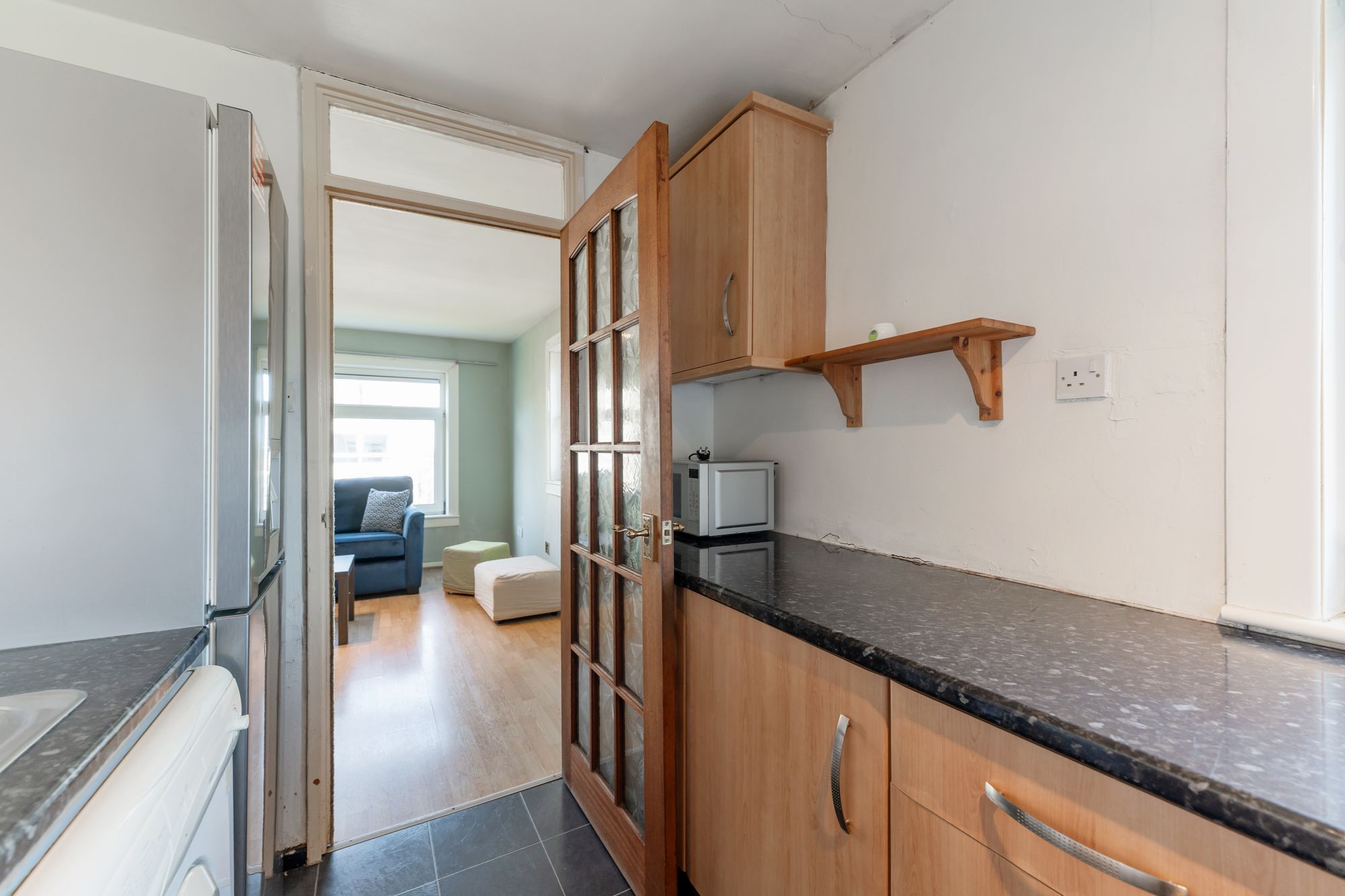 The home for sale is held within a well-maintained apartment block and is found in superb condition thanks to the efforts of the appointed factor. There are parking spaces available to the front of the building.